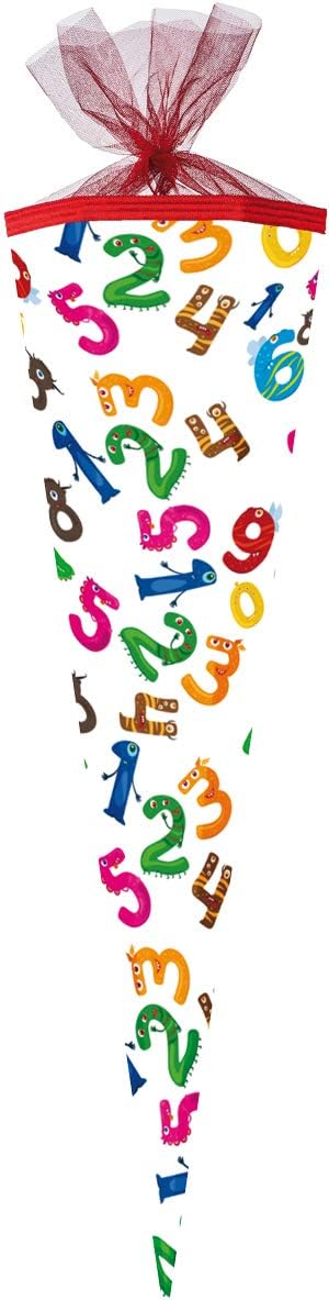 Nestler Set di sacchetti per la scuola da riempire, sacchetti di zucchero fatti a mano in cartone – motivo mostro numerico, con protezione a punta, fiocco (85 cm, 6 rettangoli)