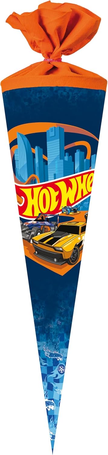 Nestler Set di sacchetti per la scuola da riempire, sacchetto di zucchero fatto a mano, in cartone, motivo Hot Wheels, Speed Club, sacchetto per la scuola, protezione in pizzo, fiocco (arancione, 70