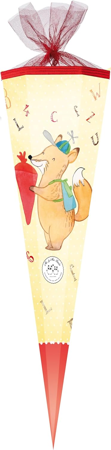 Nestler Set di sacchetti per la scuola da riempire, sacchetto di zucchero fatto a mano, in cartone, motivo volpe, sacchetto per la scuola, protezione in pizzo, fiocco Mr. & Mrs. Panda (rosso, 85 cm, 6