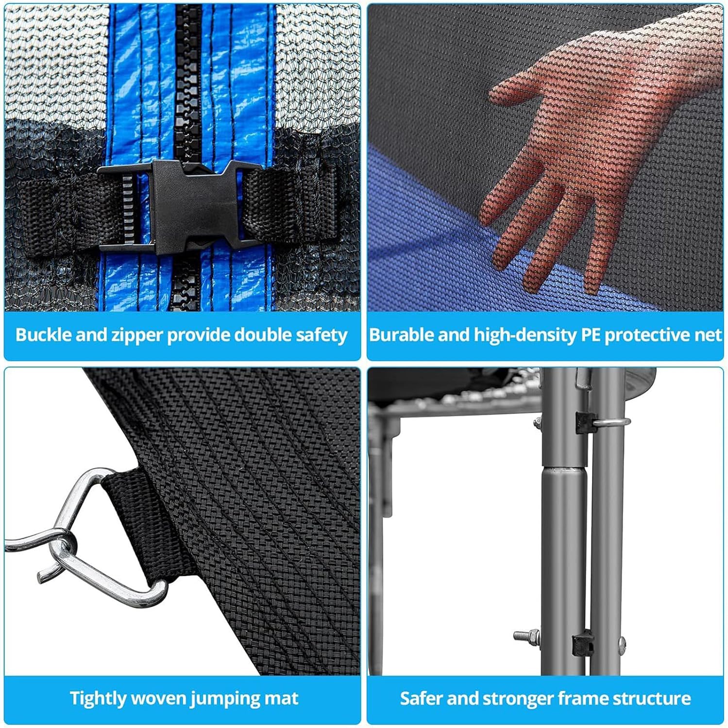 [Sicuro da giocare con] non solo garantendo una buona traspirabilità e traspirabilità, il trampolino sta fornendo una protezione avvolgente per il bambino durante il salto, per rimbalzare liberamente all'interno e all'esterno. [Materiale di alto ] La rete di sicurezza del trampolino sta migliorando la con cuciture aderenti, garantendo una prova meteorologica e una durata duratura per uso a lungo termine, tessato con cura con materiale PE temperato e forte. [Design ergonomico] dotato di fibbie protettive per garantire la sicurezza del bambino durante il salto, la rete di sicurezza del trampolino è progettata con cerniera a doppia estremità, aiutando i bambini ad aprire la porta dall'interno o all'esterno per un facile accesso. [Easy Installation] Il contenitore della rete di sicurezza del trampolino è facilmente installato sul trampolino senza spendere troppo e fatica, conveniente per essere piegato in piccoli pezzi per un facile risparmio di spazio, per lo stoccaggio e il riutilizzo per una lunga durata. [Ampio applicazione 'applicazione] Progettato con una varietà di dimensioni e stili tra cui scegliere, la sostituzione della rete di sicurezza del trampolino è ampiamente compatibile con trampolini da 6 piedi, 8 piedi e 10 piedi con cornici rotonde, meglio controllando il trampolino prima di acquistare per un adattamento .