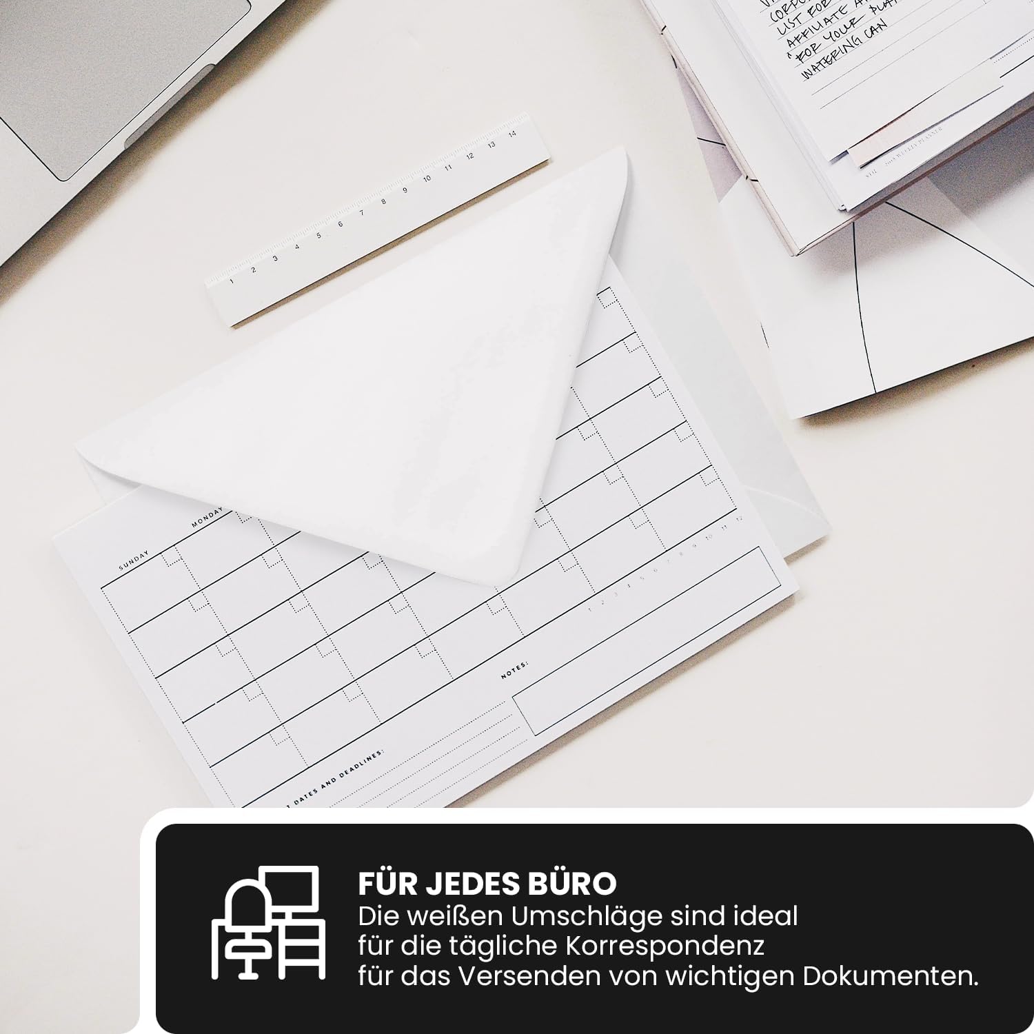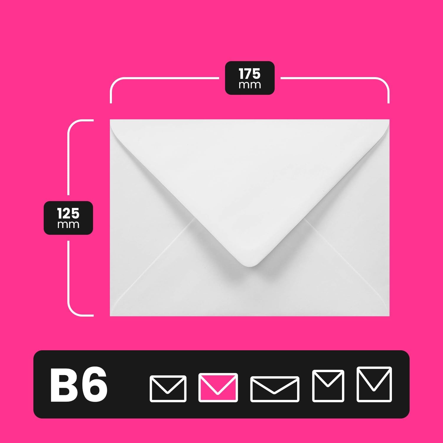 FORMATI BUSTE – Le buste da lettera sono disponibili in diverse misure e grammature. Formato B6 (125x 175 mm) è il formato della cartolina; adatto per spedire lettere e documenti in formato-C6. PER UFFICIO – Le nostre buste sono particolarmente adatte per l'uso quotidiano in qualsiasi ufficio, perfette per inviare documenti importanti come fatture o prospetti aziendali. PER CASA – Le buste da lettera bianche sono adatte anche per la corrispondenza quotidiana in casa, ideali per i tuoi messaggi personali o documenti riservati. UTILIZZO UNIVERSALE – Le buste bianche possono essere stampate con le comuni stampanti a getto d'inchiostro e laser oppure compilate a mano con una penna. CONSEGNA – 100 buste formato B6 (125x175mm) senza finestra, con lembo a punta gommato, realizzate in carta bianca opaca da 100g; scrivibili e stampabili.