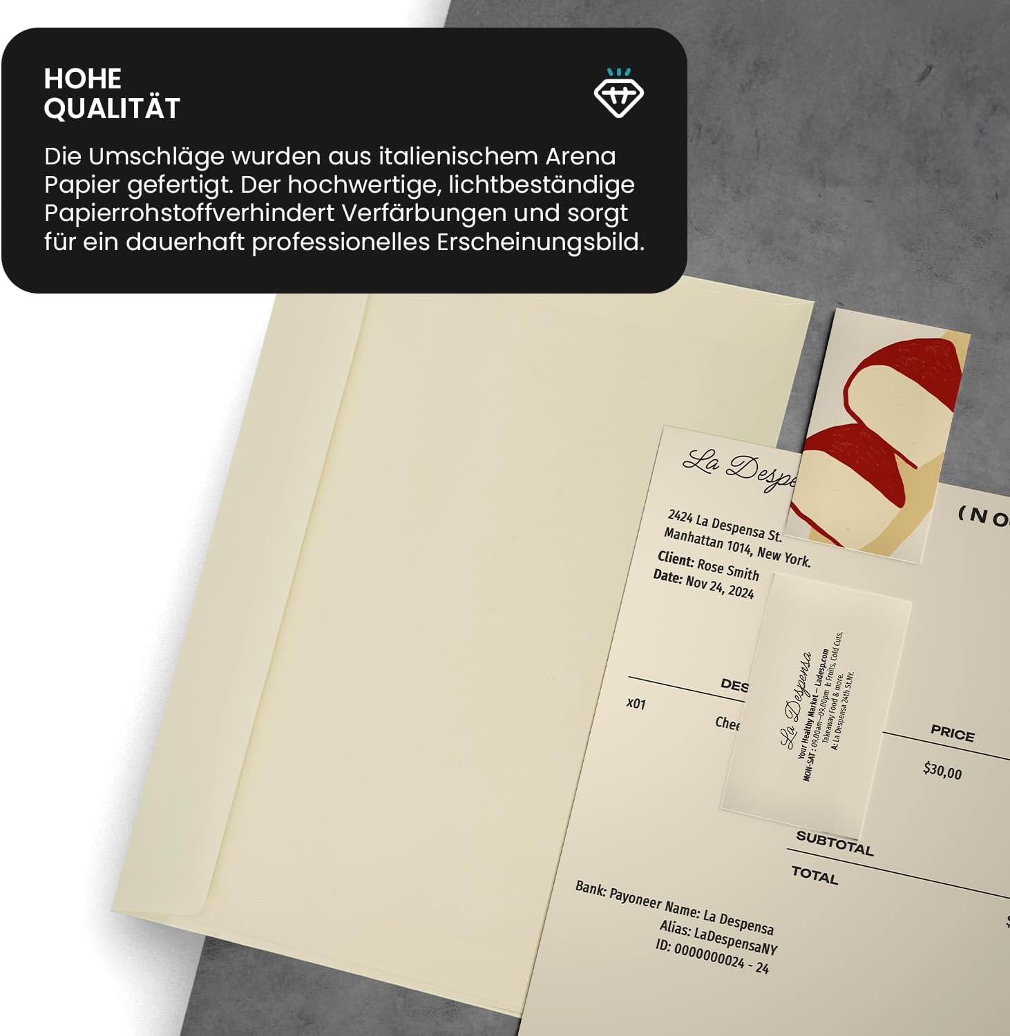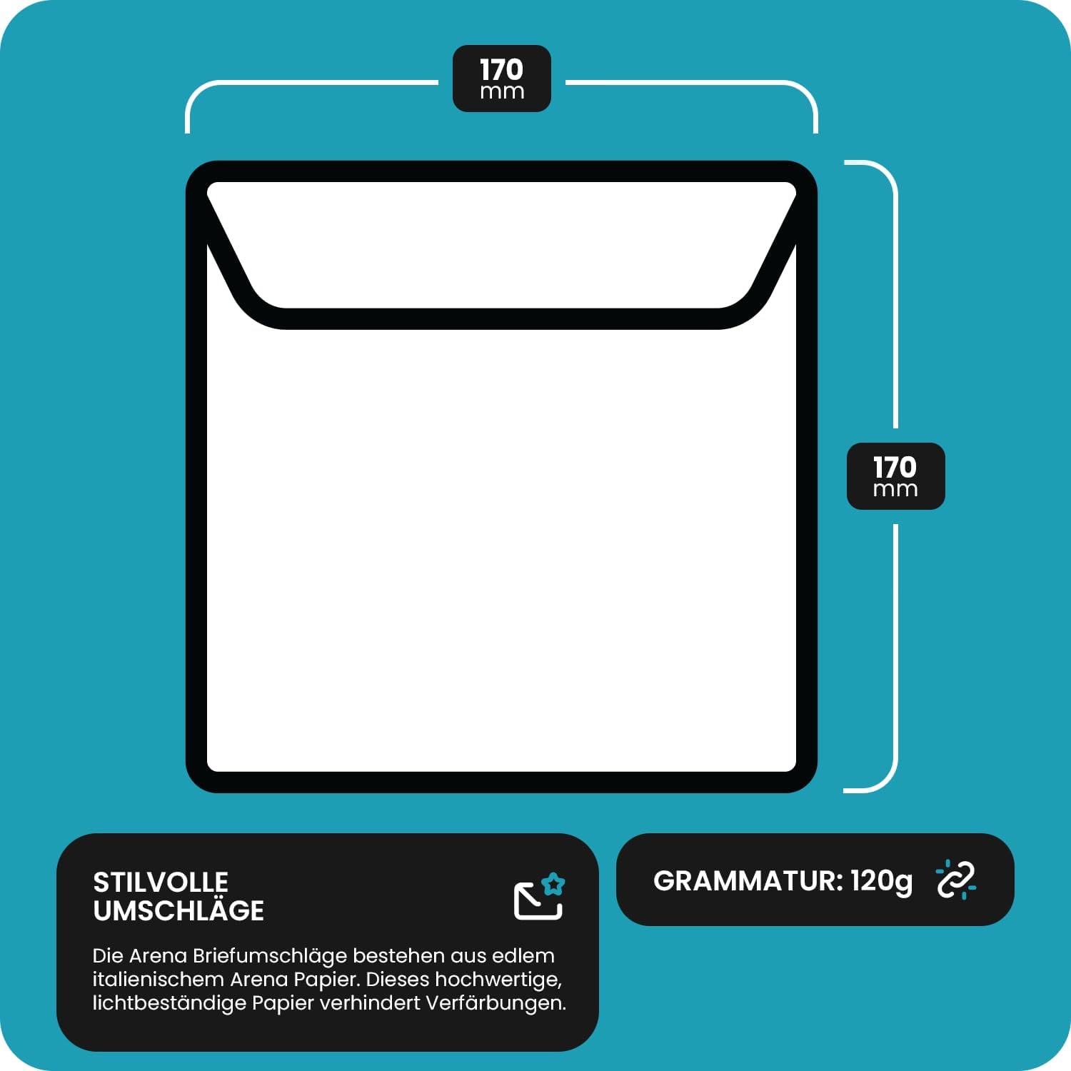 FORMATO CORRETTO – La scelta del formato è fondamentale per la spedizione. Buste lettera quadrate sono indicate per cartoline quadrate, flyers, inviti, biglietti di auguri, partecipazioni o CD. ALTA QUALITÀ – Le buste sono realizzate in carta italiana Arena di alta qualità. Il materiale resistente alla luce previene scolorimenti e garantisce un aspetto sempre professionale. ROBUSTE E ELEGANTI– La carta italiana Arena da 120 g garantisce stabilità, protezione e un aspetto raffinato. La chiusura con strip adesivo o lembo gommato permette una sigillatura semplice e veloce. USO VERSATILE – Le eleganti buste Arena sono perfette per l’ufficio, l’uso professionale e le occasioni speciali. Funzionalità e design raffinato si uniscono per una corrispondenza di alto livello. DETTAGLI TECNICI – 50 buste quadrate (170 x 170 mm), senza finestra, lembo dritto con strip adesivo. Carta Arena 120 g/m². Possibili lievi variazioni di colore dovute alle impostazioni del monitor.