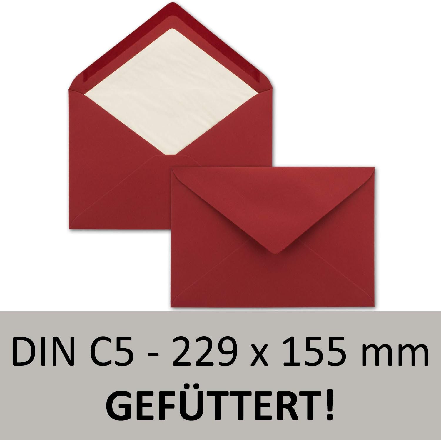 Scegli tra la quantità e il tuo colore preferito Colore: rosso scuro – Grammatura: 110 g/m² – foderato con carta velina bianca Formato: DIN C5 - Dimensioni 223 x 155 mm (22.3 x 15.5 cm) - Con colla a umido, senza finestra Superficie opaca a coste con una sensazione molto piacevole e calda Contenuto: 15 buste – Prodotto e venduto in Germania – GUSTAV NEUSER – Il professionista della carta e dei biglietti da oltre 100 anni