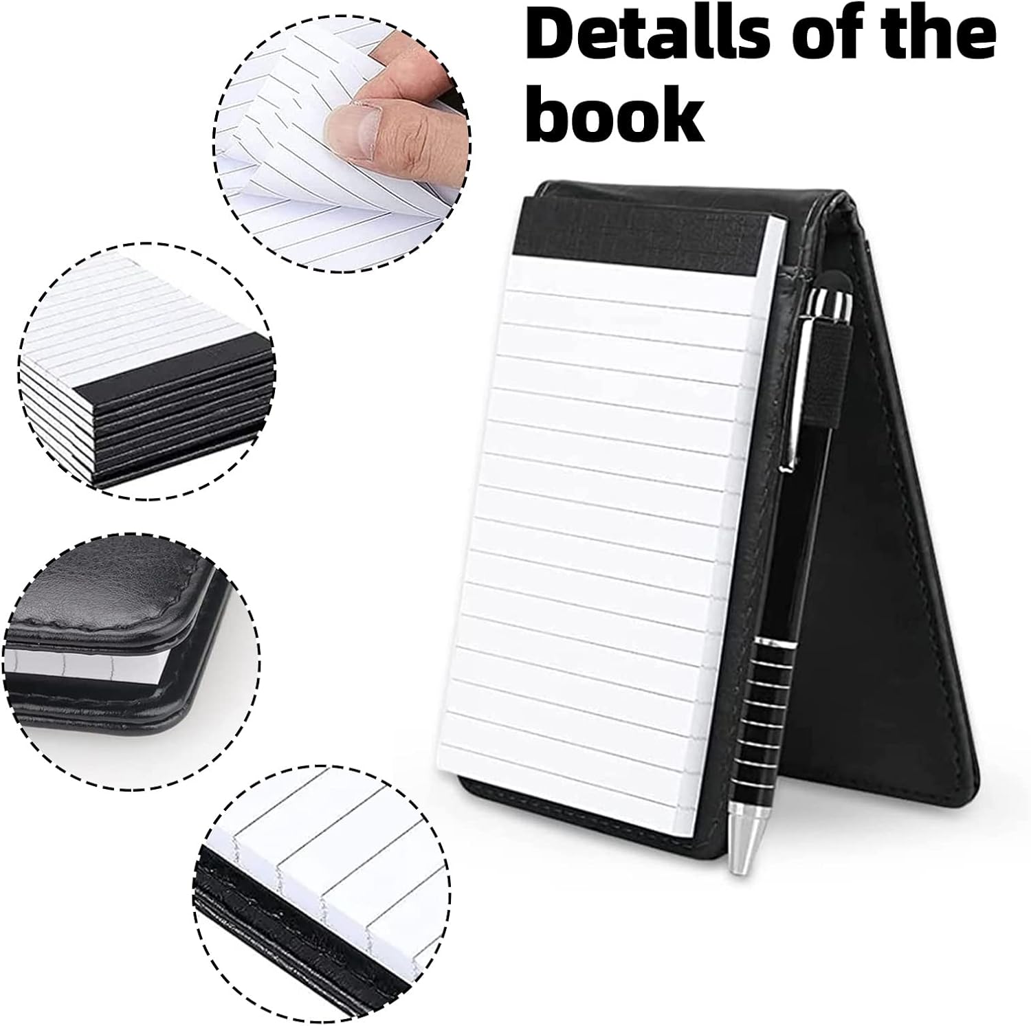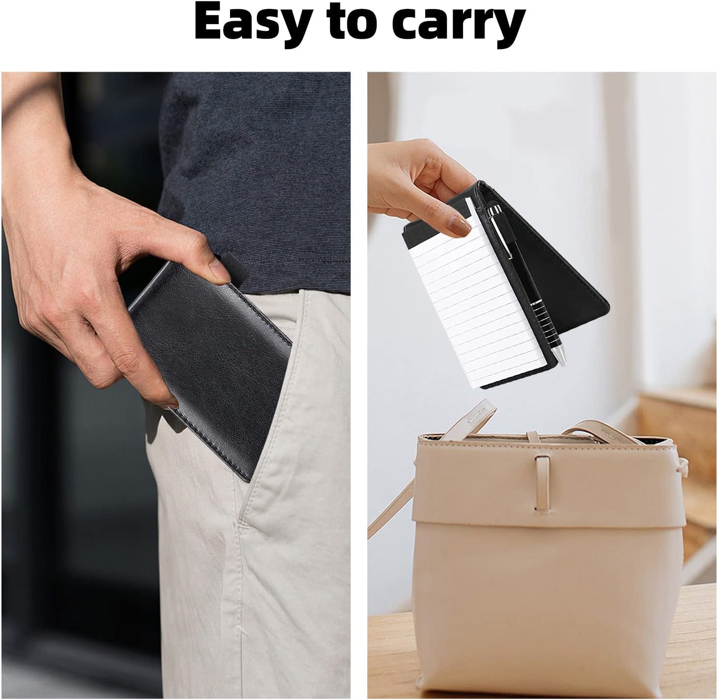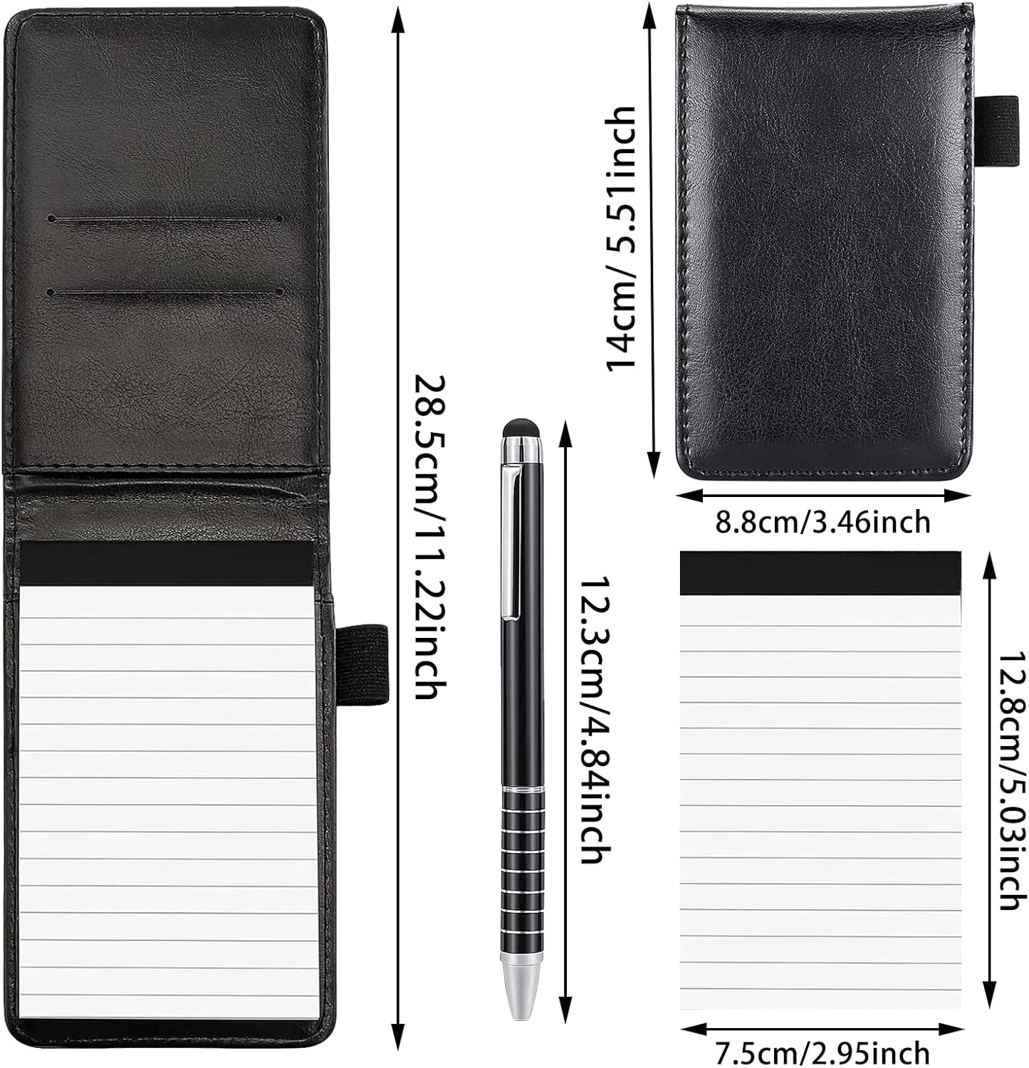 Materiali premium: il nostro mini blocco note in pelle premium è comodo al tatto, durevole, non facile da deformare o rompere, quindi può essere utilizzato a lungo. Set mini blocco note A7: c'è un porta taccuino tascabile con 50 pagine interne, una penna in metallo e un quaderno con 2 pezzi. Un set completo di porta banconote in pelle può soddisfare le tue esigenze, sono molto adatti per lavoro, conferenze, ufficio o viaggi. Pratico design tutto in uno: questo mini blocco note ha 2 slot per schede e un portapenne, può contenere biglietti da visita, carte, ecc. Insieme a uno slot per un notebook da 3" x 5", è una scelta conveniente per il tuo lavoro, promemoria e creatività in movimento. Piccolo blocco note portatile: il mini blocco note misura 14 x 8,8 cm e la penna in metallo misura 12,3 cm di lunghezza. Il mini notebook in pelle PU è così compatto e leggero che puoi facilmente metterlo in tasca, nella giacca, nelle borse e altro senza occupare molto spazio. Ampia applicazione: questi piccoli taccuini per catturare idee, affari, registrare le spese quotidiane, budget rapido per l'ufficio, lista della spesa, lavoro, ecc. È anche un regalo pratico per i tuoi amici.