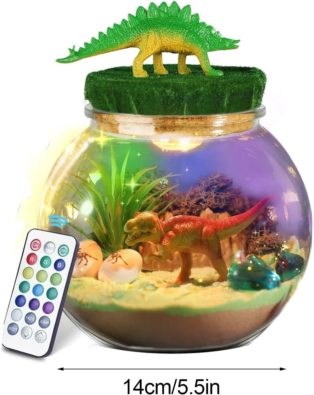 Nature Discovery: il set contiene modelli di dinosauri realistici, vegetazione lussureggiante, sabbia e luci a LED; I bambini non possono solo divertirsi, ma anche imparare qualcosa su dinosauri e natura e quindi creare un vivace ecosistema in miniatura che crea un mondo di dinosauri artistica: questo set non è solo un giocattolo, ma anche un modo per il lavoro artistico; Questo processo migliora la tua creatività e le tue capacità pratiche posizionando modelli e vegetazione di dinosauri e usando la sabbia per progettare il sito Con la luce a LED: trasforma il nostro set di Dinosaur Terrarium con la luce a LED integrata in un ambiente di sonno caldo e stesso stimola l'immaginazione di tuo figlio. Con colori e modalità regolabili, nonché accesso al telecomando Materiale durevole: il nostro set di Terrarium è costituito da materiali ecologici e garantisce un gioco sicuro per i bambini. Con il semplice assemblaggio e le singole opzioni di illuminazione, i bambini possono giocare in sicurezza e divertimento per ore Regali di routing: abbellire i giorni speciali dei ragazzini con questo set di Dinosaur Terrarium, un grande gesto per esprimere e amore. Ideale per compleanni, vacanze e altro ancora. Sorprendili con un regalo unico che ricorderai per sempre