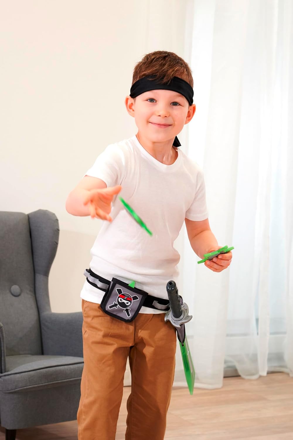 Set completo ninja: questo set include una cintura regolabile (fino a 80 cm), una spada con effetti luminosi e sonori, nonché una funzione di tiro, 3 frecce, 3 shuriken (stelle) e una fascia per fornire un'esperienza ninja completa. Spada con effetti luminosi e sonori - La spada colpisce con effetti luminosi e sonori impressionanti e una funzione di tiro che rende l'esperienza di gioco ancora più realistica. Divertimento in costume: il set Ninja è perfetto per travestirsi a carnevale o travestimento e lascia che i bambini scivolino in ruoli fantasiosi ninja. Età 3+ - Appositamente progettato per bambini dai 3 anni in su per ricreare emozionanti avventure ninja. Simba Divertimento a grandezza di elefante! Il cuore dello sviluppo del prodotto è l'entusiasmo dei bambini. Per bambini e bambine, piccoli e grandi. I bambini dovrebbero divertirsi ed essere incoraggiati.