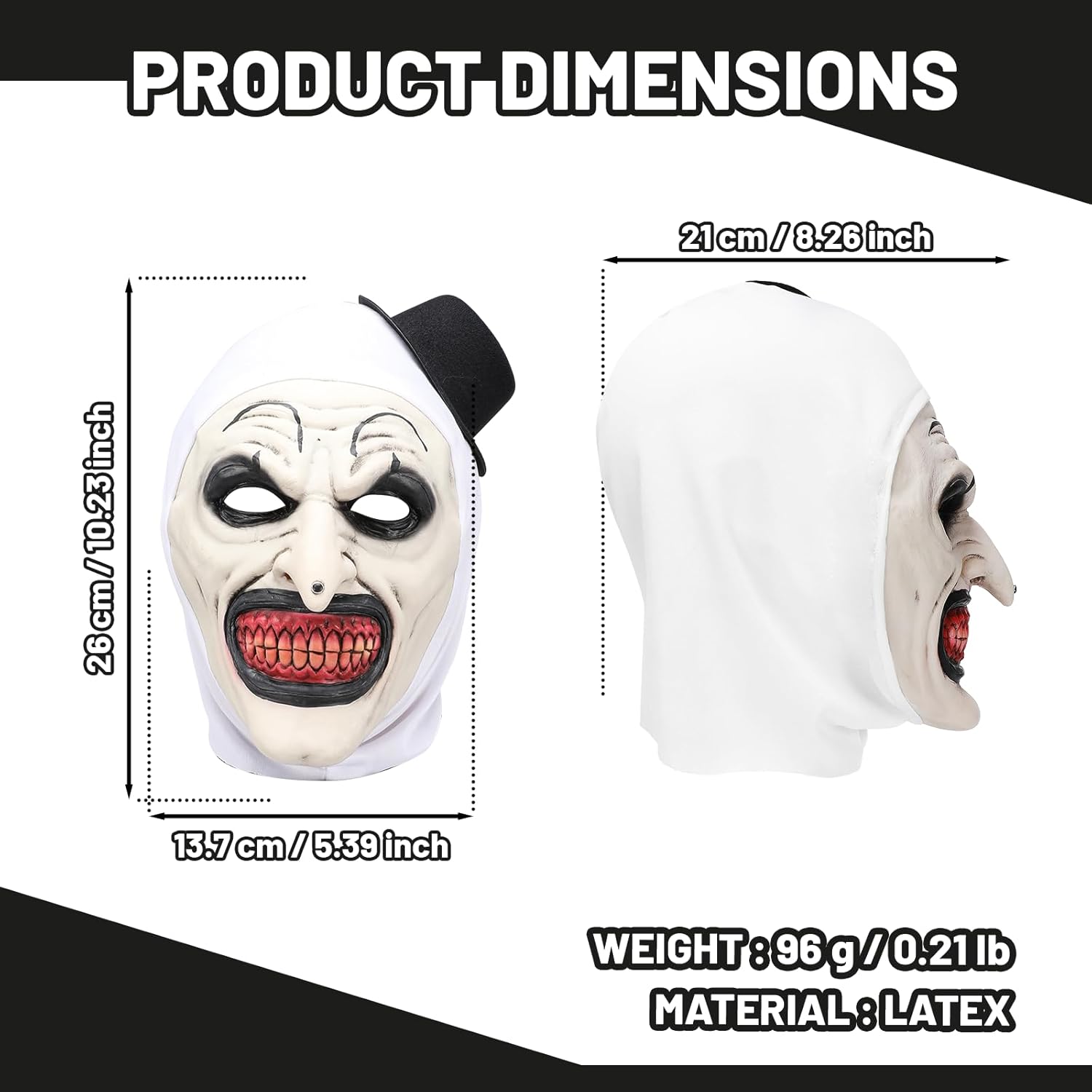 Terrifier - Maschera da clown, maschera horror, per cosplay, Halloween, feste