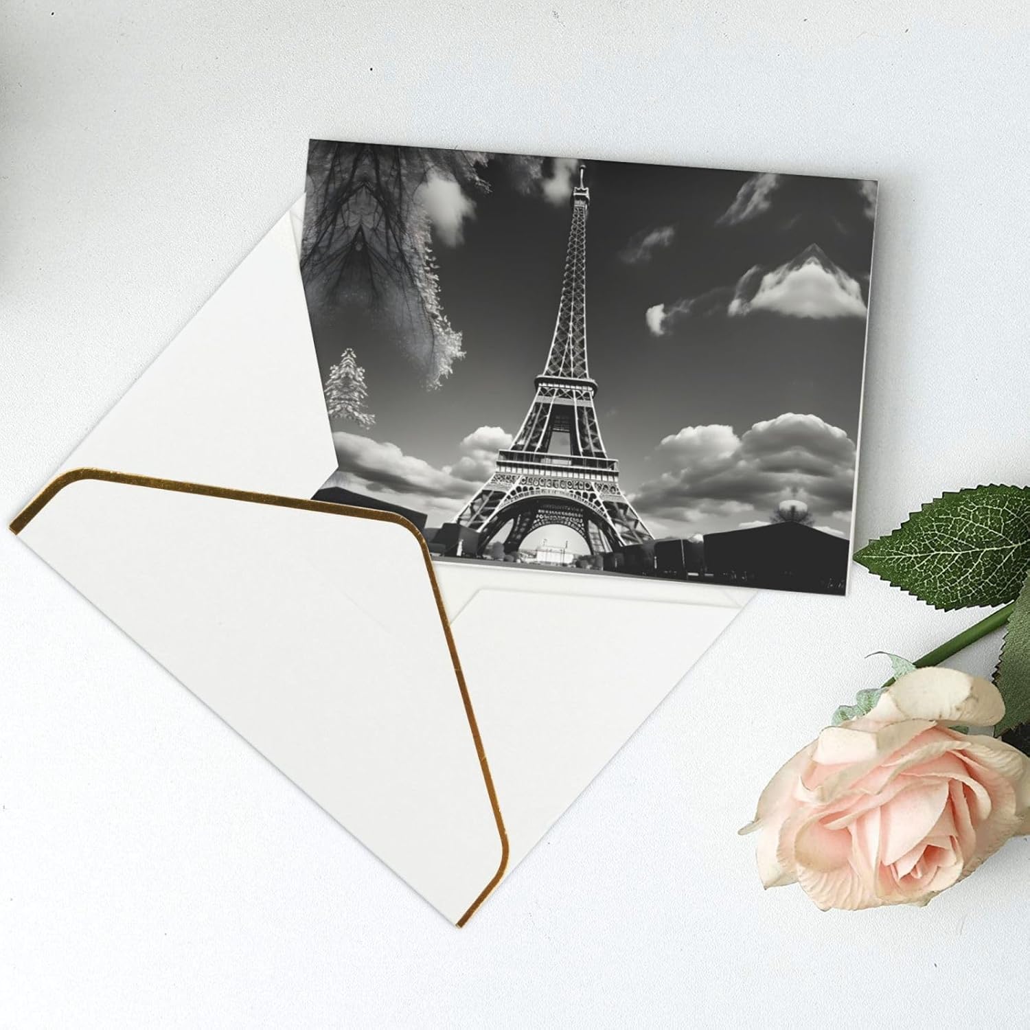 NEZIH Biglietti di auguri a tema Torre Eiffel e nuvola, con buste, per Natale, San Valentino, inviti per feste scintillanti, 11,4 x 15,2 cm