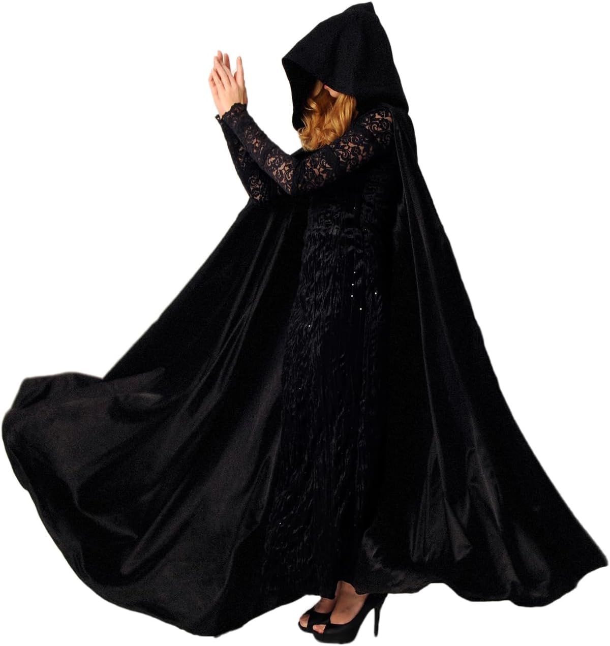 Migliora il tuo costume di Halloween e diventa la figura più sorprendente della tua prossima festa con questo mantello di Halloween in velluto a figura intera con cappuccio. Questo versatile mantello da cosplay è uno dei preferiti da donne e uomini, aggiungendo un'aura misteriosa e accattivante a qualsiasi costume. La stampa all-over conferisce al velluto nero una finitura lucida, facendoti distinguere dalla massa. Che tu ti stia travestendo da vampiro, strega o qualsiasi personaggio del regno della fantasia, questo accappatoio unisex con cappuccio renderà il tuo costume più autentico e accattivante. Misura 190 cm, si adatta alla maggior parte degli adulti ed è un'aggiunta ideale alla tua collezione di costumi. Non solo per Halloween, puoi indossare questo mantello anche per carnevali, feste a tema, eventi in maschera o qualsiasi occasione in maschera. Un'eccezionale decorazione di Halloween e una divertente idea regalo per Halloween, questo mantello è un must per ogni celebrazione festiva. Immergiti nella magia delle vacanze con questo mantello di Halloween con cappuccio a tutta lunghezza.
