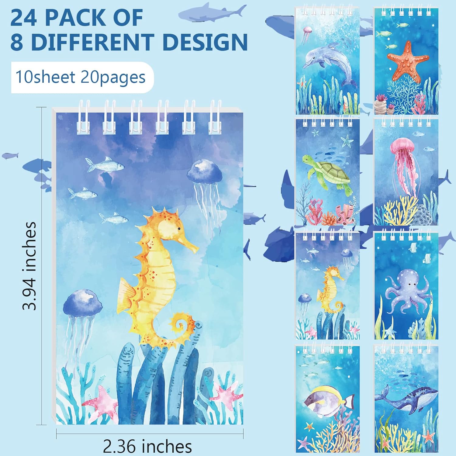 Prodotto incluso: il mini taccuino oceanico adotta gli elementi animali del mondo sottomarino come copertina del taccuino, viene fornito con 24 taccuini in 8 disegni con delfini, stelle marine, tartarughe, meduse, cavallucci marini, polpi, pesci tropicali e balene con effetti visivi; Crea un'atmosfera misteriosa e romantica Dimensioni ridotte: la dimensione del taccuino sotto il mare è 2,36 x 3 94 pollici, solitamente utilizzata come forniture per ufficio come promemoria; Ogni taccuino ha 20 pagine bianche, può essere facilmente messo in tasca; Puoi registrare la tua ispirazione e le tue idee in qualsiasi momento. Facile da trasportare: questi quaderni a spirale oceanica sono piccoli e portatili; È possibile utilizzare diari squisiti per promemoria quotidiani o quaderni di schizzi; Possono essere facilmente messi in tasca e sono semplici e facili da trasportare. Facile da usare: abbiamo progettato questi quaderni con animali oceanici pensando alla comodità; La rilegatura della pagina adotta il design della perforazione a spirale per facilitare lo strappo della carta; Puoi staccare contenuti importanti dalle tue cartelle in qualsiasi momento ed evidenziarli. Ampia applicazione: il promemoria a tema creatura del mondo sottomarino è molto adatto a qualsiasi festa sull'oceano; Puoi impostarlo come ricompensa per i test in classe per incoraggiare gli studenti a lavorare sodo. Puoi anche organizzare una festa a tema oceano come regalo da condividere con i tuoi amici