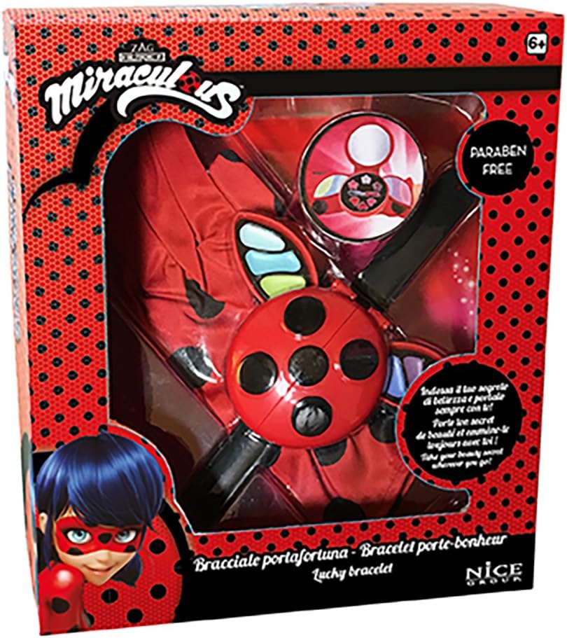 Guanto da coccinella e braccialetto per il trucco da abbinare a lucidalabbra e ombretto glitterato, applicatore e specchio