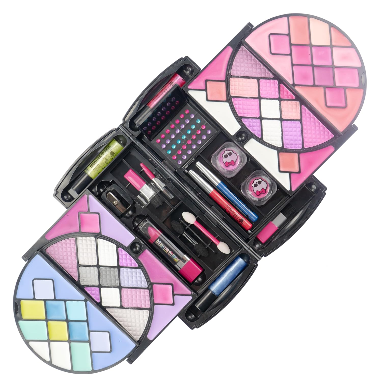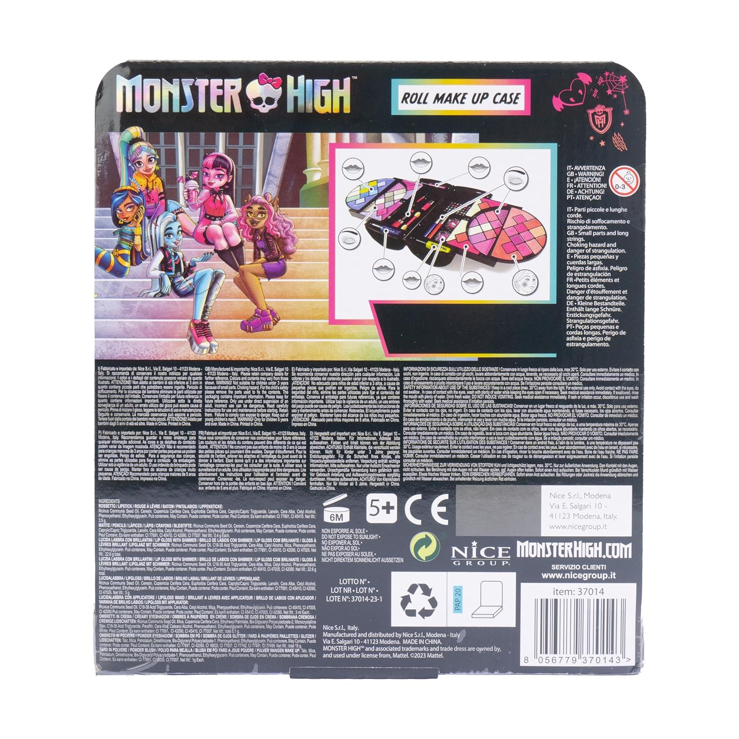 CUSTODIA MONSTER HIGH ROLL: è una custodia a forma di cilindro con un ampio set di ombretti, lucidalabbra, smalto e rossetti per creare un look alla moda. Caratteristiche: Con la borsa da toilette Vampire Girls, puoi sperimentare graziose combinazioni di colori in stile Monster High. Utilizzo: la custodia per il trucco aiuta a stimolare l'abilità, la coordinazione, le capacità creative e fantasiose di ogni ragazzo e ragazza che vuole sentirsi come in una fiaba senza limitare la propria immaginazione nel trucco e nel travestimento. Materiali: Tutti i trucchi sono testati, sicuri e certificati in laboratori italiani e sono adatti alle pelli più sensibili. Contenuto: 1 custodia a rullo con lucidalabbra, ombretto, fard, applicatori, pietre di colla, 1 istruzioni (potrebbero non essere in inglese). Età consigliata: 5+
