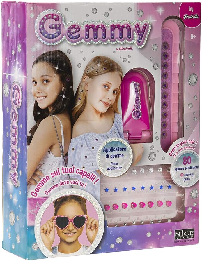 Applicatore di gemme scintillanti, dotato di cartucce di gemme. Puoi applicare le gemme su qualsiasi superficie: capelli, vestiti, oggetti, facili da usare anche per le bambine più piccole. Il kit comprende 8 cartucce di ricarica, 80 gemme di diverse forme e colori. Istruzioni semplici da seguire. Facile da usare. Prodotto originale Nice Group. Età consigliata: 6+