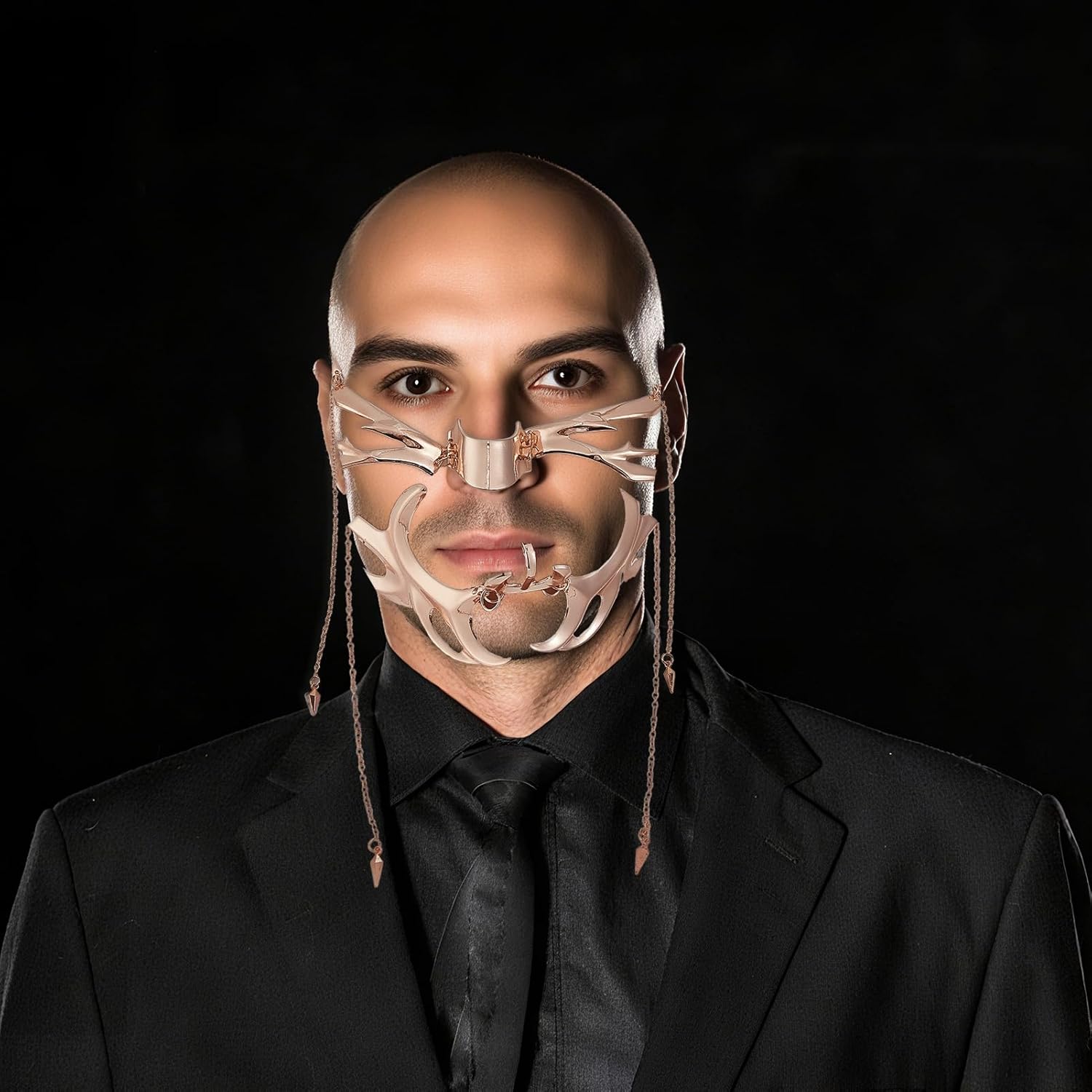 QUANTITÀ:Riceverai 2 catena con volto punk in oro, riutilizzabile e un accessorio coordinato per unque voglia aggiungere stile creativo Facile da abbinare:questo gioiello per il viso in argento con maschera irregolare cyber-punk si adatta a qualsiasi genere e occasione, aggiungendo un nuovo tocco al tuo stile di moda. Offre varie catene per il viso e gioielli per labbra in acciaio da abbinare Qualità:Realizzato in metallo titanio, questo gioiello per il viso fluido alieno meccanico punk - maschera cava cyber-punk si adatta comodamente al naso. Il metallo leggero garantisce un comfort duraturo, creare un senso di movimento con la tua postura Super attraente:la maschera da ballo per uomo e donna ti fa distinguere con il suo design esotico e unico, mostrare meglio il tuo temperamento unico Occasione:i nostri gioielli con faccia cava sono adatti per il cosplay, feste di trucco steampunk, Proms, discoteche, sfilate di moda, carnevali, festival, halloween, mascherate, Dolcetto o scherzetto, spettacoli teatrali, e tutte le occasioni speciali