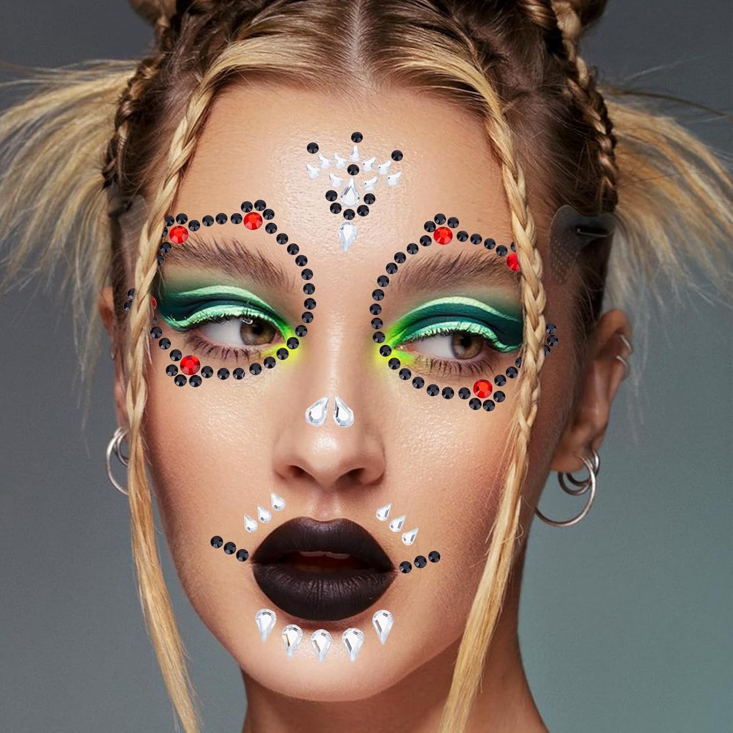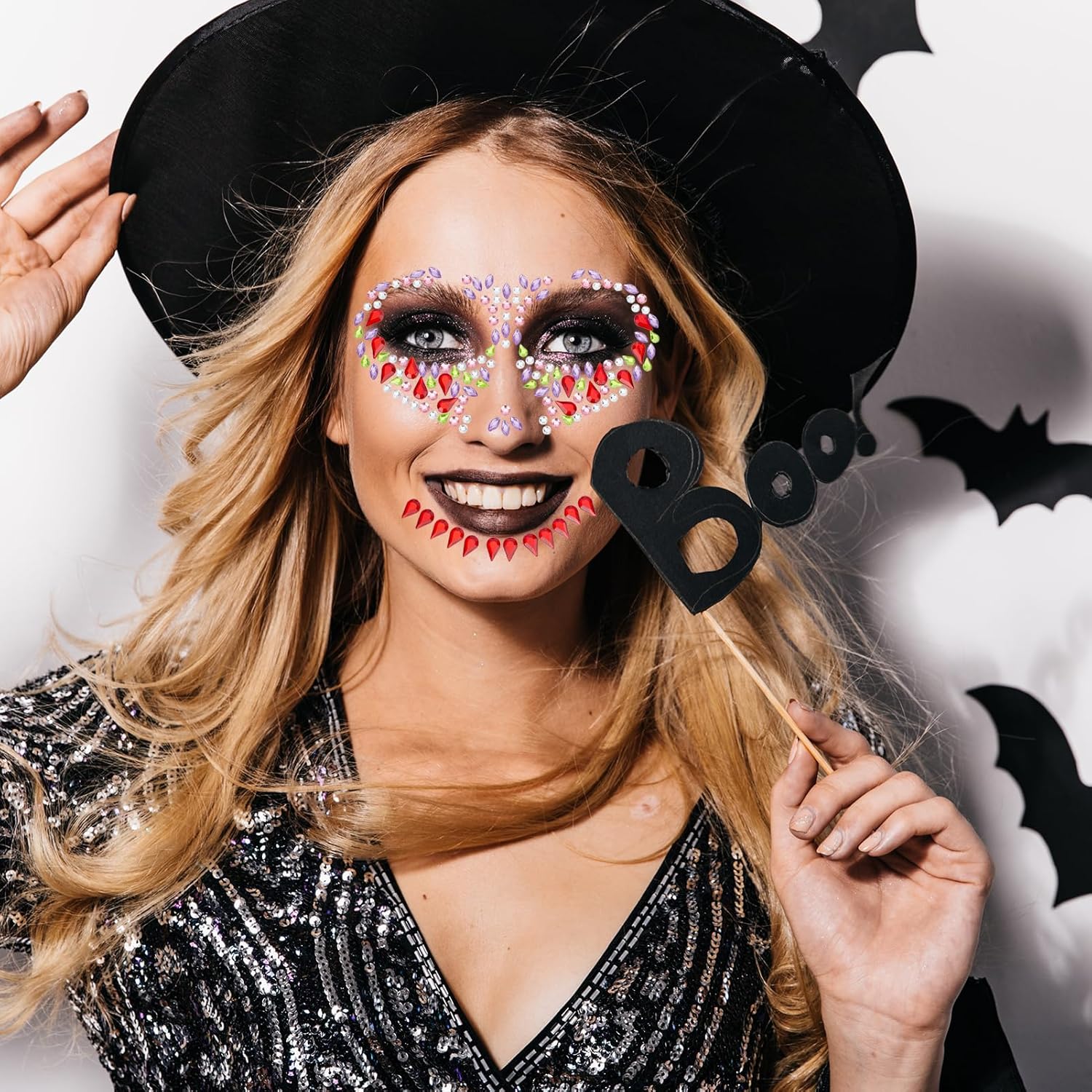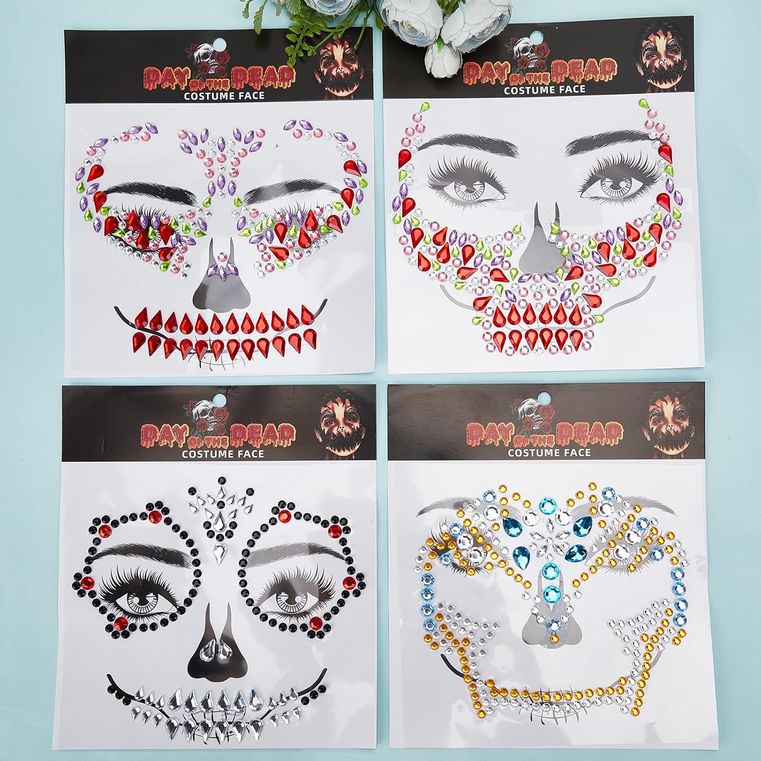 QUANTITÀ:riceverai 4 set di gioielli per il viso di Halloween per liberare la tua creatività. Negli accattivanti colori rosso e nero misterioso. DISEGNI SQUISITI:indossa questi gioielli per il viso dal design accattivante, se vuoi incarnare il fascino misterioso di una sirena, eleveranno il tuo look ad altezze affascinanti. MATERIALI DI QUALITÀ PREMIUM:questi adesivi per gioielli per il viso sono realizzati con strass di alta qualità, che non sono solo delicati e belli, ma anche sicuro e comodo da indossare sulla pelle delicata. Il loro supporto autoadesivo garantisce un facile fissaggio, e la struttura resistente degli adesivi per gioielli con viso di Halloween garantisce un'usura duratura durante i festeggiamenti notturni. FACILE DA USARE:dì addio alle colle disordinate e alle complicate tecniche di incollaggio! Questi gioielli per il viso presentano un design intuitivo che ti consente di staccarli facilmente dal supporto e indossarli sul viso. PERFETTO PER HALLOWEEN:sia che tu stia infestando le sale di una dimora inquietante, ballare tutta la notte ad una festa di Halloween, o lanciare un incantesimo durante un evento dolcetto o scherzetto, queste gemme per il trucco del viso per adulti di Halloween sono l'accessorio definitivo per aggiungere glamour al tuo costume di Halloween.