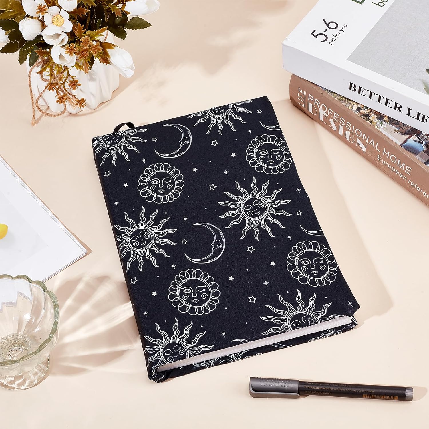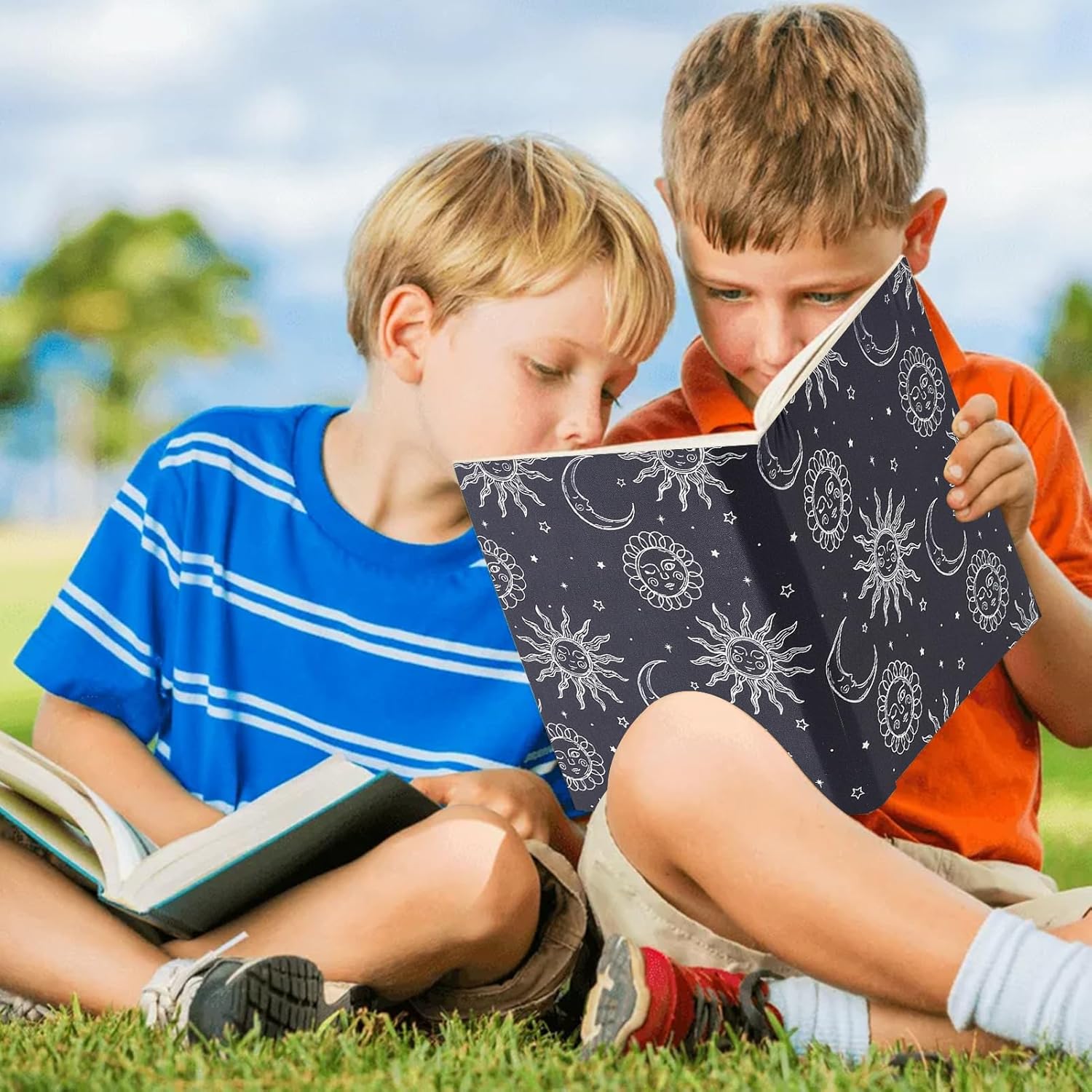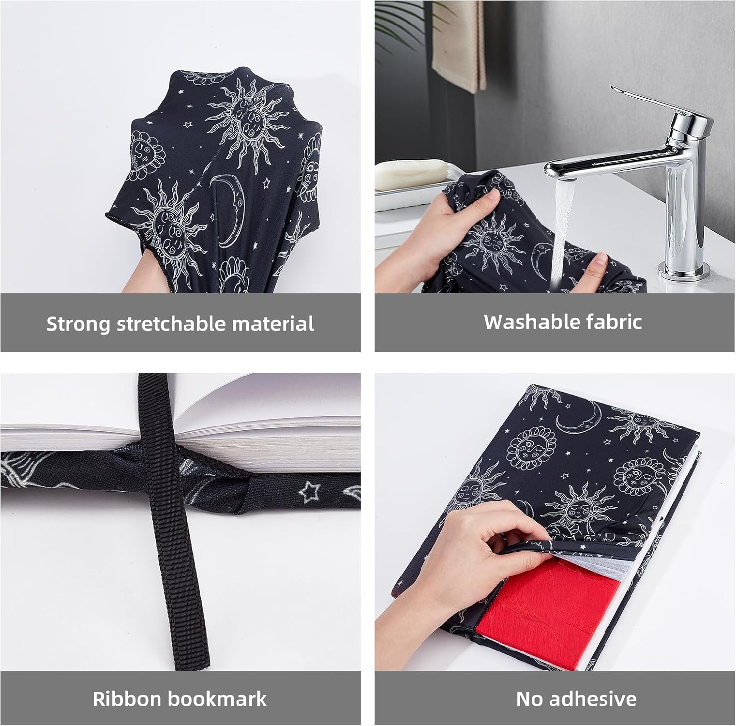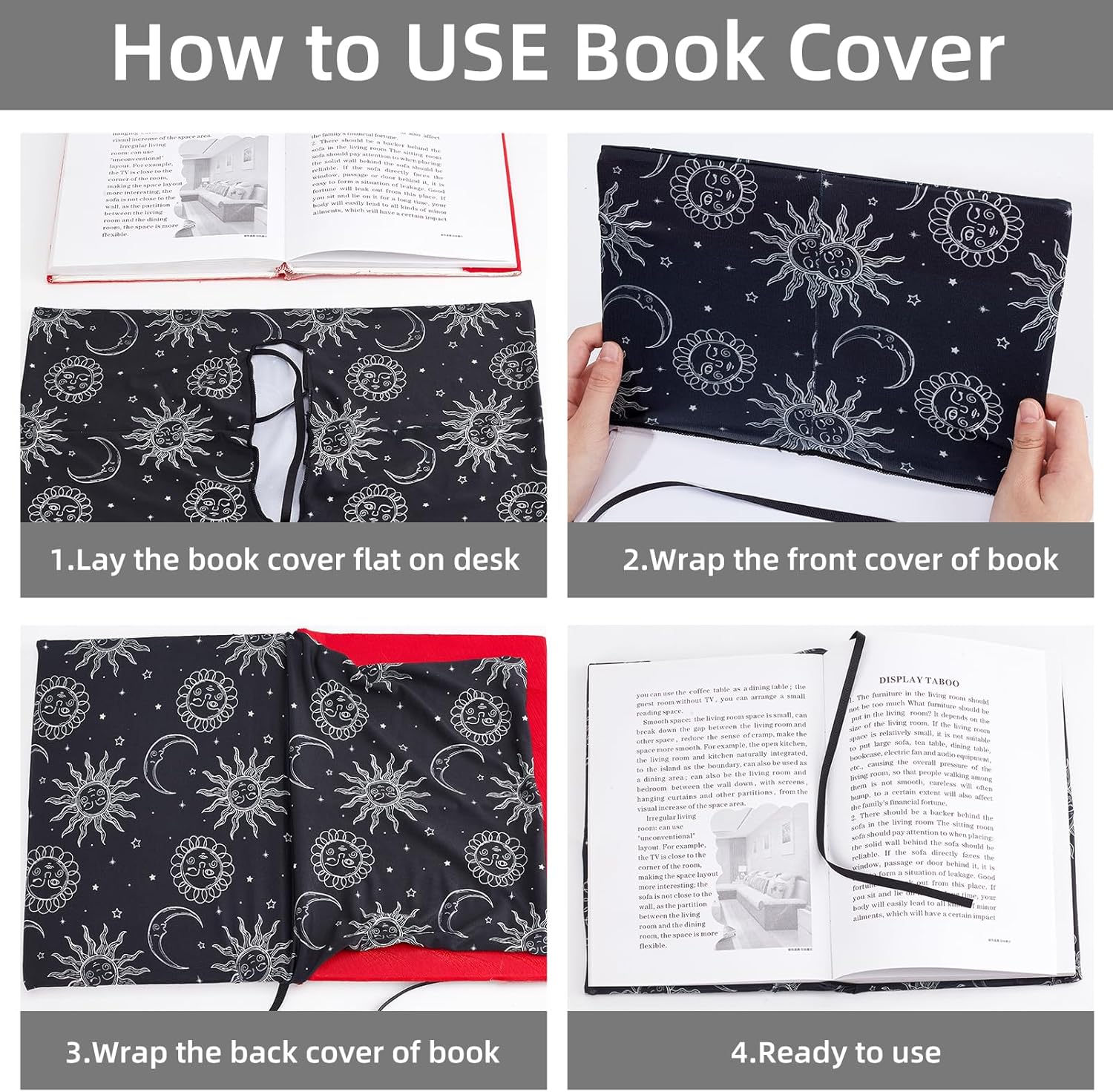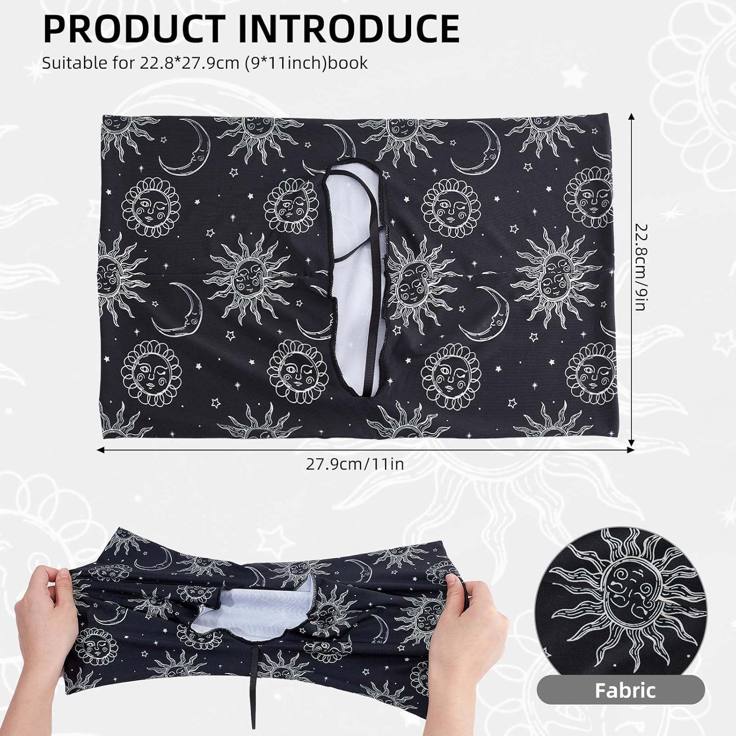 ADATTO ALLA MAGGIOR PARTE DEI LIBRI:questa copertina elastica è progettata per adattarsi ai libri con copertina rigida che misurano 9 x 11 pollice, con dimensioni di circa 25cm / 9.84 pollici di larghezza e 40cm / 15.74 pollici di lunghezza MATERIALE LAVABILE:Realizzato in tessuto elastico, questa fodera è lavabile, riutilizzabile, e resistente alla rottura o allo sbiadimento, garantire una protezione a lungo termine per i tuoi libri FACILE DA INSTALLARE:basta allungare la copertina sul tuo libro, senza bisogno di tagliare o incollare. Questa custodia in tessuto proteggerà il tuo libro dagli urti, graffi, e indossare DESIGN CLASSICO:decorato con un elegante motivo a sole e luna, questa copertina del libro unisce eleganza e appeal visivo, rendendo facile individuare il tuo libro a colpo d'occhio UTILIZZO VERSATILE:Ideale per libri, libri di testo, e quaderni, questa copertina è perfetta per gli insegnanti, scrittori e amanti dei libri, fornendo sia protezione che facile identificazione