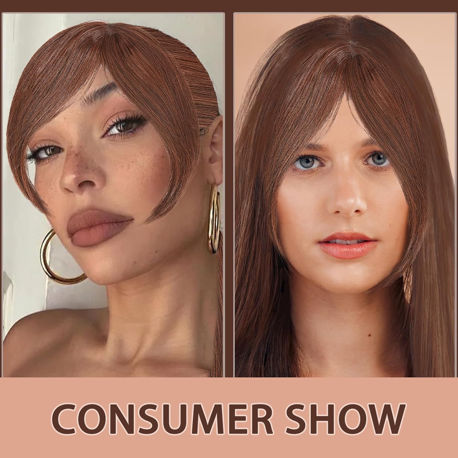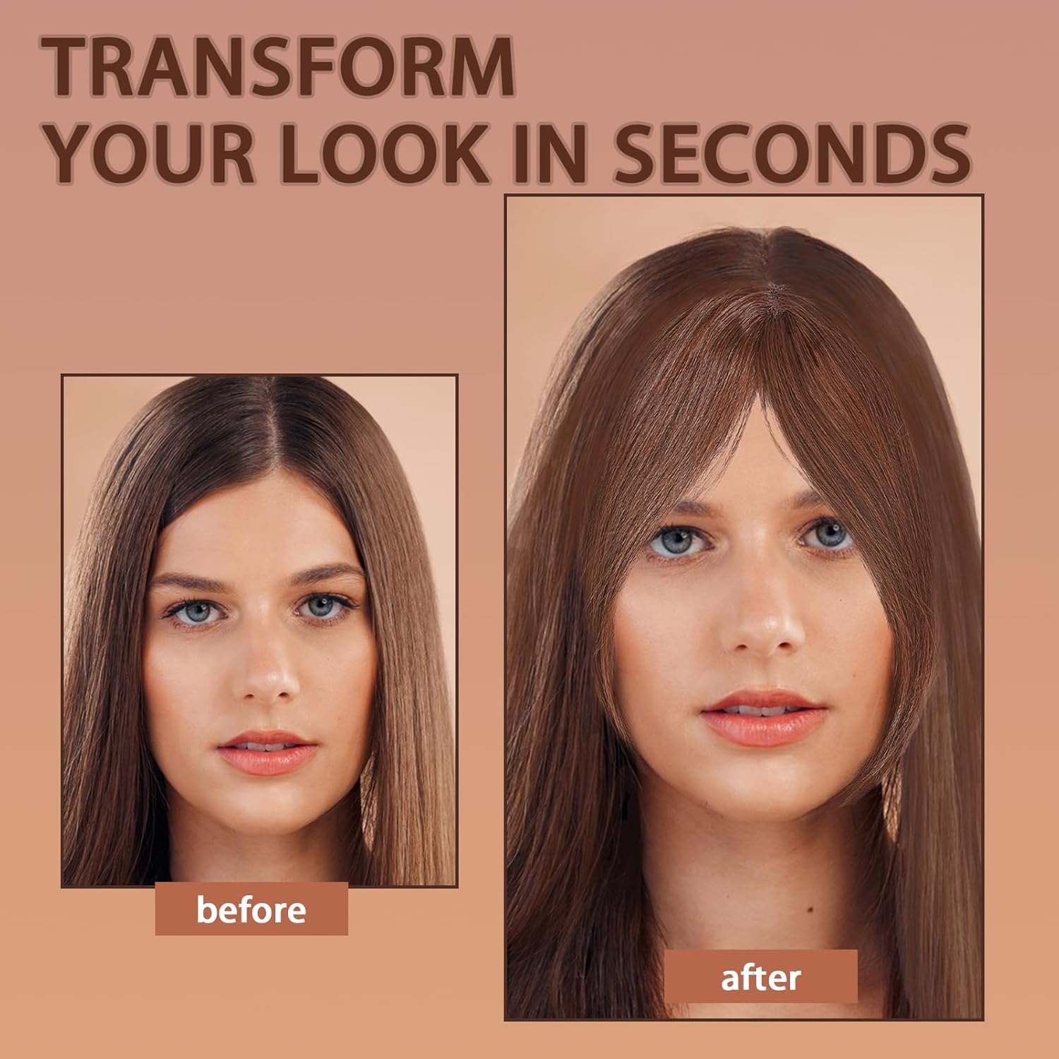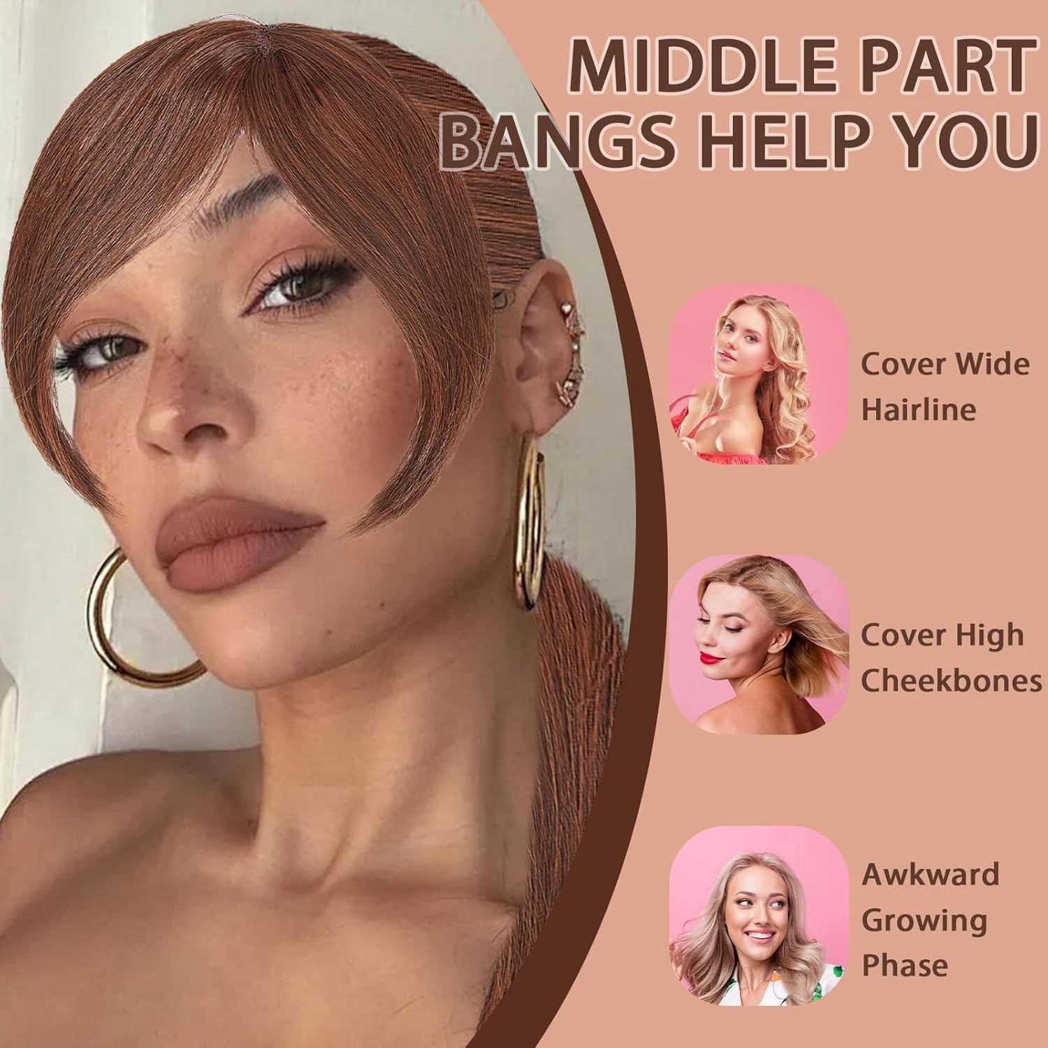 NICENEEDED Posticci per Capelli con Frangia e Riga Centrale, Parrucche Ondulate in Fibra Ad Alta Temperatura per Feste, Matrimoni e Tutti I Giorni