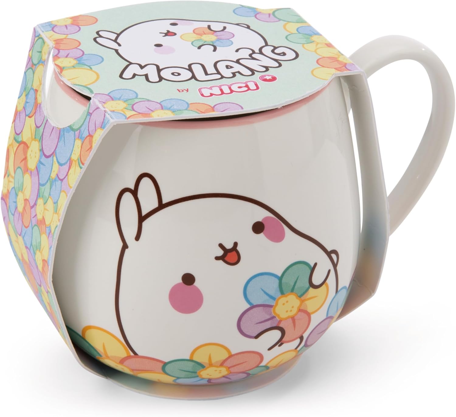 MOLANG: La tazza con manico arrotondato realizzata in porcellana di alta qualità mostra Molang in un prato colorato con fiori arcobaleno, che diffondono allegria; decorata con un'attraente banderuola, è il regalo perfetto per gli appassionati di Molang di tutte le età TAZZA IN PORCELLANA: La tazza è realizzata in porcellana di alta qualità, ha una capacità di 400ml, è adatta al microonde e ama farsi un giretto in lavastoviglie MOLANG: Molang, gentile e affettuosa, ha uno stile unico e immediatamente riconoscibile; I prodotti MOLANG portano gioia, comfort, coccole, creatività, fiducia e umorismo nella vita dei loro fan; Tutti amano Molang e Molang ama tutti REGALI PERFETTI: con i nostri incantevoli animaletti e prodotti di peluche, non si tratta solo di regali per compleanni, per le persone più care, per accogliere un nuovo nato, per Pasqua o per Natale, ma anche di momenti di felicità; Immergiti in un mondo di morbidi abbracci e dolci sorprese ❤️ CON AMORE, NICI: da oltre 30 anni, NICI porta la gioia negli occhi di neonati e bambini raggianti; ogni prodotto è progettato con grande attenzione ai dettagli e realizzato con materiali di alta qualità; come regalo di compleanno, per Pasqua, Natale o come gesto speciale, i prodotti NICI offrono benessere e portano allegria nel momento delle coccole