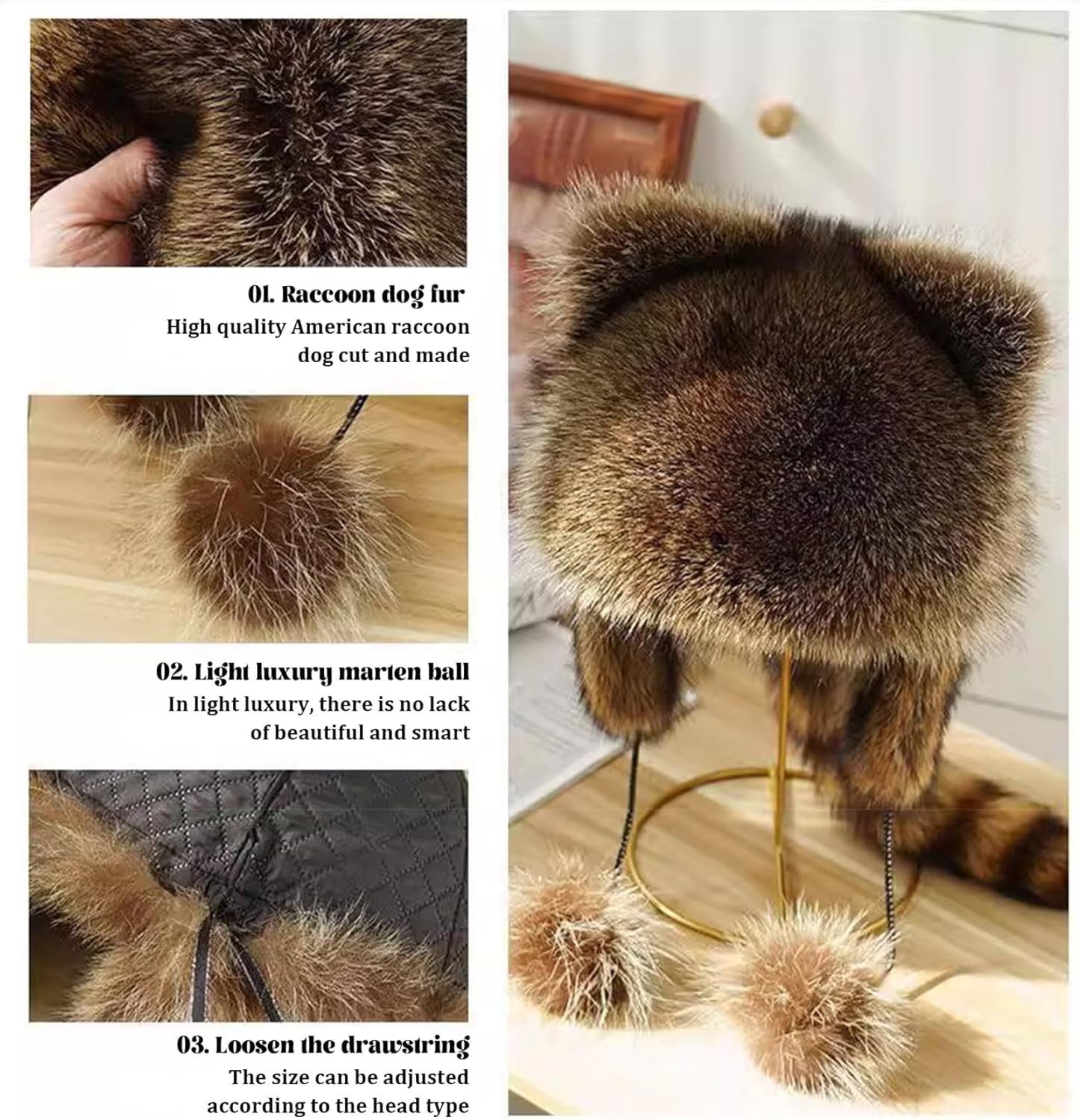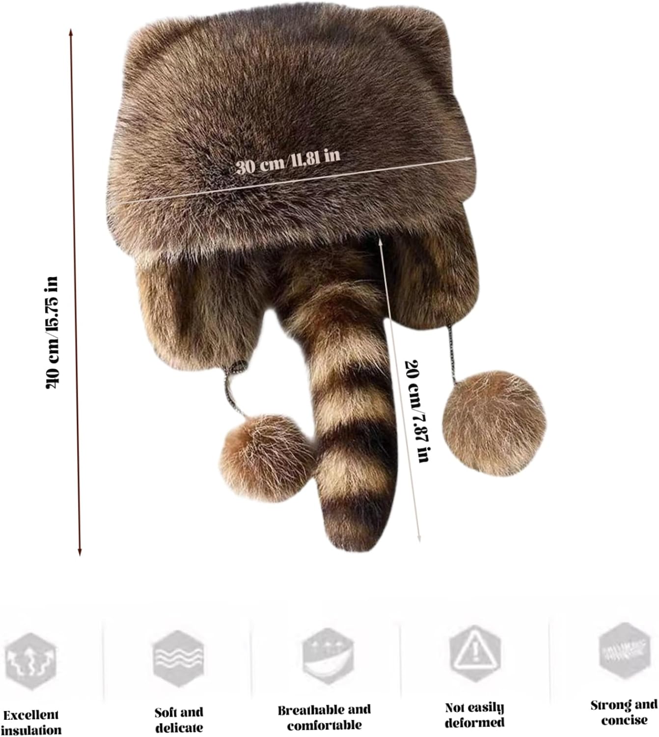 Descrizione: Goditi il calore e lo stile con questo realistico cappello da procione finto..Il suo design antivento, la coulisse regolabile e i morbidi paraorecchie lo rendono perfetto per l'abbigliamento invernale, mentre il suo stile unico è un'aggiunta divertente a qualsiasi guardaroba per la stagione fredda.. Caratteristiche: Cappello di procione.. -Colore: come mostrato.. -Taglia:.. Coda: circa 20 cm/7,87 pollici;. Palle di pelo e fili su entrambi i lati: circa 20 cm/7,87 pollici;. Cappello: 30 cm/11,81 pollici;. Cappello + coda: 40 cm/15,75 pollici.. Nota: Misurazione manuale, prega di consentire lievi errori sulla dimensione.. I colori potrebbero presentare una leggera differenza a causa dei diversi schermi.. Pacchetto compreso 1 pz * Cappello di procione