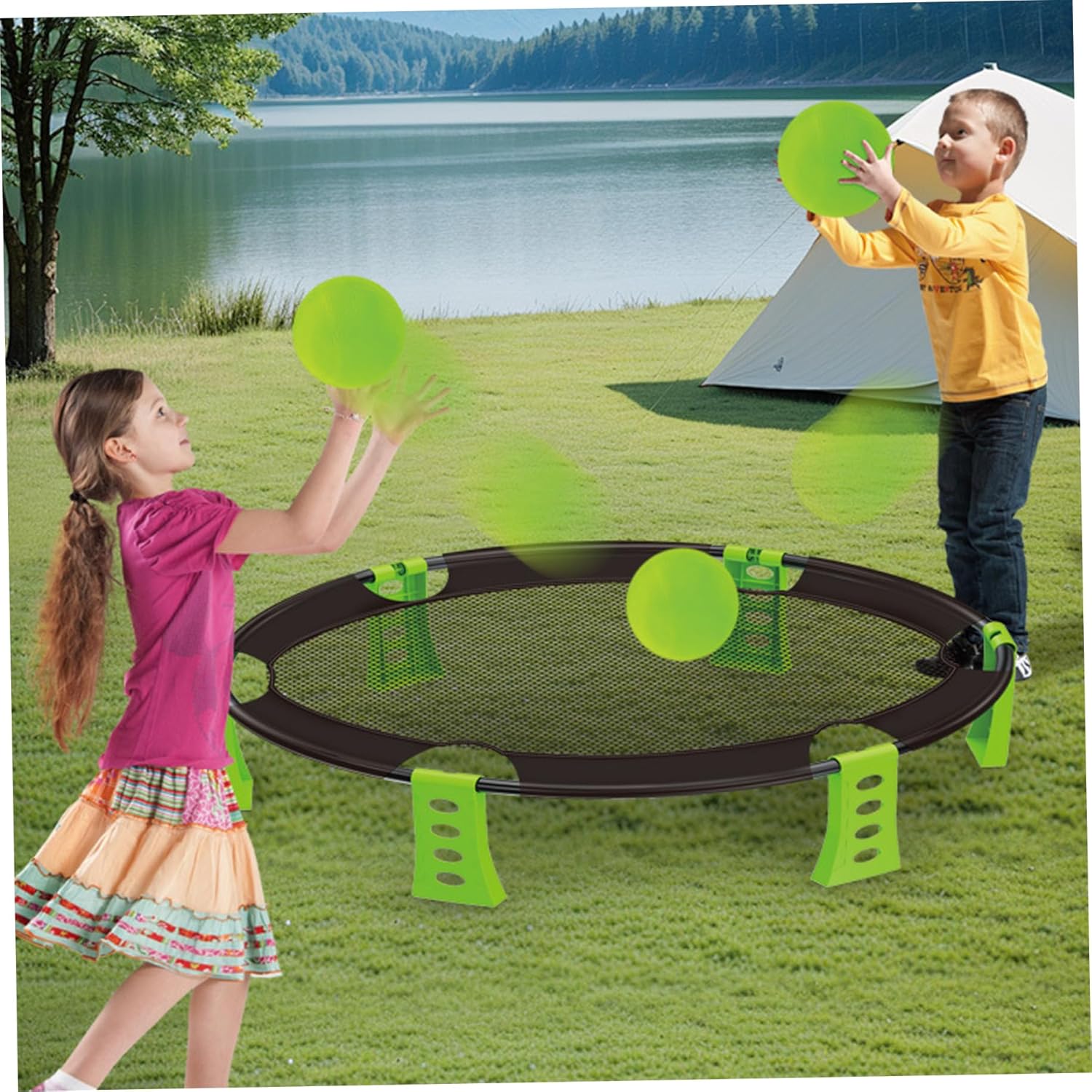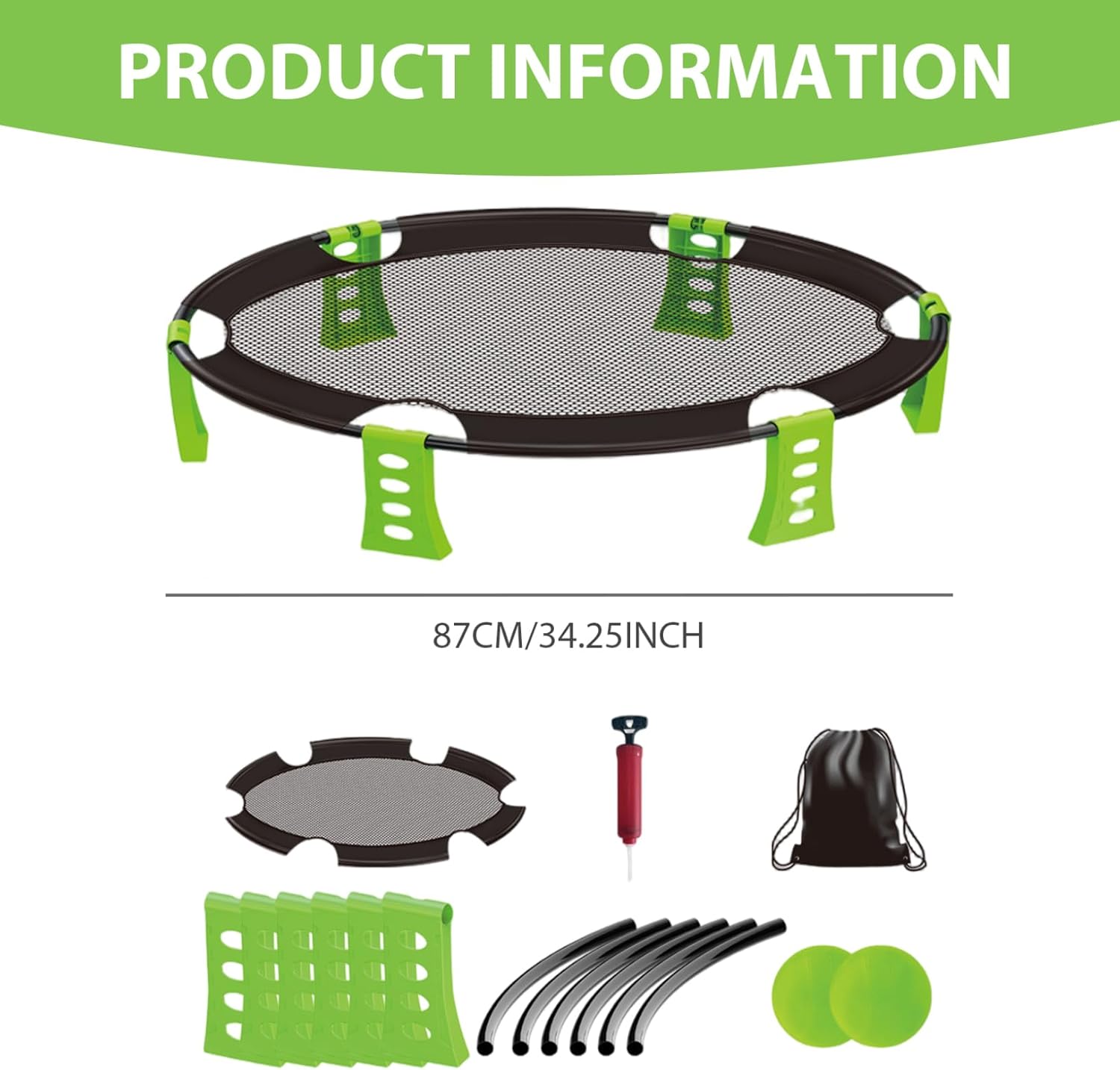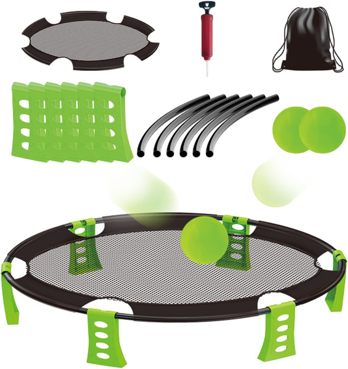 Configurazione portatile e semplice: la configurazione è un gioco da ragazzi!.La rete è semplice da montare e smontare, mentre la borsa inclusa facilita il trasporto e lo stoccaggio di tutta la tua attrezzatura..È il gioco ideale per il divertimento in movimento. Divertimento attivo e coinvolgente: incoraggia l'attività fisica e il lavoro di squadra con questo emozionante gioco all'aperto..Ideale per gite in spiaggia, campeggio o riunioni di famiglia, promuove il gioco attivo e la sana competizione. Perfetto per tutte le età: che tu sia un bambino o un adulto, questo gioco è progettato per il divertimento di tutti..È un'attività fantastica per far divertire le famiglie insieme all'aria aperta, rendendola perfetta per la spiaggia, il cortile o il parco. Set completo per giochi da spiaggia: questo kit da gioco per esterni include tutto ciò di cui hai bisogno per una divertente giornata in spiaggia: 2 palloni, una rete robusta, una comoda custodia e una pompa ad..Tutto è imballato per un facile trasporto! Materiali stabili: realizzati con materiali plastici, la rete e le palline sono realizzate per resistere a condizioni esterne difficili..Il design robusto garantisce che dureranno per innumerevoli round di gioco.