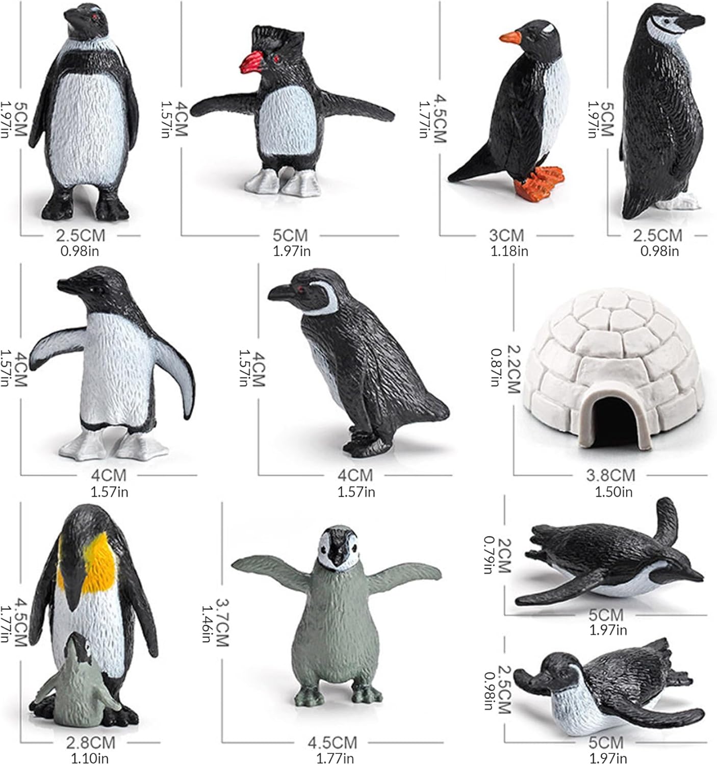Ampiamente usato: il set di figurine impressionerà sicuramente ed è perfetto per compleanni, vacanze e altre occasioni per fare regali per bambini o chiunque di qualsiasi età. Design: migliora la tua scrivania con il nostro set di figurine. Il suo design naturale e bello dona un nuovo look rinfrescante a qualsiasi stanza. Confezione: 10 modelli di pinguini in diverse pose e 1 modello più simpatico. Materiale: buona qualità e aspetto abbastanza realistico. Questo set di giocattoli è realizzato in PVC ecologico. Realistico: ogni dettaglio ha una trama realistica. La scultura e l'articolazione realistiche danno vita a una creatura colossale.