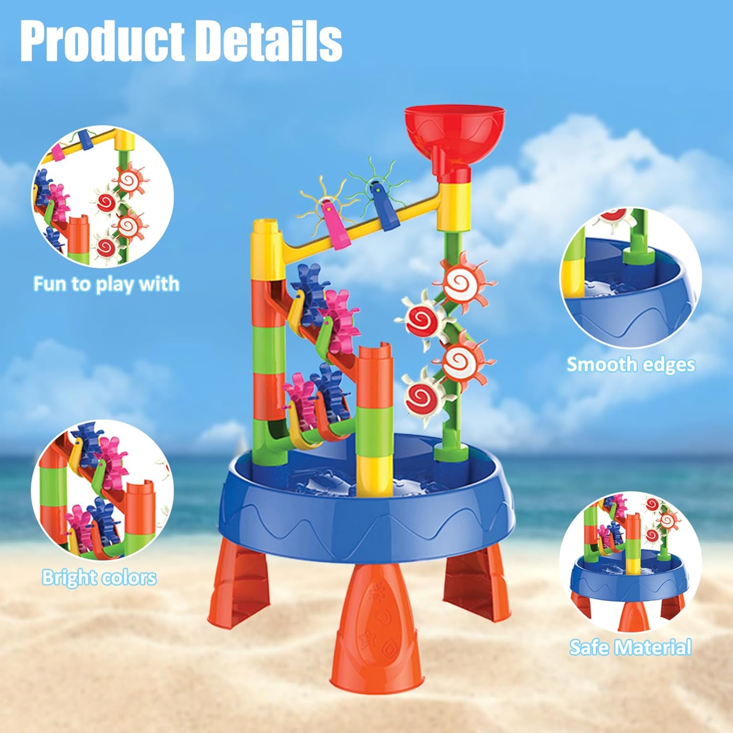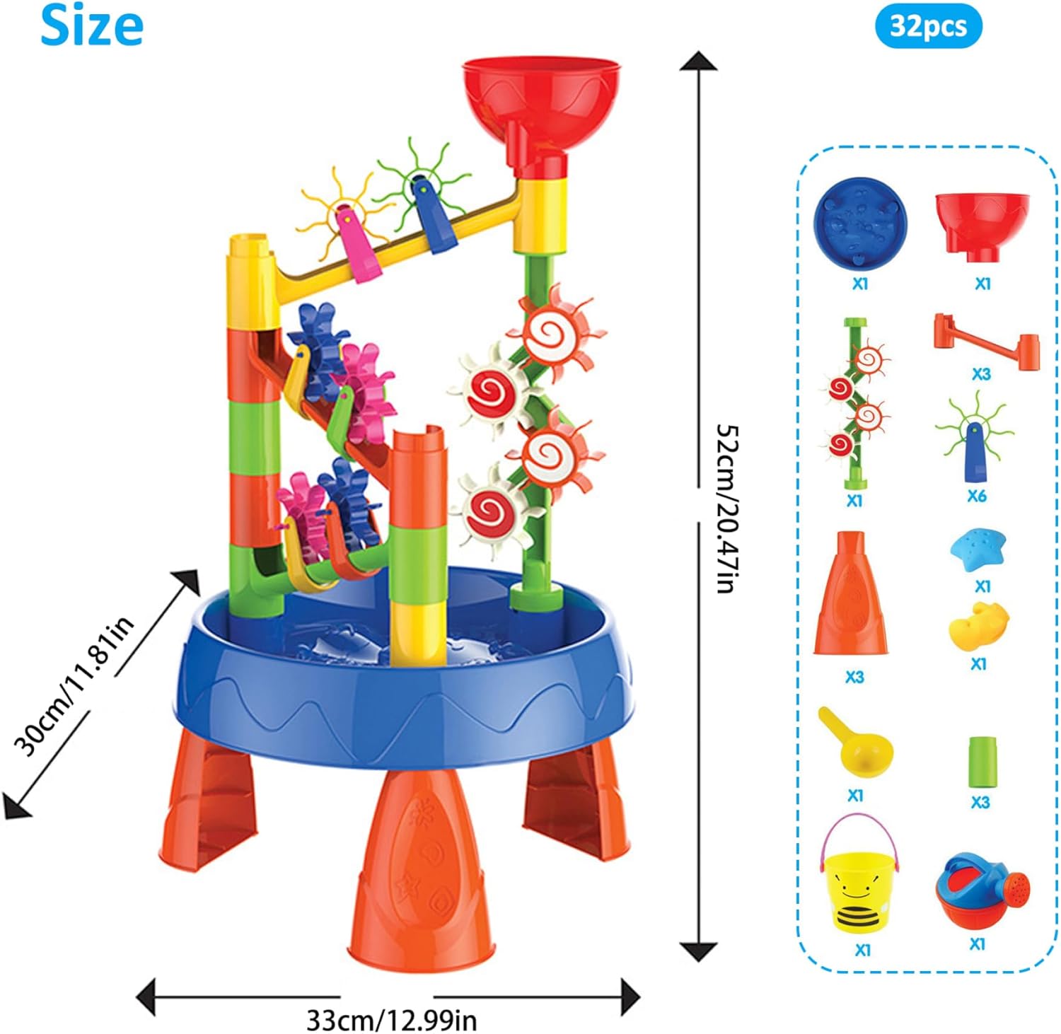 Bordo arrotondato: il design del tavolo ad acqua per bambini prevede una struttura ad arco liscia e curva che elimina gli spigoli vivi e offre sicurezza ai bambini in caso di incidenti o cadute che potrebbero verificarsi durante il gioco. Questo design accurato garantisce un ambiente di gioco sicuro e senza preoccupazioni per i tuoi piccoli e offre ai genitori tranquillità mentre i loro bambini si godono infinite ore di divertimento e scoperta. Estate: la falda freatica per bambini è perfetta per le prossime feste in spiaggia o riunioni a bordo piscina, offrendo gioia ed eccitazione senza fine. Sia che tuo figlio stia costruendo castelli di sabbia o sguazzando nella piscina del cortile, riderà e giocherà per ore. Ideale come sorpresa per le vacanze o per il compleanno. Divertimento e creatività senza fine: il nostro set da tavolo ad acqua per bambini comprende 32 giocattoli progettati per stimolare l'immaginazione del tuo bambino. Perfetto per il gioco in spiaggia, questo set completo comprende ruote idrauliche, secchi, bottiglie spray e forme per incoraggiare il gioco creativo. Robusti e sicuri: i nostri giocattoli da spiaggia sono realizzati con materiali affidabili e sono costruiti per resistere a sessioni di gioco intense. L'utilizzo di materiali atossici non solo garantisce la sicurezza del tuo bambino mentre gioca sulla spiaggia, ma dà anche ai genitori la tranquillità che i loro piccoli stiano giocando con giocattoli sicuri. Vivace e accattivante: la collezione di giocattoli da spiaggia vivace e colorata è progettata per catturare l'attenzione del tuo bambino. Con le sue tonalità vibranti, arricchisce i loro sensi e trasforma il momento del gioco in un'esperienza ancora più intensa e stimolante per loro.