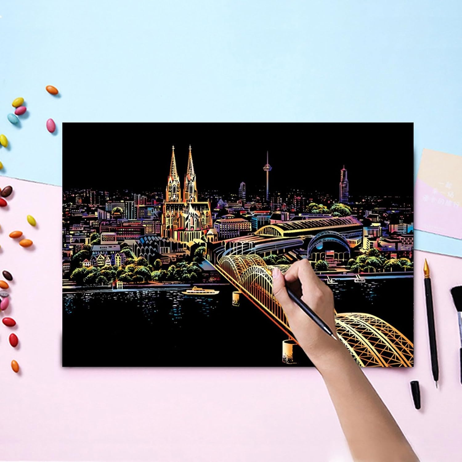 Ottima idea: ideale per compleanni, anniversari o qualsiasi occasione in cui un premuroso è apprezzato. Sorprendi i tuoi cari con questa opera d'arte unica nel suo genere. Esperienza facile e fai da te: perfetto sia per adulti che per bambini, basta utilizzare lo strumento fornito per graffiare lo strato superiore, rivelando un sottostante nascosto. Non sono richieste abilità speciali! Viste notturne accattivanti: scopri scene mozzafiato e dettagliate di un paesaggio notturno con ogni graffio, rivelando una città illuminata sotto la . Qualità: ogni pezzo è meticolosamente realizzato da artigiani, garantendo un pezzo unico e che si distingue dalla folla. Scatena la creatività: goditi ore di relax, stress - creatività mentre sveli i dettagli intricati di questo dipinto da grattare.