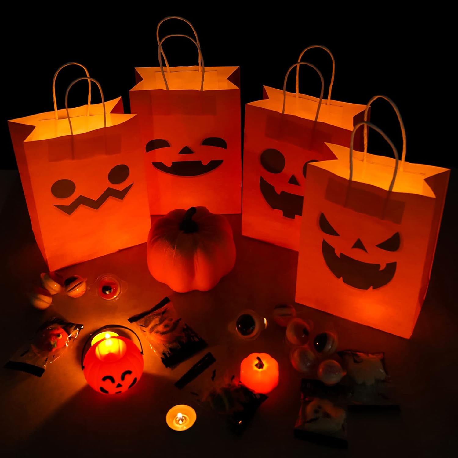🎃【16 Sacchetti regalo di Halloween】I sacchetti di carta con manici misurano 21,6 x 16 x 7,9 cm e presentano 4 diversi disegni di zucca con espressioni facciali nere, ideali per varie feste. Robusto, durevole e ideale per una suggestiva festa di Halloween e altre festività. 🎃【Disegni di decorazioni di zucca】 Festeggia Halloween con stile con questi graziosi sacchetti regalo che i tuoi ospiti e i tuoi bambini adoreranno. I sacchetti di carta colorati per dolcetto o scherzetto sono disponibili in 4 eleganti design di Halloween in arancione brillante. La stampa a colori con colori vivaci è appositamente progettata per le tue celebrazioni di Halloween. 🎃【Facile da usare】Questi piccoli e squisiti sacchetti di carta sono adatti per bomboniere e piccoli regali come caramelle, biscotti, cioccolatini, torte, snack, premi, artigianato, piccoli giocattoli e altro ancora. Usalo per personalizzare le confezioni dolcetto o scherzetto e le borse da festa e decorare costumi e bandierine! Puoi anche decorare queste borse da festa di Halloween con abbellimenti per renderle speciali e abbinarle al tema di Halloween. 🎃【Materiali di alta qualità】Questi adorabili sacchetti regalo sono realizzati in carta kraft di alta qualità, stampata con inchiostro atossico ecologico, inodore, sicuro e riciclabile al 100%. Sono robusti, pieghevoli e robusti e perfetti per le bomboniere di Halloween. Ecologico e adatto a tutta la famiglia. 🎃【Occasioni di applicazione】Le nostre borse regalo per feste di Halloween sono leggere, facili da trasportare e ideali per feste di Halloween per bambini, confezioni regalo, feste, feste di compleanno, picnic, riunioni e altro ancora. Adatto per la scuola, il lavoro e l'uso privato. Condividi gli spaventosi e divertenti oggetti di Halloween dei cartoni animati con i tuoi amici e familiari, falli sorridere o spaventare, non importa come, e divertiti!