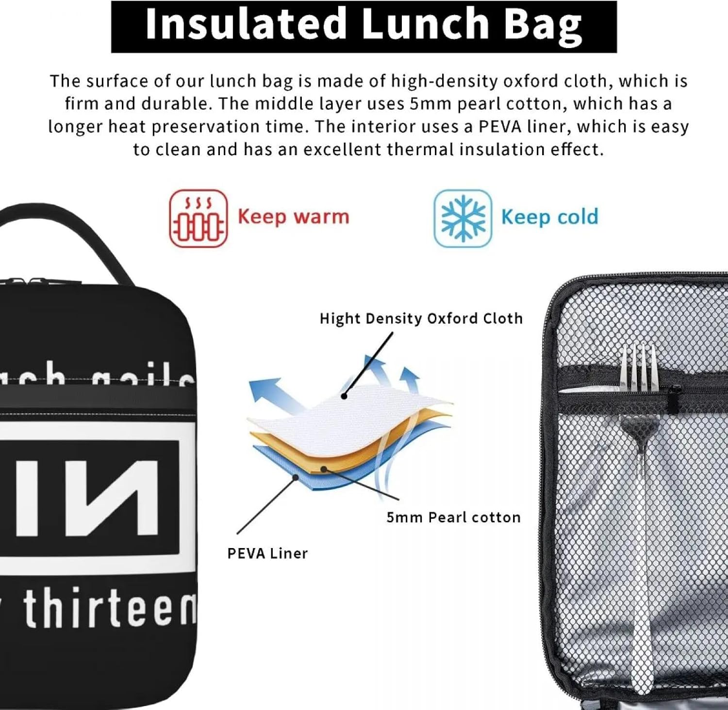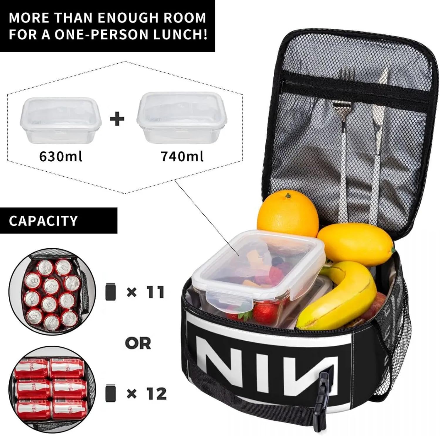 NIN Logo Band Merch Borse da Pranzo Isolate per Bambini da Viaggio Scatola di Cibo Portatile per Tutte Le Stagioni Termico Cooler Bento Box