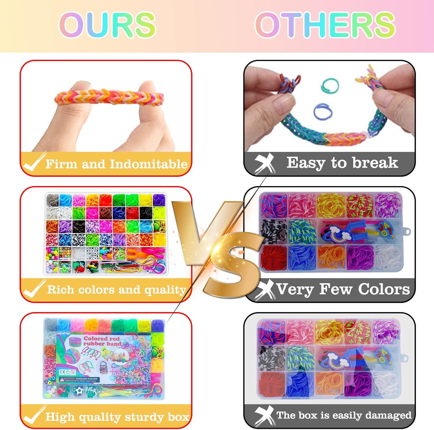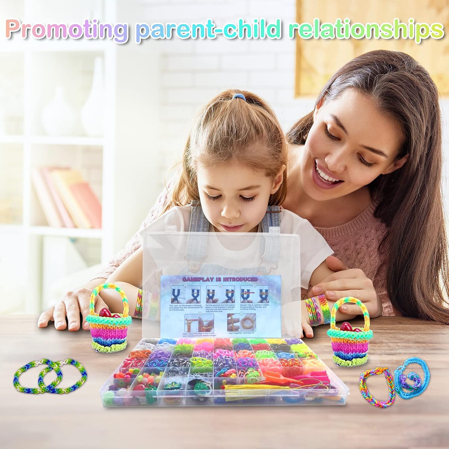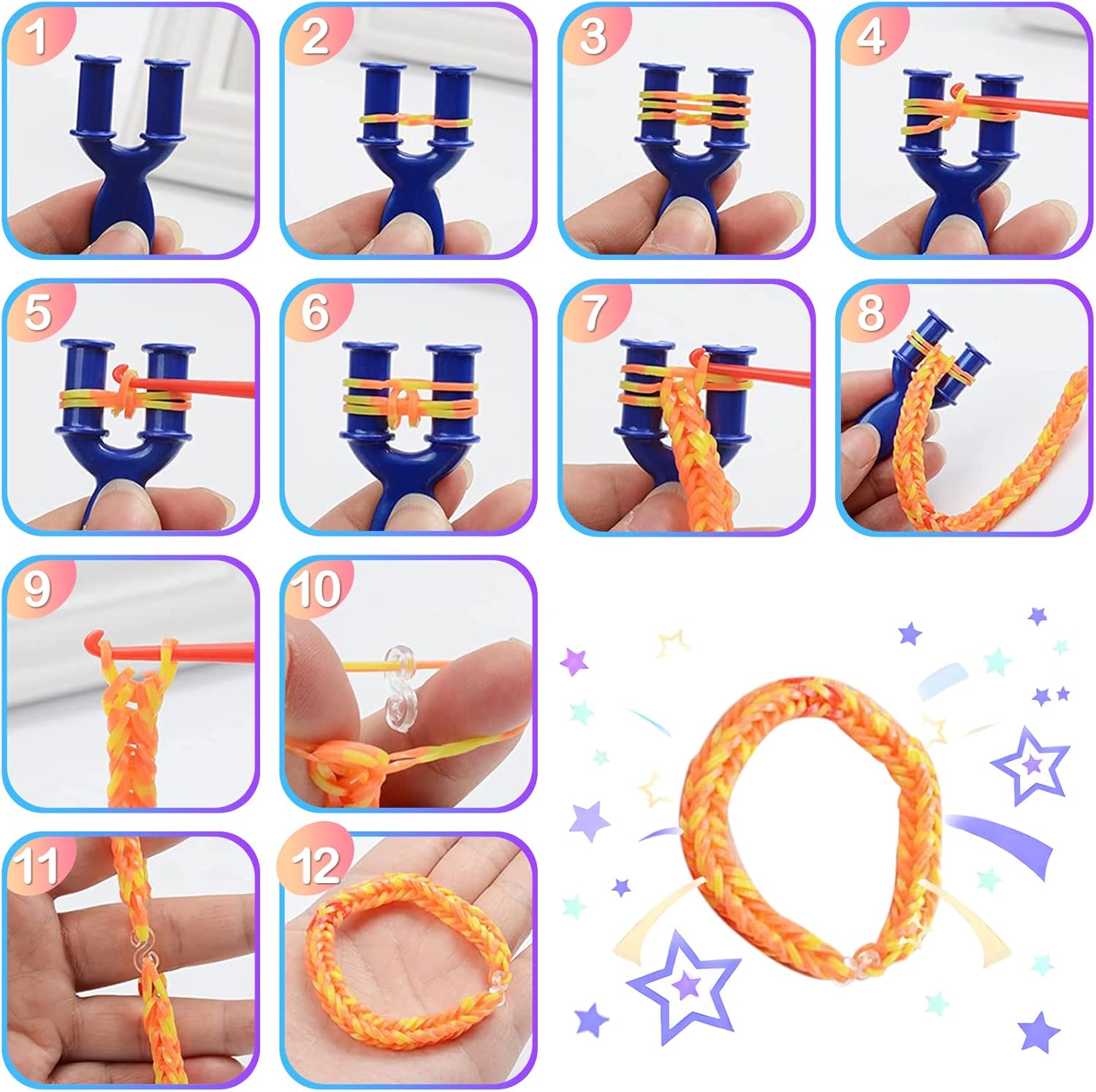 Il kit di braccialetti elastici 3600+ contiene una scatola di immagazzinaggio, 3600+ elastici colorati di alta qualità (più di 36 colori), 40 perline con lettere, 40 perline colorate, 30 perline rotonde colorate, 5 perline di frutta, 5 perline di fiori, 4 frange, 8 frutti. Ciondoli sagomati, 10 graziosi pendenti (casuali), 4 nappe, 6 strumenti a forma di Y, 90 clip a S, 6 uncinetti, 5 ganci colorati, 5 cordini. Materiale di alta qualità. Cinturino in gomma siliconica di alta qualità con buona elasticità. Può essere utilizzato ripetutamente, morbido e resistente e non facile da rompere, garantendo la sicurezza dei bambini. Bellissimi colori, difficili da sbiadire. Sicuro e non aromatizzato. Stimola la creatività Questo kit per realizzare braccialetti con telaio ha una varietà di colori, creerà un sacco di cose divertenti, come braccialetti, collane, fasce per capelli, accessori per borse e molti altri ornamenti, il braccialetto elastico intrecciato può aiutare i tuoi bambini a migliorare la coordinazione occhio-mano, stimolare la loro immaginazione e creatività. Puoi progettare e creare braccialetti di gomma colorati, giocattoli e molto altro ancora! Comodo da riporre Gli elastici e i ciondoli arcobaleno sono ordinatamente conservati in una scatola di plastica trasparente con una griglia da 54. Ogni colore è conservato in uno scomparto separato. Questo rende più facile il riordino e aiuta i bambini a sviluppare l'abitudine di organizzare le proprie cose. Kit per realizzare braccialetti con telaio elastico per ragazze e ragazzi di età 5 6 7 8 9 10 11 12 anni. Elastico per scatola bracciale e bellissimo regalo: I telai sono distribuiti in una scatola di plastica che permette di chiuderli, aprirli e trasportarli. Permette inoltre ai bambini di sviluppare buone abitudini organizzative e questo kit di braccialetti elastici intrecciati per bambini è perfetto per principianti ed esperti fai da te ed è anche un'ottima scelta per un regalo o una festa con gli amici