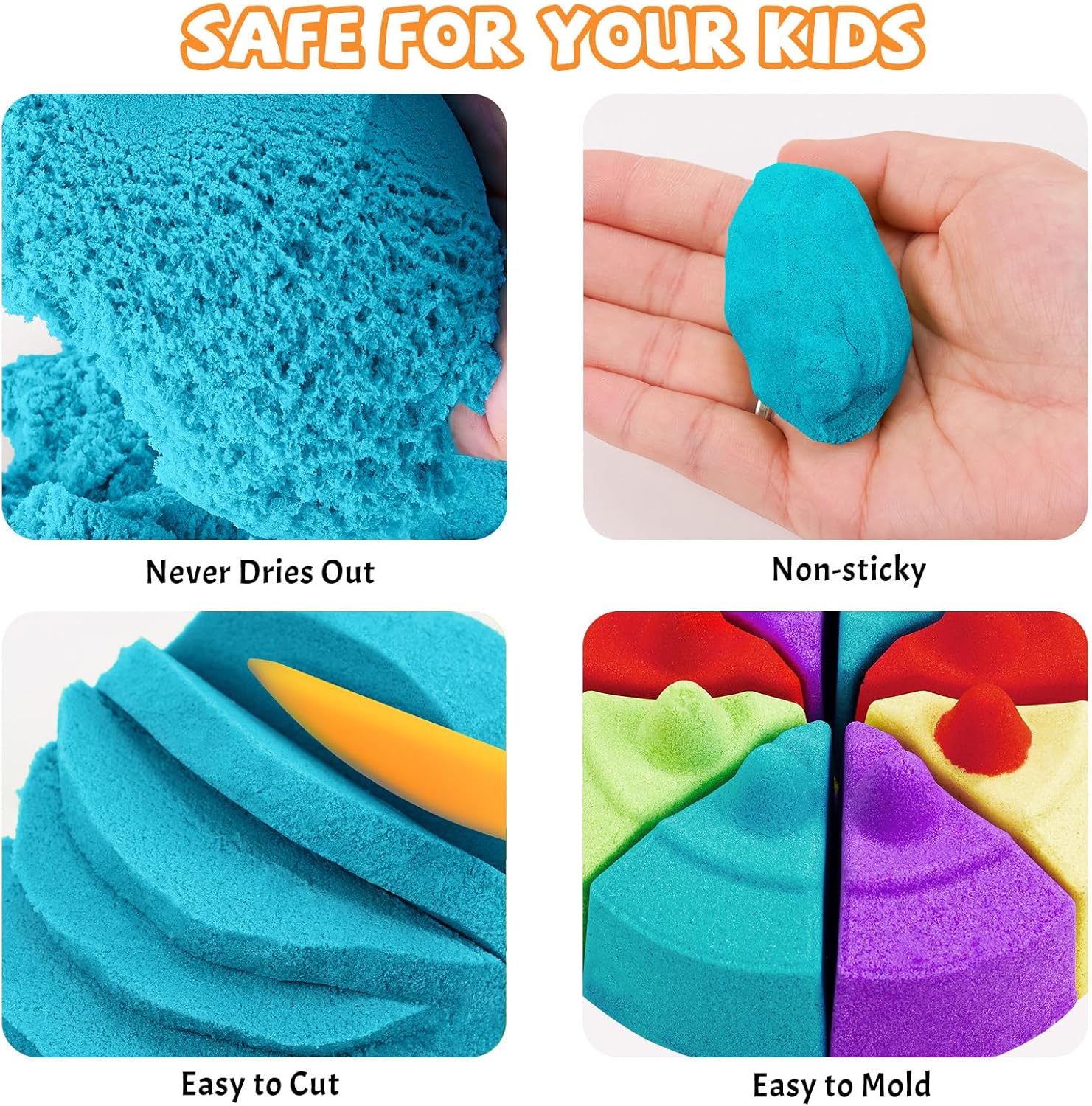 Confezione combinata grande da 2,0,9 kg: per portare gioia infinita ai bambini che non sono mai stanchi di giocare con la sabbia, questa grande confezione include confezioni di ricarica di alta qualità per una varietà di attività creative. Il peso di 1,0 kg garantisce ai bambini molta felicità. Sicura e atossica: la nostra sabbia da gioco è realizzata al 100% con materiali ecologici e atossici, pienamente conforme agli standard di sicurezza dei giocattoli statunitensi, garantendo un gioco sicuro. Composto da sabbia pura al 98% e polimero al 2%, facilita il facile incollaggio della sabbia e ne impedisce l'essiccazione. La sabbia aderisce solo a se stessa, non si attacca alle mani o ai vestiti. Immaginazione e creatività: la sabbia giocattolo è facile da modellare in qualsiasi forma, consentendo ai bambini di usare la loro immaginazione e creatività per creare varie scene giocattolo. Quando giocano con la sabbia, i bambini possono afferrare, pizzicare, impastare e modellarla, che ha un effetto calmante, aiutando ad alleviare lo stress, sviluppare la coordinazione occhio-mano, migliorare la forza e migliorare la destrezza delle dita. È un giocattolo perfetto per aumentare la giocosità dei bambini e stimolare la loro immaginazione e abilità pratiche. Più divertimento, meno disordine: la sabbia giocattolo è confezionata singolarmente in sacchetti robusti per un uso comodo e una conservazione ordinata. Ha la consistenza e la fluidità della sabbia normale, insieme alla sensazione di sabbia umida della spiaggia. Si allunga come melma ma si modella come sabbia. Si attacca bene ed è più facile da maneggiare, creando molto meno disordine rispetto alla normale sabbia quando si gioca. Regalo perfetto per i bambini: trascorri ore a giocare con i tuoi bambini o tenerli occupati per lunghi periodi con queste morbide sabbie, giocando insieme ai loro amici. Aiuta i tuoi bambini a portare tutta la spiaggia a casa! Questo è un fantastico regalo per compleanni, Natale, Ringraziamento, feste, vacanze e altre occasioni speciali per i bambini.
