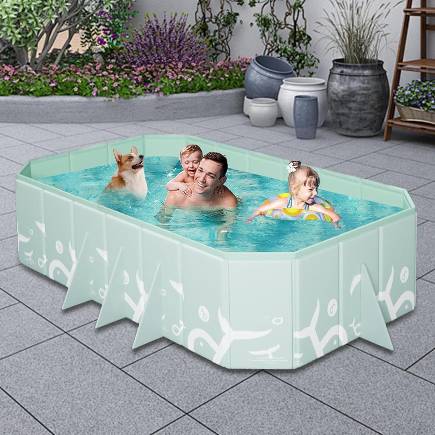 Comodità portatile: preparati a divertirti in acqua con questo pieghevole non gonfiabile. È facile da installare, trasportare e conservare, offrendo un'esperienza di nuoto sicura senza bisogno di gonfiarlo. Drenaggio rapido: costruito con materiale composito a 5 strati e dotato di fori di drenaggio rapido sul fondo e sui lati, il nostro robusto rettangolare pieghevole offre un drenaggio rapido e facile. Il suo design ultra resistente e ispessito offre una durata che resiste a forature o usura, garantendo divertimento e relax durature. Supporto strutturale migliorato: sfruttando un design di fissaggio triangolare a L di ultima generazione, il nostro pieghevole non gonfiabile è dotato di doppio fissaggio con supporto triangolare e piastre di rinforzo composite, garantendo stabilità e resistenza sicure. Ampio utilizzo: perfetto per cortile o giardino, questo pieghevole non gonfiabile è progettato per bambini, ragazze, adulti o famiglie e può essere utilizzato all'aperto o al chiuso come per cani e animali domestici. Divertiti con un tuffo: trascorri del tempo con la persona amata e i tuoi amici pelosi nel nostro pieghevole non gonfiabile. È una buona oasi estiva per gli adulti per rilassarsi e immergersi mentre i bambini giocano e si rinfrescano sotto il sole.