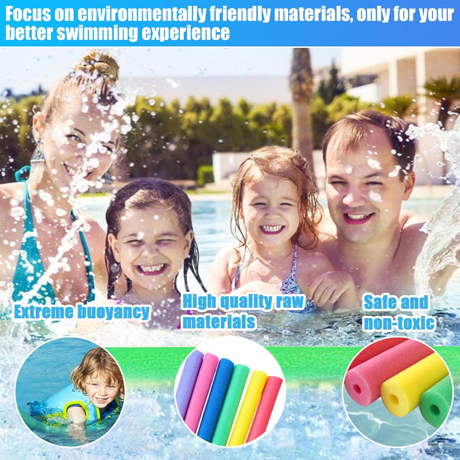 Fumo EPE: i nostri noodles in piscina sono realizzati con schiuma di EPE di qualità, sicura e morbida..Questo materiale garantisce la durata e la longevità, fornendo infinite ore di divertimento idrico per i bambini e gli adulti. Dimensioni generose: ogni noodle in schiuma misura 59 pollici di lunghezza, offrendo ampio supporto e galleggiamento per nuotatori di tutte le età..Che tu stia galleggiando, schizzi o giochi, questi noodles sono perfetti per una varietà di attività idriche. Forte galleggiabilità: progettati per una forte galleggiabilità, questi noodles da nuoto ti tengono a galla con facilità..Ideale per lezioni di nuoto, aerobica d'acqua o semplicemente rilassarsi in piscina, forniscono supporto e comfort affidabili. Impermeabili e leggeri: questi noodles da nuoto sono impermeabili, assicurando che non assorbano l'acqua o diventino pesanti..Il loro design leggero li rende facili da maneggiare e trasportare, perfetti da prendere in piscina, spiaggia o lago. Giocattoli divertenti versatili: ottimo per il semplice nuoto, questi noodles per piscine possono essere usati come giocattoli divertenti, forniture idriche o accessori per bambini..I loro colori vivaci e il design versatile li rendono uno dei preferiti per i bambini e uno strumento utile per gli adulti.