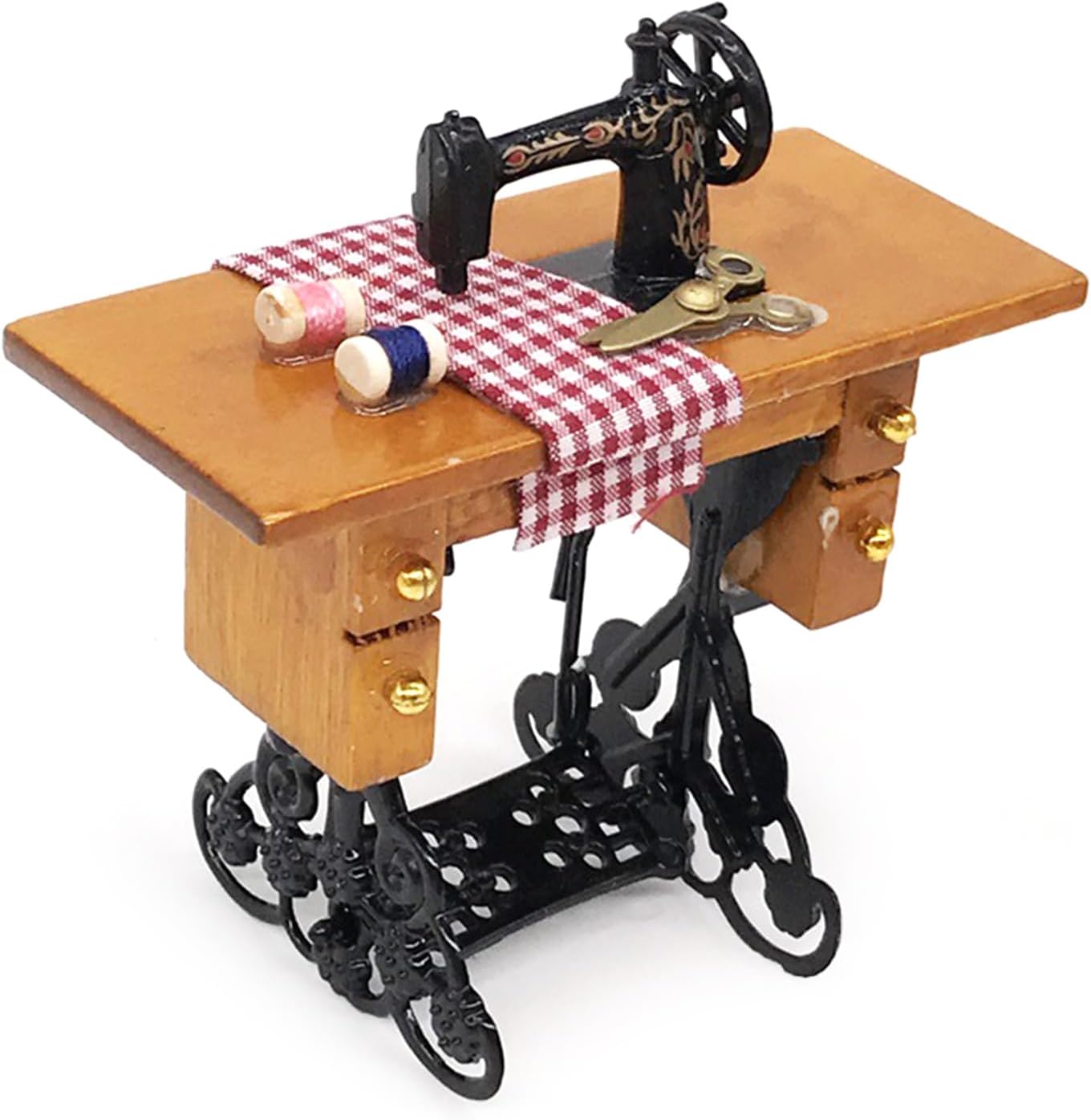 Modello di macchina da cucire elaborato e vintage, compatto, alto grado di riduzione, materiali accuratamente selezionati non sono facili da deformare. Ottima aggiunta alle tue case delle bambole Un modello giocattolo, non una vera macchina da cucire L'eccellente modello di aspetto è molto vicino alla realtà. Ottimi oggetti di scena fotografici Materiali in legno, questo fonografo è visivamente accattivante È molto divertente a chi piace il fai da te e i decoratori di case delle bambole