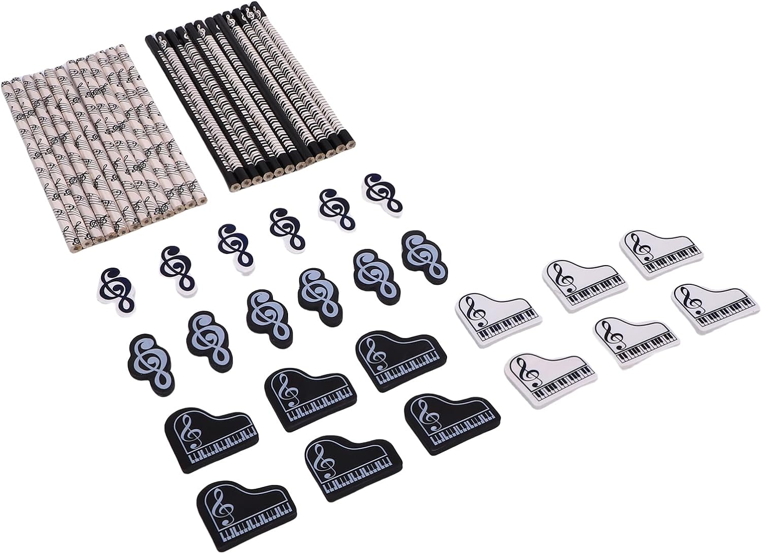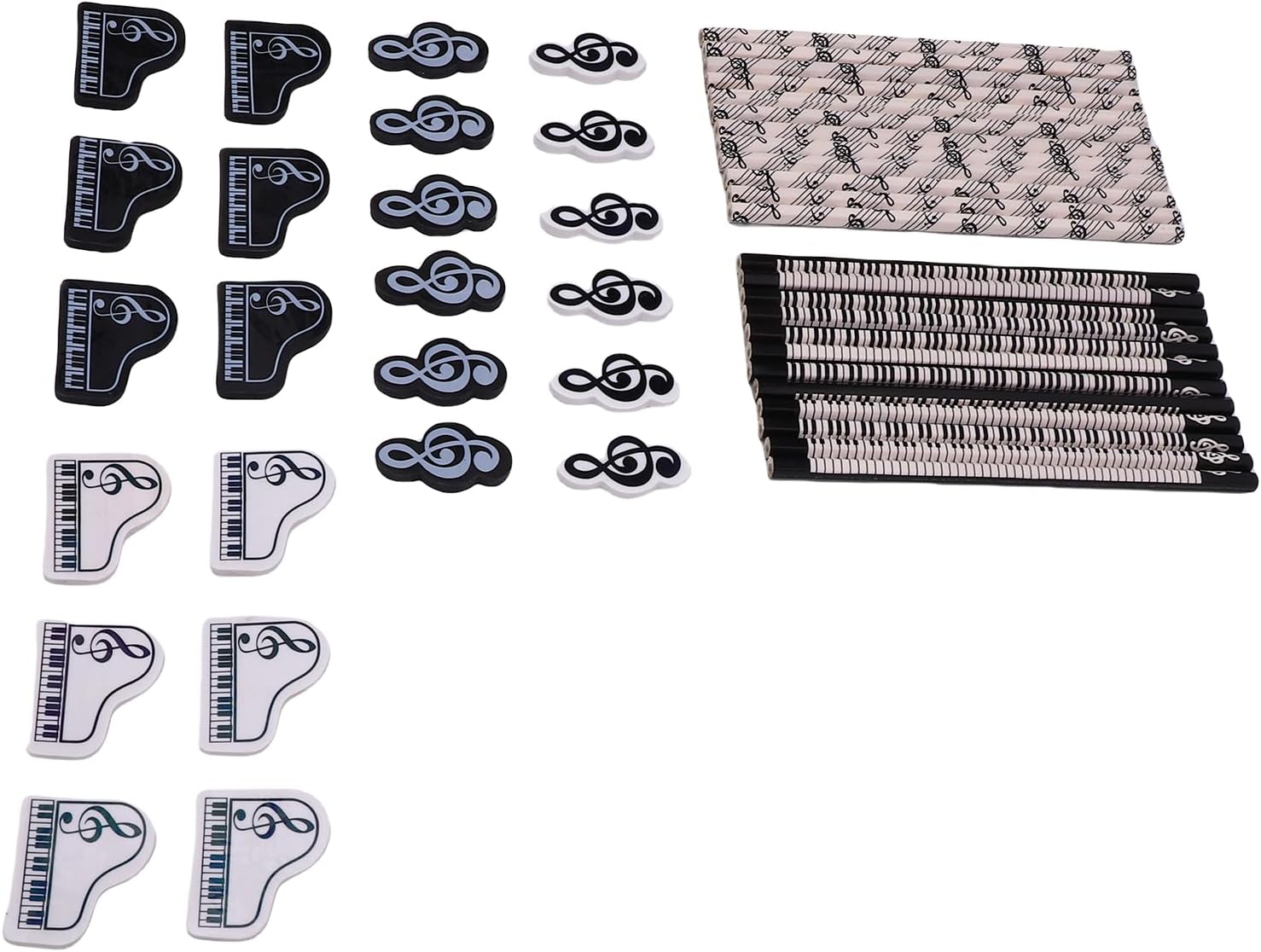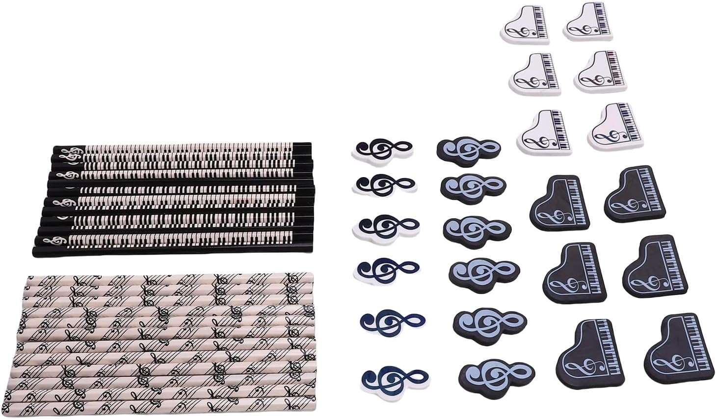 [Accattivante tema musicale] Design in bianco e che evidenzia note musicali e motivi per la tastiera per pianoforte per un'esperienza di scrittura unica. [Design comodo] La forma esagonale fornisce una presa confortevole, impedisce il rotolamento e garantisce prestazioni di scrittura fluide. [Materiali premium] Realizzato in legno e gomma premium per un'esperienza di cancellazione di alta qualità e pulita. [Uso versatile] Ideale per appassionati di musica, studenti e artisti come un oggetto da collezione presente o unico, per l'uso scolastico e domestico. [Ampia varietà] comprende 24 matite in due stili e 24 gomme in stili, soddisfacenti a diverse esigenze di scrittura e cancellazione.