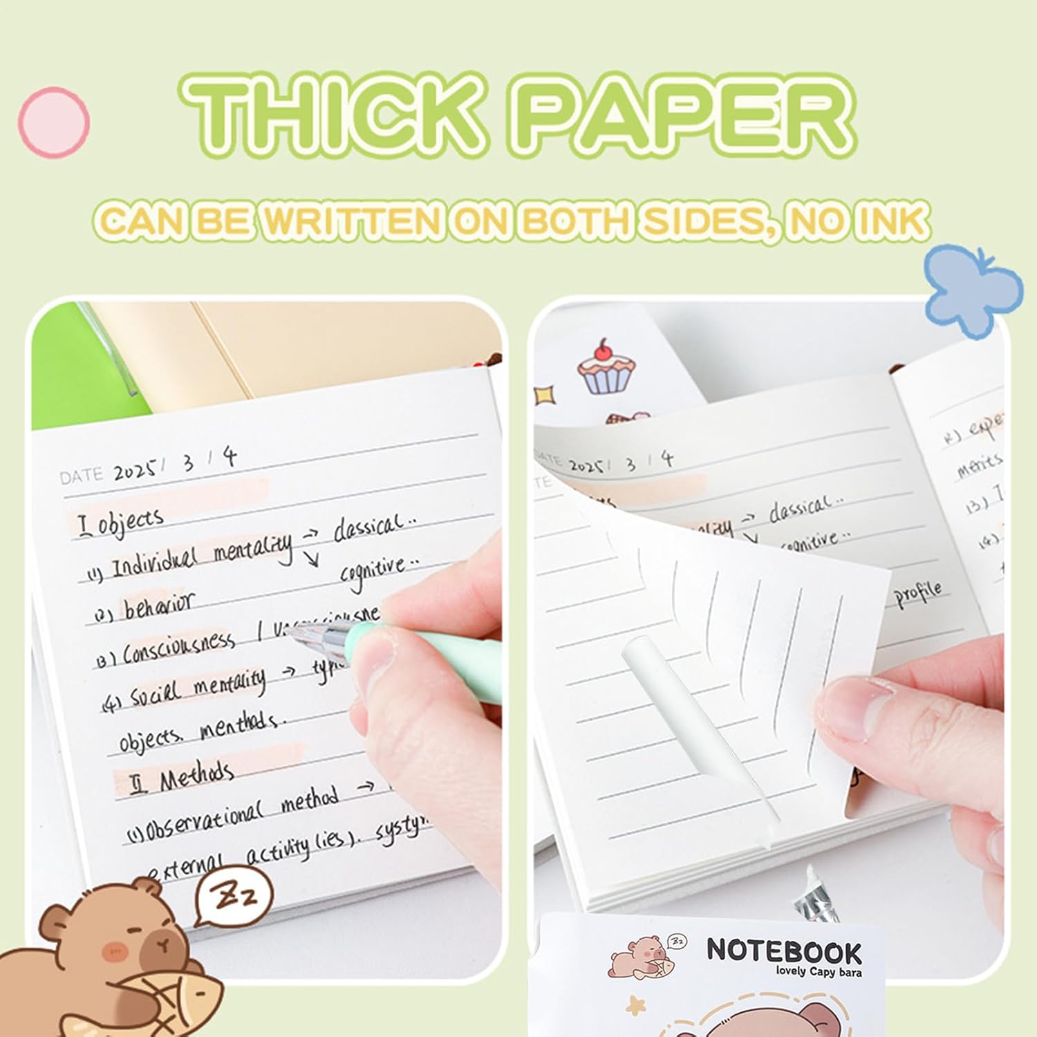 Notebook multifunzionale: migliora la tua esperienza di journaling con questo notebook adattabile che combina capacità di pianificazione e disegno, rendendolo un elemento di cancelleria essenziale. Il taccuino Capybara è appositamente progettato per supportare la tua routine quotidiana e promuovere la tua espressione creativa. La sua versatilità ti consente di strutturare le tue idee godendo della libertà creativa. Uno strumento pratico per chiunque desideri il suo esterno robusto per protezione e stile: l'esterno robusto del taccuino Capybara protegge i tuoi appunti e combina un design elegante con pagine interne di alta qualità e inodore realizzate in materiale sicuro. Offre un utilizzo sicuro senza odori sgradevoli ed è ideale per l'uso quotidiano pur mantenendo durata e affidabilità. L'esterno moderno lo rende un compagno attraente per la scuola, l'ufficio o il tempo libero. Compatibilità con strumenti versatili: fornisce un'esperienza di scrittura fluida e confortevole, compatibile con una varietà di strumenti di scrittura ed è ideale per appunti di diario quotidiano e attività creative. Consente di catturare le tue idee senza sforzo e rende piacevole lavorare con diverse penne. Design compatto e portatile: con le sue dimensioni compatte, questo taccuino offre una soluzione facile da trasportare e riporre. È la scelta ideale per chiunque abbia bisogno di uno strumento di scrittura adatto ai viaggi. Perfetto per prendere appunti in movimento, ti supporterà in tutti i tuoi compiti scritti. In treno, al parco o in ufficio, questo taccuino è sempre a portata di mano. Il suo design accurato lo rende un'aggiunta pratica alla tua attrezzatura quotidiana. Scelta regalo che segue il pensiero: un taccuino Capybara progettato con cura che combina praticità ed eleganza, sorprendendo e deliziando amiche o familiari e distinguendosi come un'ottima opzione regalo in occasioni speciali. Ideale per le donne che apprezzano lo stile e la funzionalità, il taccuino offre un'aggiunta affascinante a qualsiasi momento di scambio di regali. È perfetto per compleanni, vacanze o semplicemente come un bel gesto di apprezzamento
