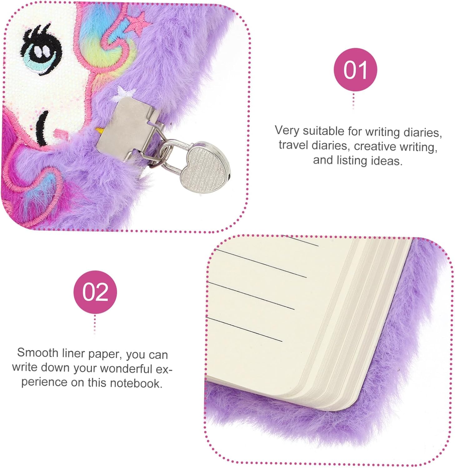 Il è comodo da portare con sé ovunque, a scuola, in viaggio o per l'uso quotidiano, diario dei cartoni animati, grazioso Copertina vivace e colorata: il design vivace del incoraggia i a esprimere liberamente la loro creatività e immaginazione, diario con unicorno sfocato, diario con lucchetto per ragazze Materiale sicuro: realizzato in carta e materiale peluche, questo è ideale per i da maneggiare e utilizzare quotidianamente, soffice diario, diario dei cartoni animati Copertina unicorno accattivante: l'affascinante design dell'unicorno sulla copertina attirerà e delizierà sicuramente le ragazze, rendendolo un accessorio preferito, grazioso diario, diario Meccanismo di blocco sicuro: la funzione di blocco garantisce che i diari e gli appunti dei siano tenuti privati e al sicuro da occhi indiscreti, diario multifunzione, diario unicorno