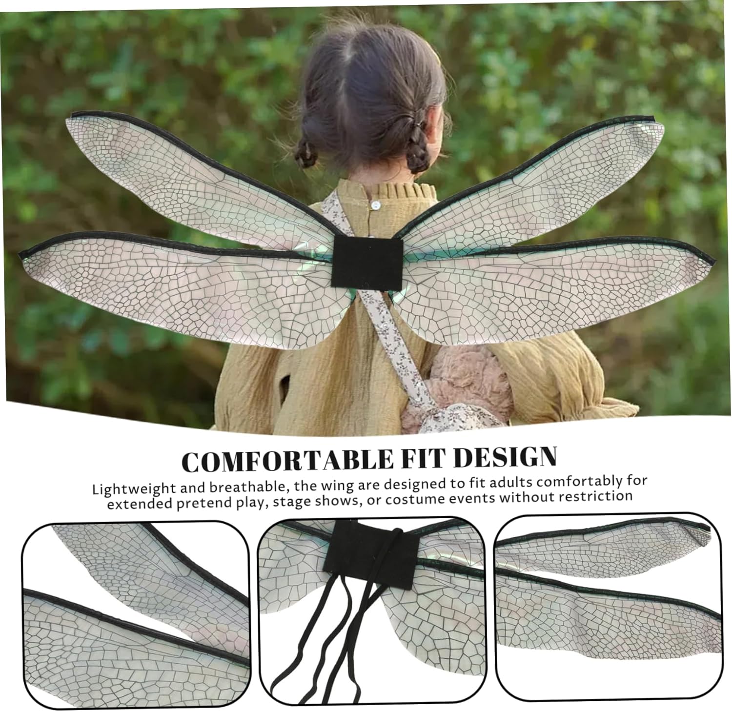 Ali di libellula realistiche: realizzate con materiali di alta qualità, queste ali di libellula offrono un aspetto realistico e vivaci dettagli neri, perfette per valorizzare qualsiasi costume da libellula o set di ali di insetto. Utilizzo versatile: ideali per una varietà di occasioni, tra cui spettacoli teatrali, costumi per bambini, feste di Halloween e cosplay, rendendole un'aggiunta versatile alla tua collezione di costumi. Design confortevole: leggere e traspiranti, le ali sono progettate per adattarsi comodamente agli adulti per giochi di finzione prolungati, spettacoli teatrali o eventi in costume senza restrizioni. Affidabile e riutilizzabile: realizzate con materiali in tessuto che resistono a ripetuti utilizzo, questi accessori per costumi con ali di libellula mantengono la loro forma e qualità nel tempo, garantendo divertimento. Facile da indossare e regolare: dotato di spalline regolabili per una vestibilità sicura e personalizzabile, che consente una vestizione rapida e senza problemi per il gioco casual e le esibizioni professionali