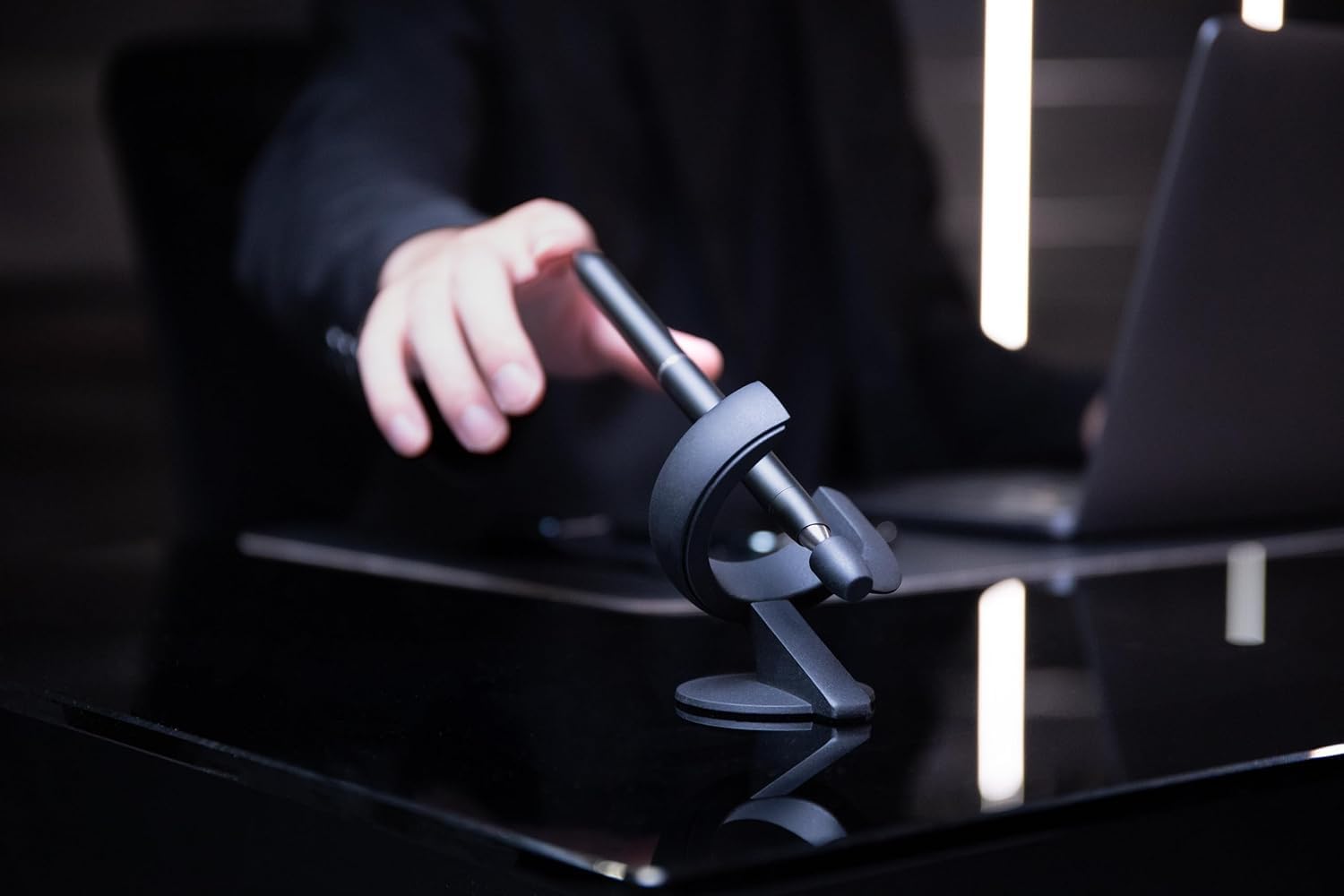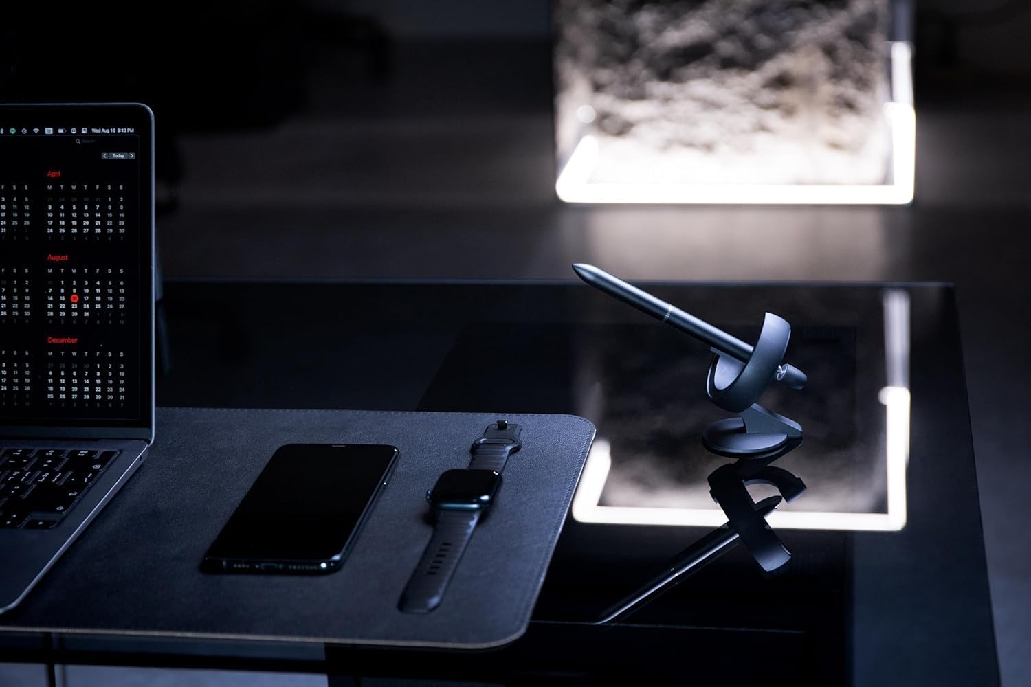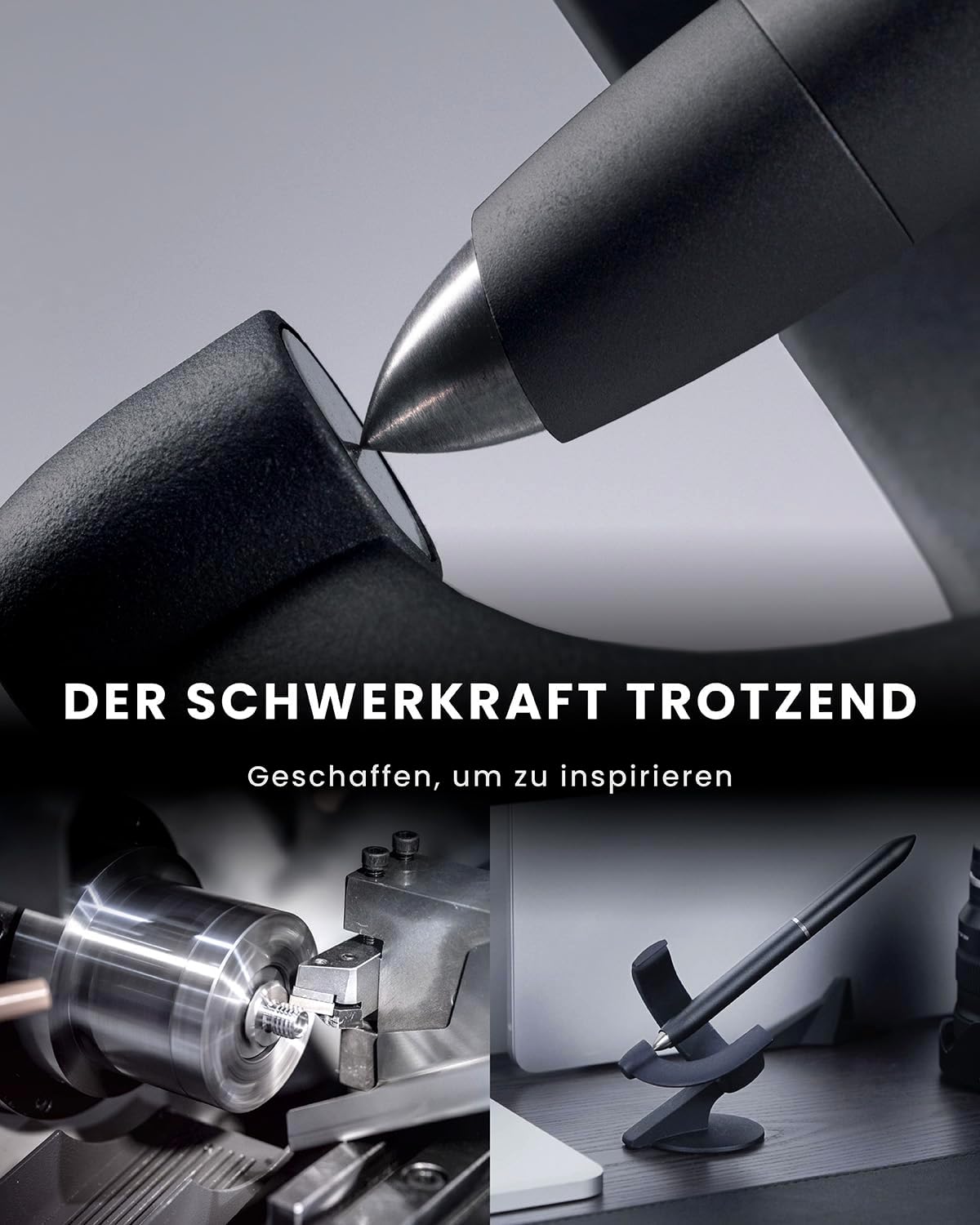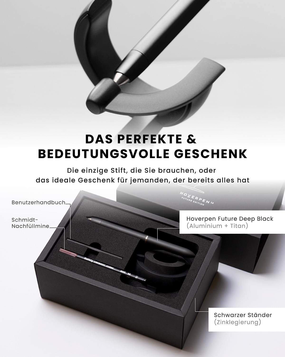 Design fluttuante: l'Hoverpen Future resta in equilibrio su un supporto inclinato con precisione e sfida la gravità. Un eye-catcher unico per la tua scrivania. Due strumenti di scrittura in uno: passa facilmente dalla penna stilografica al roller per la massima versatilità e una scrittura personalizzata. Il primo roller galleggiante al mondo: scopri l'iconico design fluttuante di Novium, combinato con ricariche Schmidt di alta qualità per un'esperienza di scrittura fluida e affidabile. Un regalo straordinario: l'Hoverpen Future poggia su un supporto inclinato per una manipolazione delicata e fluida. Un regalo che unisce innovazione, design ed eleganza. Perfetto per Natale o qualsiasi occasione speciale. Pronto per scrivere: dotato di una ricarica per roller Schmidt 888 preinstallata in nero (F) e fornita con una ricarica blu aggiuntiva (F) per un'esperienza di scrittura fluida ed elegante.
