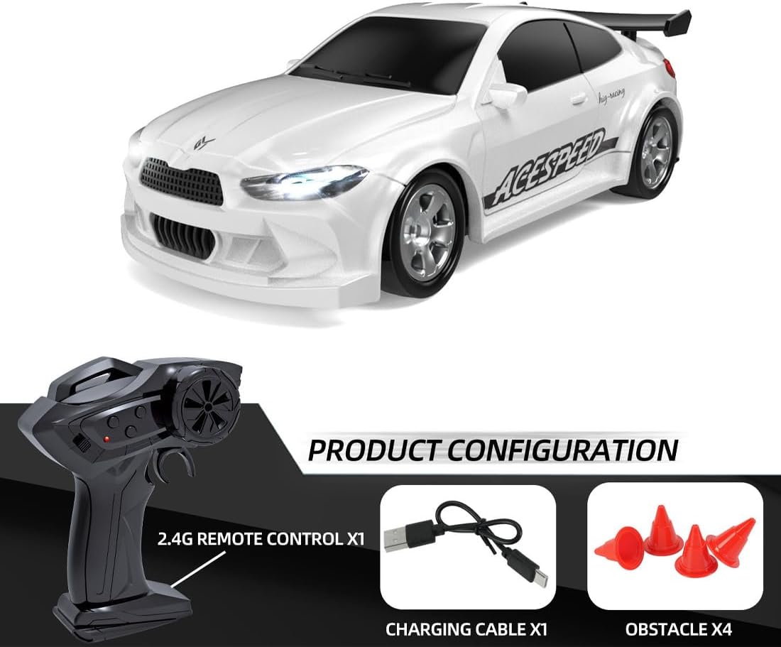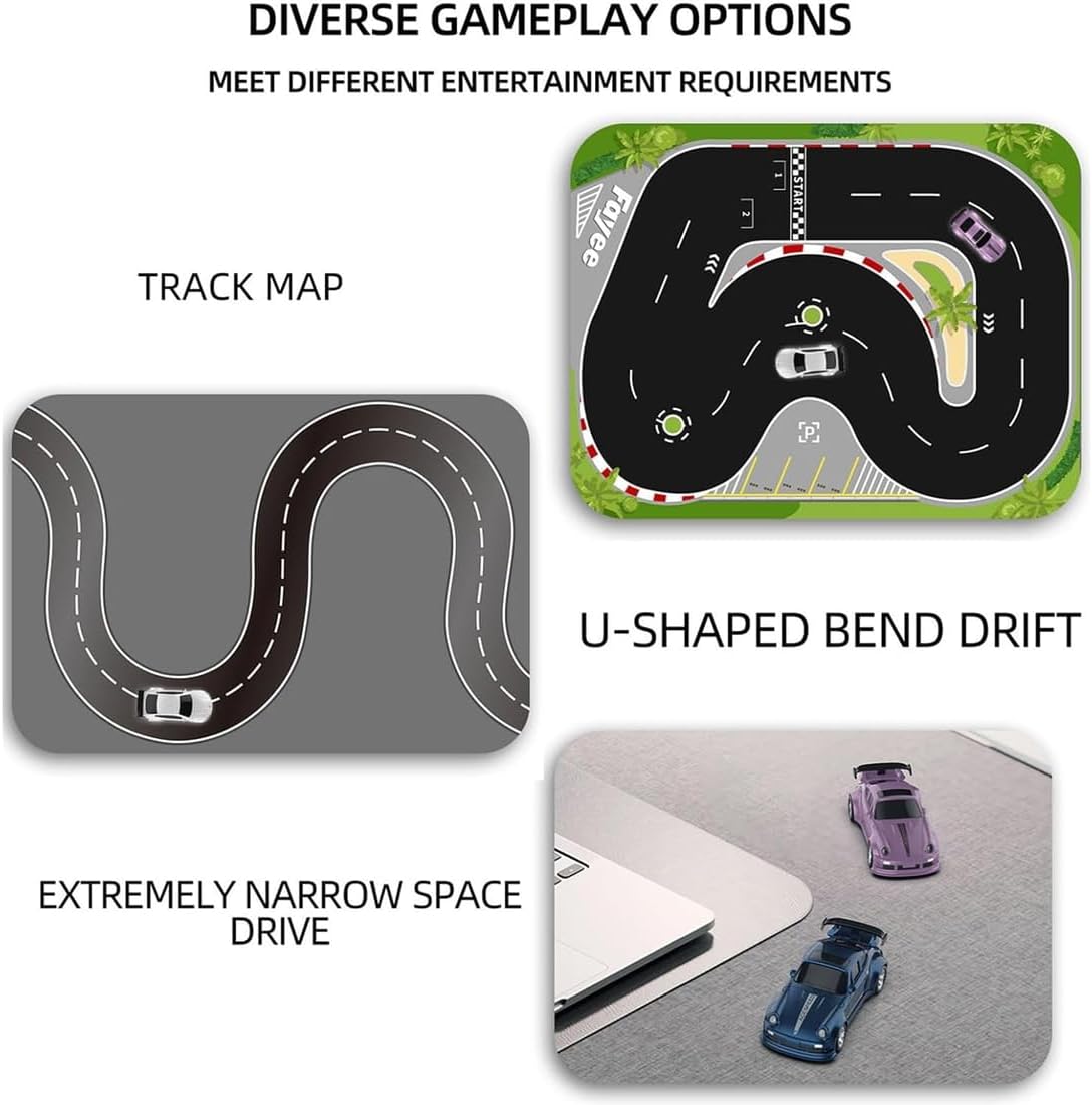 Mini auto drifting ad alta velocità in scala 1:64: questa auto compatta 4 WD RC raggiunge i 15 km/h ed è azionata da un motore magnetico a tazza cava da 612, che offre un controllo rapido e delicato in un design di dimensioni palmo. Valvola a farfalla proporzionale ed effetti luminosi: goditi un controllo preciso con valvola a farfalla proporzionale anteriore/posteriore e guida sinistra/destra. Con fari funzionanti, luci posteriori e illuminazione sottoscocca per una gara notturna realistica. Portata remota di 25-30 metri: con un controller reattivo da 2,4 GHz e una portata fino a 30 metri, puoi goderti gare senza interferenze, sia all'interno che all'esterno. Funziona con 2 batterie AA (non incluse). Batteria ricaricabile tramite USB: dotata di una batteria integrata da 3,7 V 100 mAh, questa auto da deriva si ricarica tramite USB in soli 25 minuti e offre 20 minuti di gioco continuo e potente per sessione. Gioco di sfida alla deriva: ogni unità contiene accessori divertenti come barili di bloccaggio, per simulare ostacoli alla deriva. Un regalo perfetto per adolescenti o appassionati di RC che amano le prestazioni compatte.
