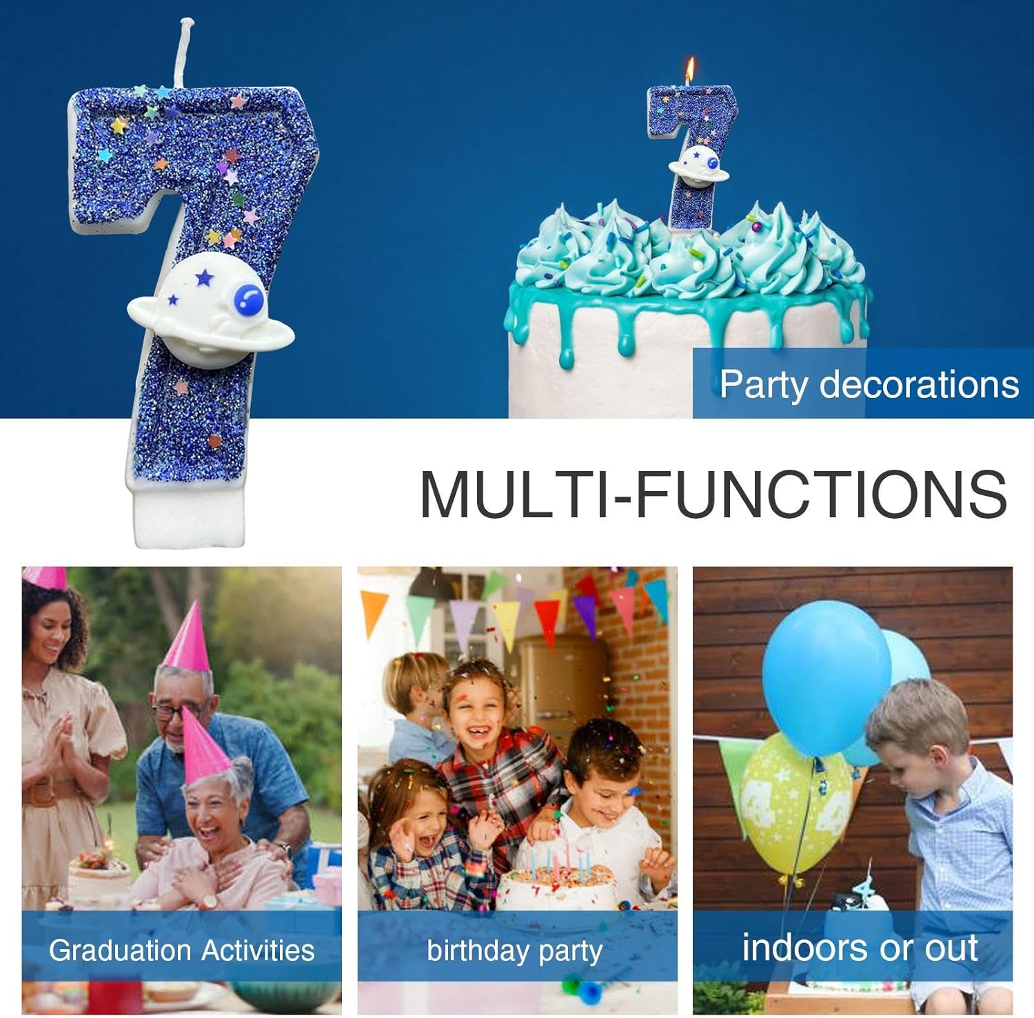 Design accattivante: la luce blu brillante di questa candela con numero di compleanno crea un effetto sorprendente istantaneo, mentre il suo design brillante aggiunge un tocco unico di divertimento per le celebrazioni di compleanno. Rendi i tuoi amici e il giorno della famiglia ancora più speciale con questa candela in primo piano Candele numeriche: completa la decorazione del tuo partito con queste incantevoli candele a cifre. Il set è disponibile in tutti i numeri da 0 a 9, fornendo maggiori possibilità di età. Candele a tema spaziale unico: trasformare una torta regolare in un universo mistico con questa candela con numero di compleanno del pianeta blu spaziale. Aggiunge un tocco di fantasia mozzafiato, rendendo la celebrazione più affascinante e indimenticabile Sicuro per gli utenti: il fondo della candela è progettato saldamente, il che facilita l'inserimento nella torta, assicurando che non si inclini o cada, fornendo più sicurezza per le celebrazioni e che sia sicuro per i bambini da usare Progettato per le feste: ideale per una festa a tema spaziale per i bambini, parte dell'intera decorazione della festa o un'aggiunta romantica a una festa per adulti, non il momento clou della torta di compleanno