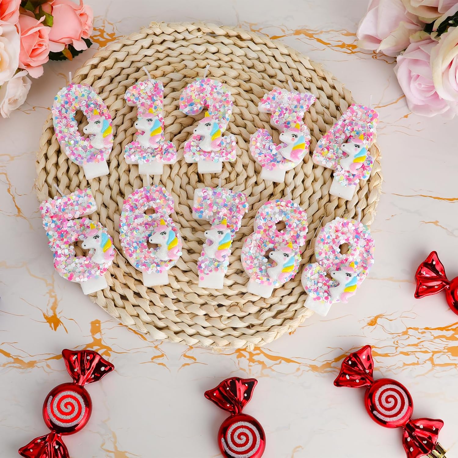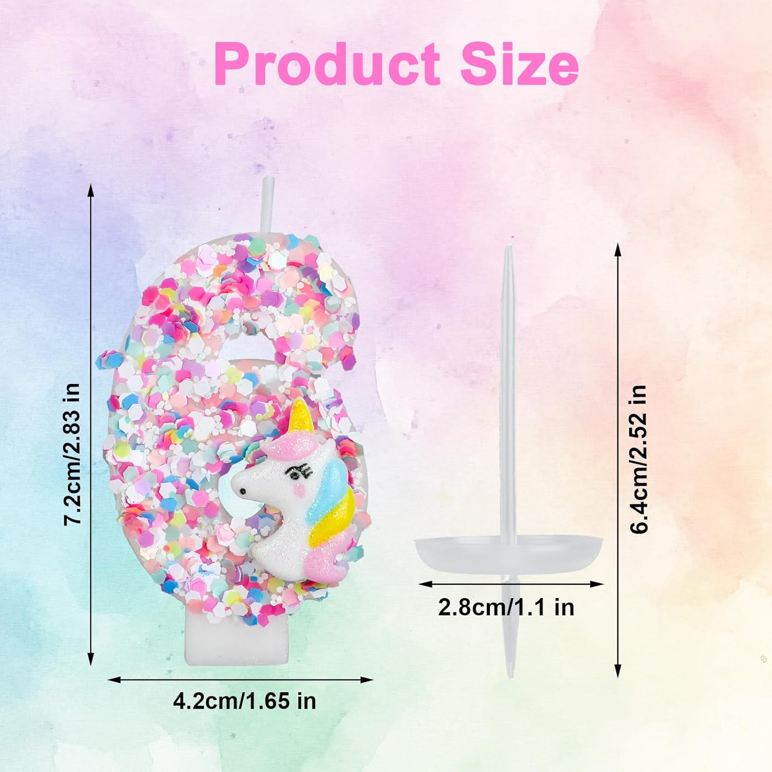 Contenuto della confezione: Riceverai 1 candela con numero di compleanno per unicorno, fornita con una base e un bastoncino di supporto con colori vivaci e sognanti che aggiungono un tocco giocoso e romantico alla tua torta. Materiale affidabile: il nostro candeliere di compleanno è realizzato di buona qualità, affidabile e durevole e può bruciare per ultimo e in modo uniforme, chiaro e luminoso, portando una luce calda alle tue feste. Design dettagliato: la nostra candela con numero di torta presenta un tema unicorno ed è decorata con paillettes colorate, che sembrano scintillanti e attraenti. Aggiungerà molto divertimento alla tua festa. Tocco personalizzato: con questa candela numerata puoi personalizzare facilmente la tua torta. Aggiungi un tocco romantico a compleanni o eventi speciali. Utilizzo versatile: questa candela con unicorno può essere utilizzata in diverse occasioni, come ad esempio: