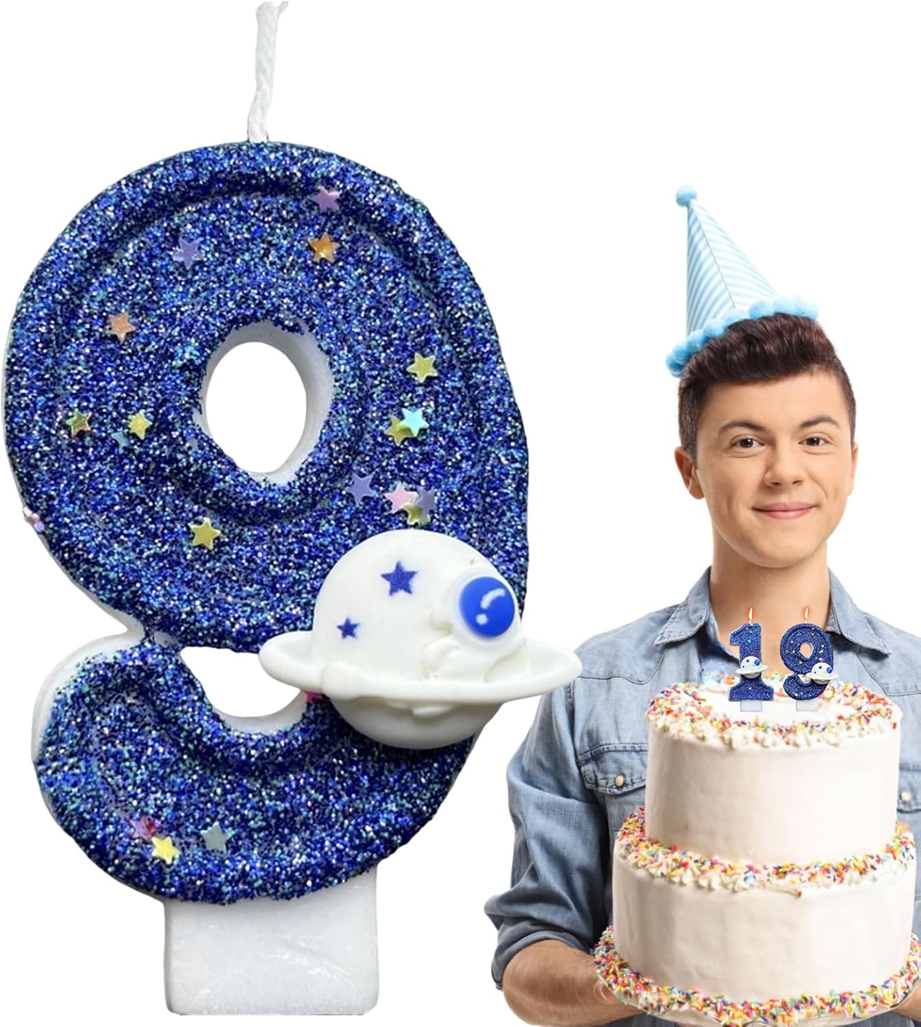 Candela della torta glitter blu: aggiungendo il tocco a qualsiasi torta di compleanno, questa candela blu con scintille abbaglianti che gli conferiscono un fascino unico e accattivante Digita della serie completa: la serie completa di candele per cifre è disponibile, da 0 a 9 fornisce e può fornire più combinazioni di età per decorare qualsiasi celebrazione. Completa il tuo arredamento a tema Space Theme: questo numero di compleanno Blue Space Planet Design Aggiunge un tocco di fantasia a una tradizionale festa di compleanno, creando un bellissimo paesaggio sulla torta e rendendo le feste di compleanno più memorabili Sicuro per gli utenti: il fondo della candela è saldamente progettato, rendendo facile da inserire nella torta, assicurando che non si slancia o cada, fornendo più sicurezza per le celebrazioni e rendendo sicuro per i bambini da usare Ottimo per le feste: crea una celebrazione fuori dal mondo con questa candela di numero di compleanno a tema spazio. per le feste spaziali per bambini o un'aggiunta romantica per eventi per adulti. Può essere usato come fulcro o come parte 'arredamento del tuo partito