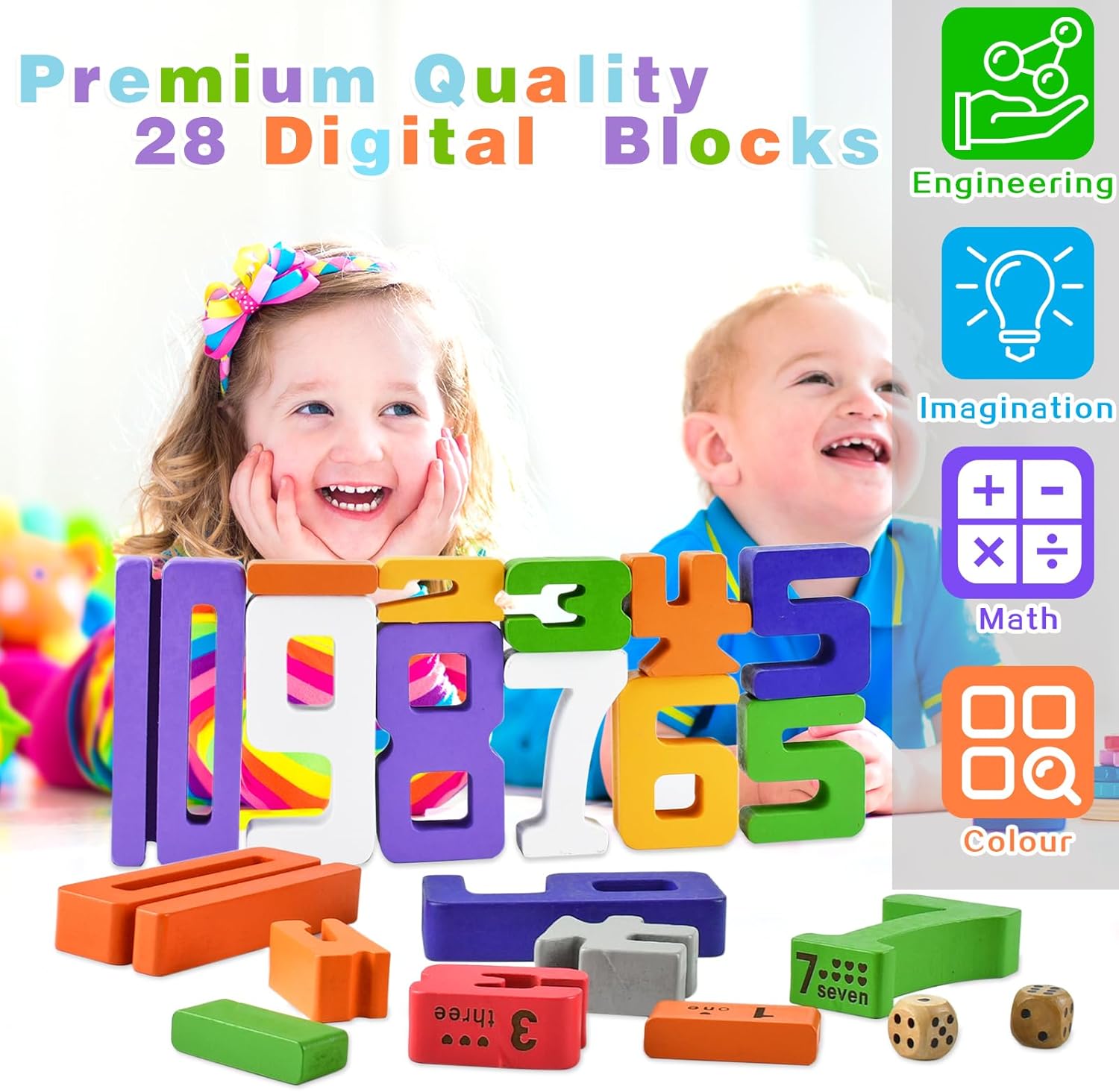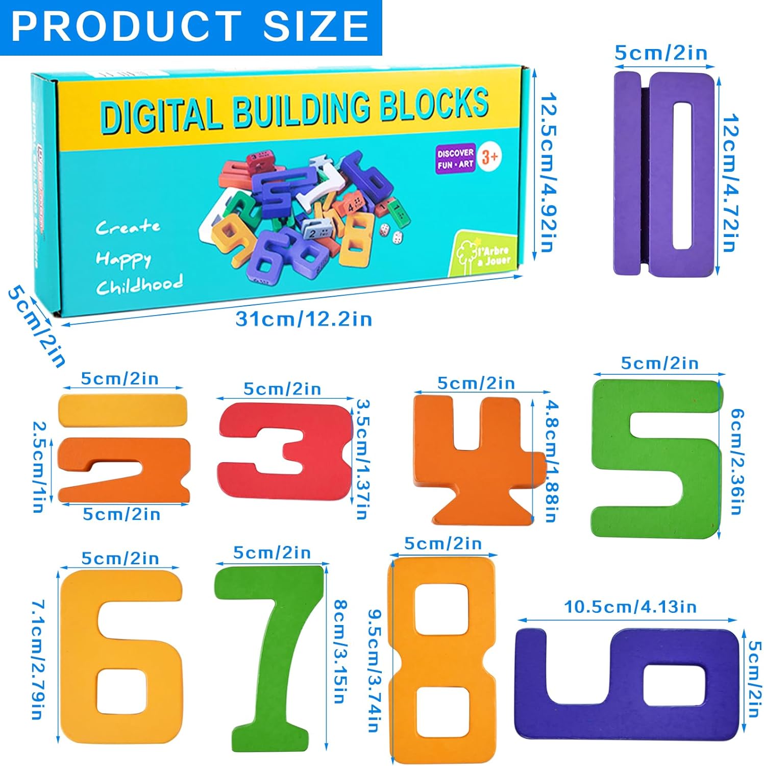 【Set di giocattoli in mattoncini numerati】: riceverai 2 set di numeri in legno in diversi colori, ogni set è composto da 14 blocchi numerati, 28 numeri in legno in totale e un libretto con diverse opzioni di gioco. 【Numeri in legno】: questo colorato giocattolo con numeri in legno offre una varietà di opzioni di gioco per intrattenere il tuo bambino. Le operazioni sui numeri possono aiutare i bambini a completare le operazioni matematiche fino a 10, migliorare i concetti matematici di base dei bambini e promuovere concetti cognitivi di numeri e quantità. Grandi numeri di legno nel gioco di costruzione, puoi costruire con i tuoi figli, goderti l'interazione genitore-figlio e offrire una meravigliosa compagnia ai tuoi figli. 【Numeri in legno】: l'elemento costitutivo numerato matematico è colorato e migliora la consapevolezza dei bambini su colori, numeri e forme. Con il puzzle digitale in legno, i bambini possono sviluppare le loro capacità di equilibrio e coordinazione occhio-mano e allenare la loro pazienza e concentrazione. Stimolare il pensiero spaziale dei bambini attraverso l'immaginazione. 【Blocco numerato】: questi blocchi di legno per l'apprendimento della matematica non solo aiutano i bambini ad apprendere le operazioni matematiche, ma allenano anche la memoria e l'equilibrio dei bambini. La matematica dei mattoncini migliora le tue capacità motorie, la creatività e l'immaginazione. Il conteggio Montessori è un ottimo giocattolo per divertirsi e imparare. 【Giocattolo con numeri in legno】: numeri impilabili in legno di alta qualità. I componenti della bilancia digitale non hanno sbavature e bordi lisci, che non danneggeranno le manine dei più piccoli. Inoltre sono di piccole dimensioni e possono essere afferrati facilmente dalle mani dei più piccoli.