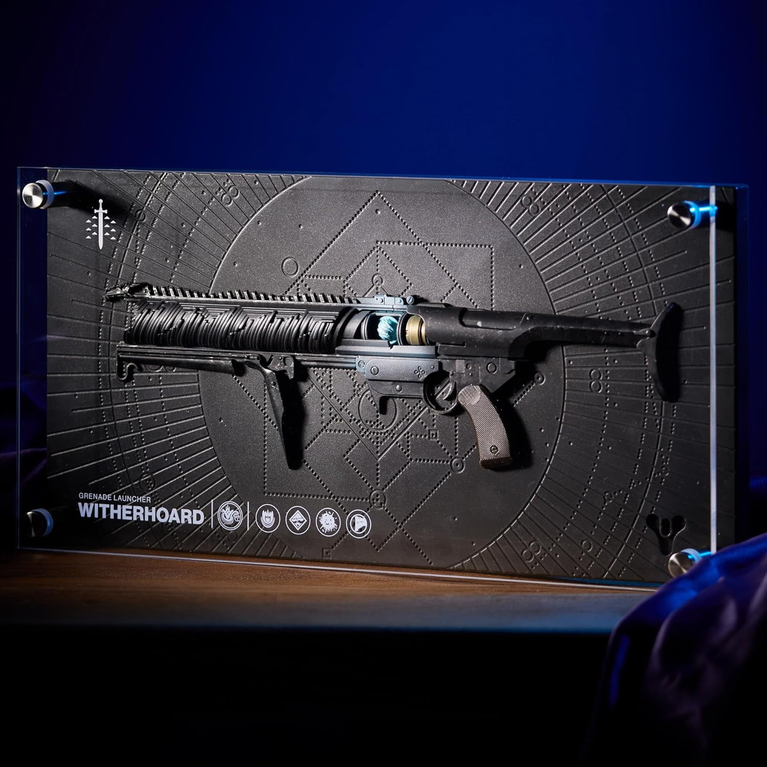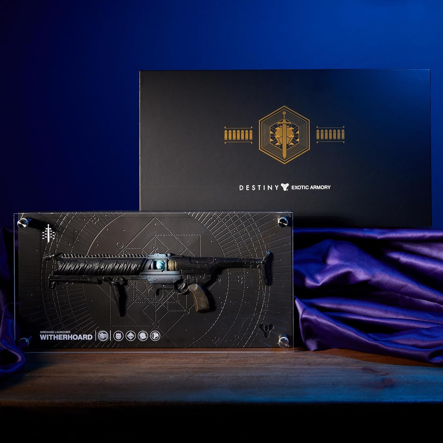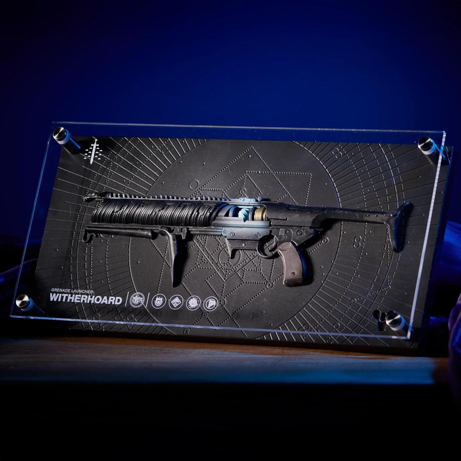 Scatena il potere della corruzione con questa straordinaria placca decorativa della Witherhoard dalla collezione Exotic Armory Introdotta nella Stagione degli Arrivi, questa replica rende omaggio al lanciagranate infuso di Tenebra, celebre per le sue capacità devastanti Replica premium con dettagli scolpiti e fedeli al design in-game, per catturare al meglio l’estetica inquietante dell’arma Una dimostrazione di artigianato eccezionale che rende la Witherhoard un elemento di spicco in ogni collezione Aggiungila oggi alla tua collezione e lascia che il potere dei Taken permei il tuo spazio espositivo