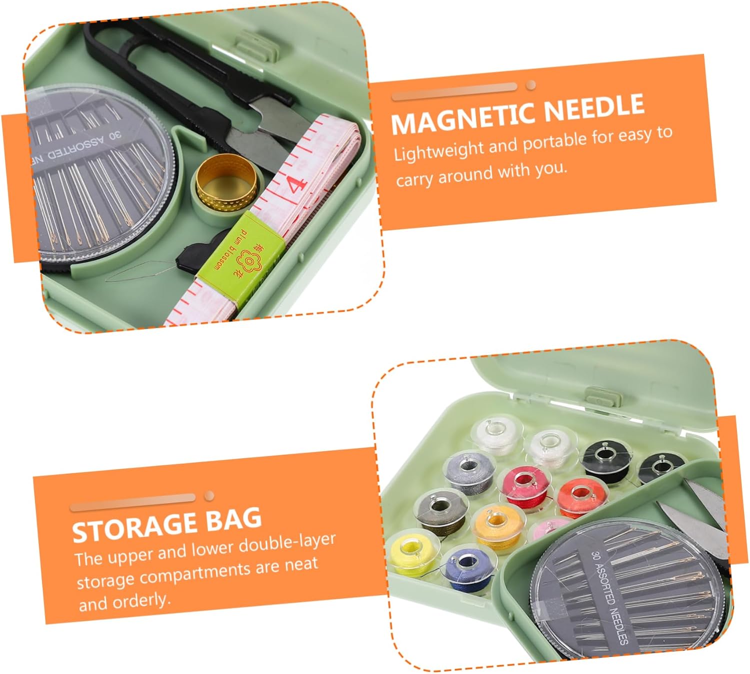 Kit trapuntatura: piccolo e compatto, facile da riporre, non occupa spazio, kit di strumenti per cucire Forniture per cucitura a mano: i vani a doppio superiore e inferiore sono puliti e ordinati, kit infila ago per ditale Kit da cucito: facile da trasportare e spostare, comodo e pratico, cucito portatile Kit di ricamo professionale: design a doppio , posizionamento classificato, gli articoli sono posizionati in modo ordinato e non caotico, kit di ricamo Kit trapuntatura di emergenza: contiene quasi tutti gli accessori di cui potresti aver bisogno durante la cucitura e la riparazione, strumenti per cucire domestici