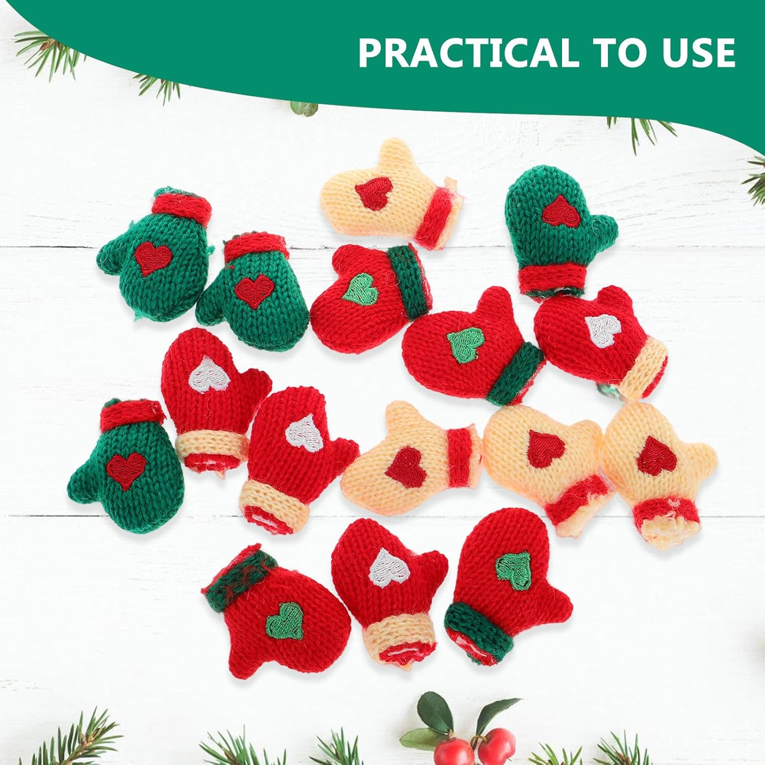 Opzioni di colore versatili: con vari colori tra cui rosso, verde e beige con motivi a cuore, questi guanti in miniatura offrono una varietà di scelte per completare diversi temi e stili di vacanza. Materiale morbido peluche: realizzati in morbido e confortevole peluche, questi mini guanti sono leggeri, rendendoli ideali per un uso ripetuto in progetti di artigianato fai-da-te e come decorazioni natalizie. Decorazioni multiuso: Questi adorabili mini guanti possono essere usati come accessori per la casa delle bambole, fermagli per capelli o accenti decorativi per vari oggetti, migliorando l'atmosfera festosa in casa o festa. Perfetto per l'artigianato fai-da-te: Questi piccoli guanti lavorati a maglia sono ideali per realizzare forniture artistiche fai-da-te uniche, creazione di gioielli, etichette regalo o piccoli ornamenti per mini alberi, da aggiungere al tuo design artigianale: Questi 16 mini guanti sono realizzati con cura in materiale peluche fatto a mano e forniscono una finitura delicata e sofisticata che aggiungerà un tocco festoso alle tue decorazioni natalizie.
