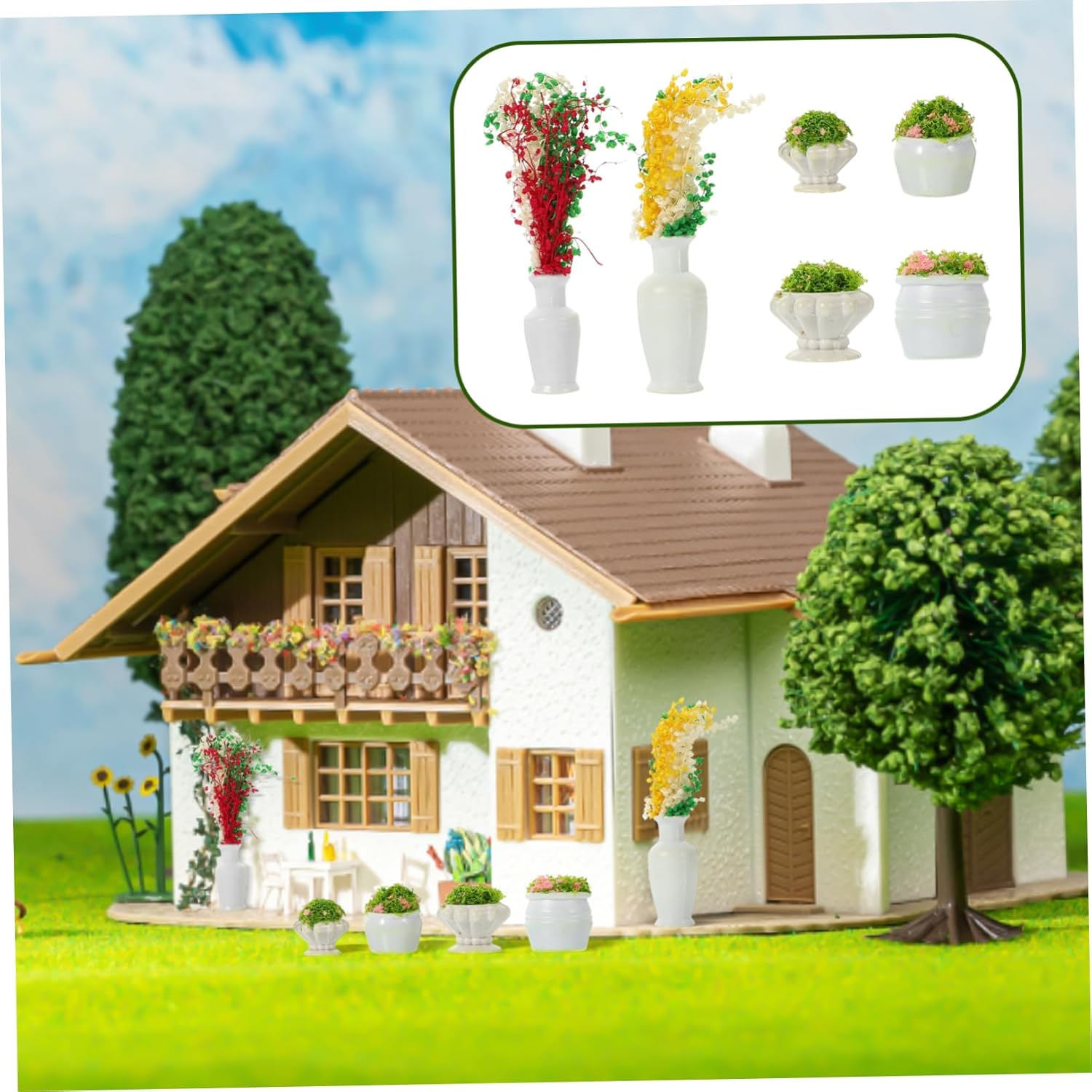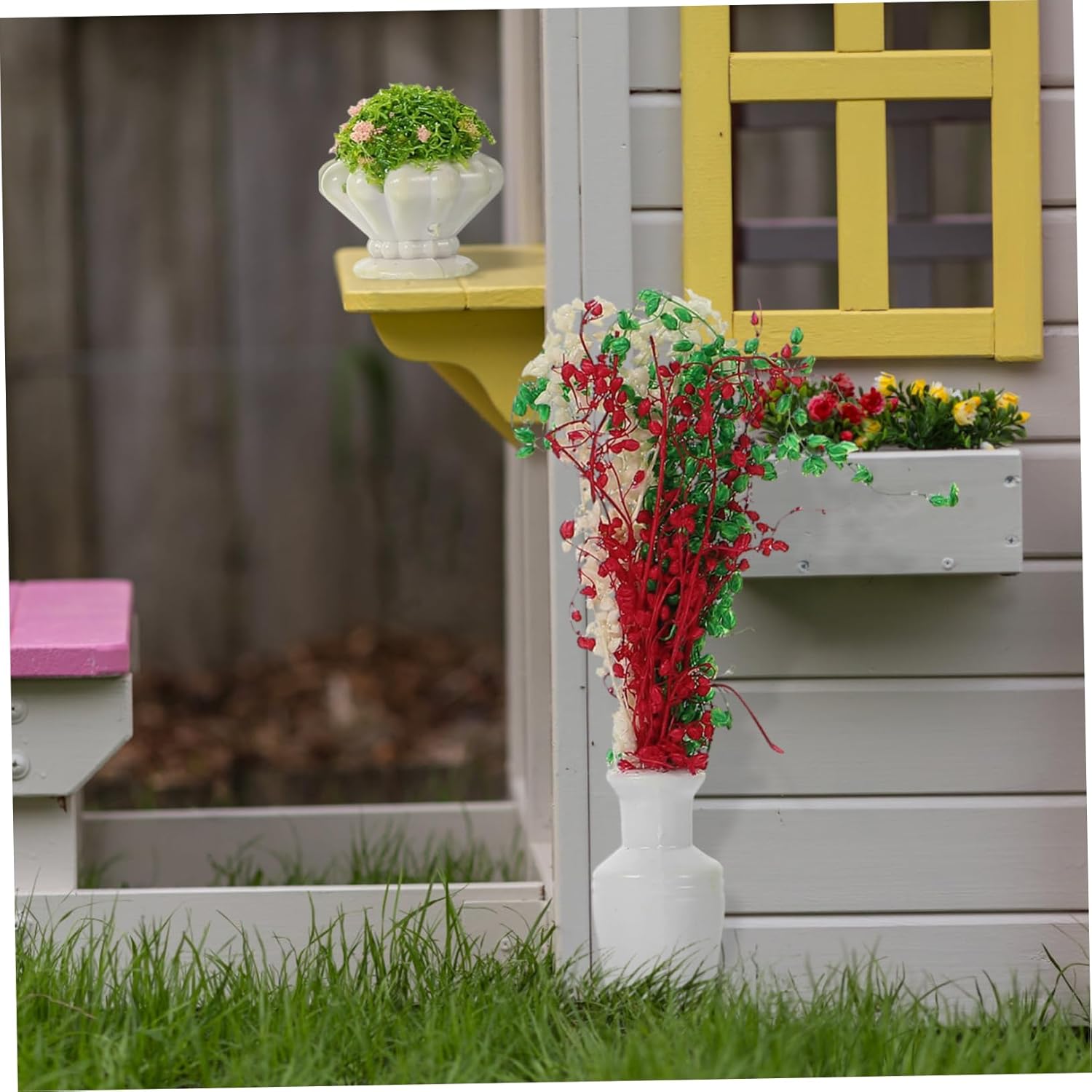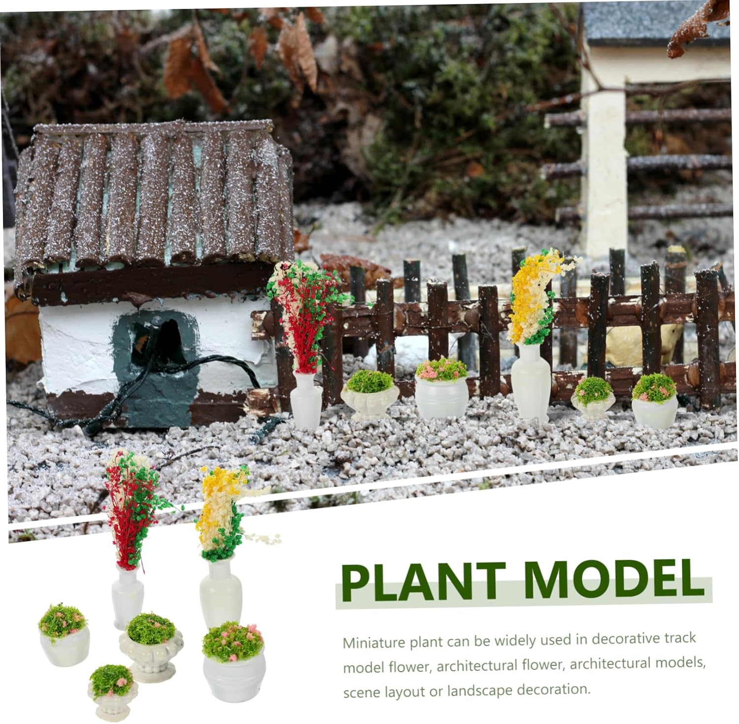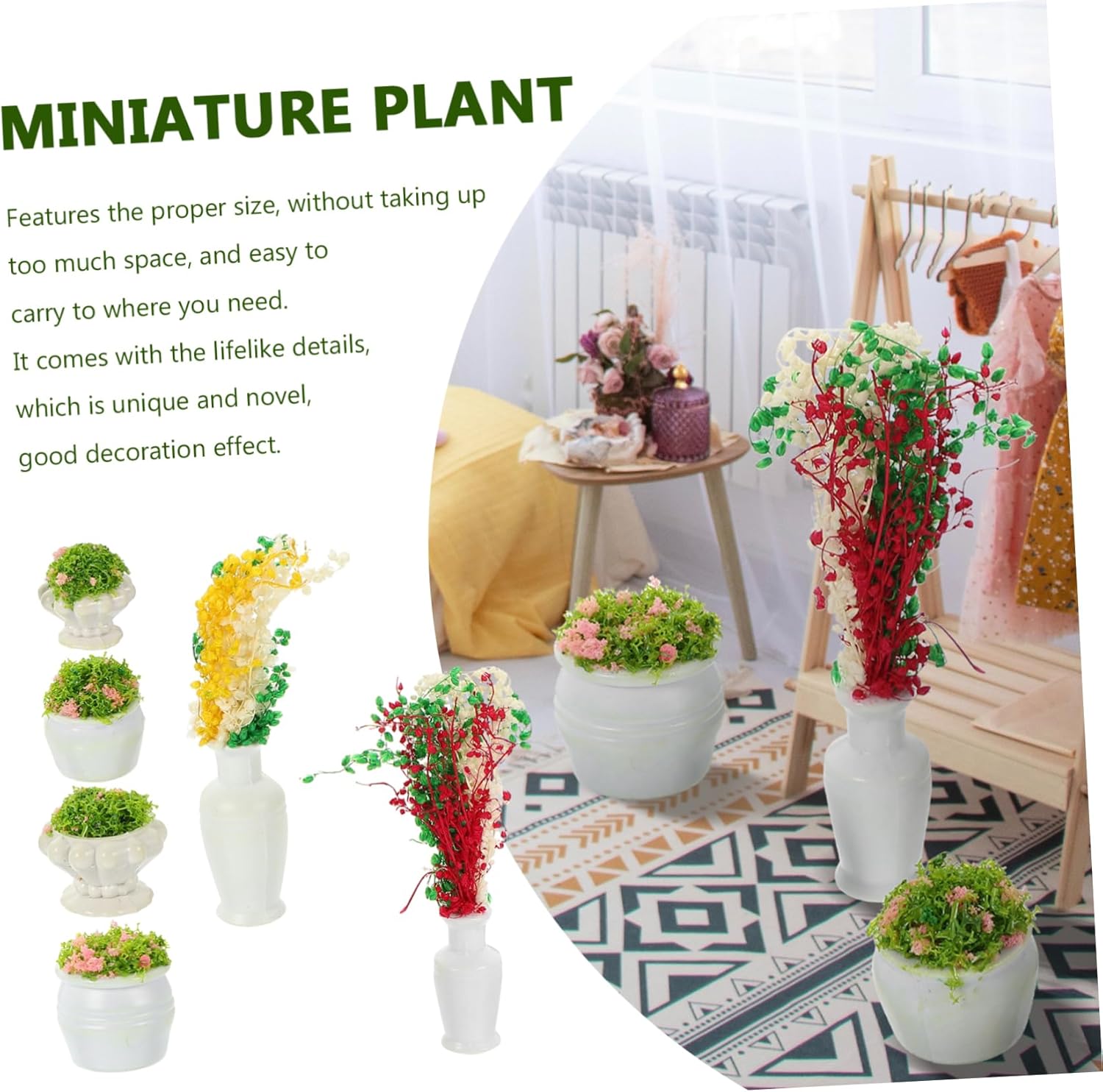 Mini accessori: tutta la pianta artificiale è lavorata con cura, semplice ma delicata, dall'aspetto naturale. Pianta modello: viene fornita con dettagli realistici, che sono unici e nuovi, con un buon effetto decorativo. Accessorio da tavolo giocattolo: mini oggetti di scena creativi da giardinaggio, adatti per decorare tavoli giocattolo, piccoli o micro paesaggi. Decorazioni per mini piante: caratterizzate da un design vivido dall'aspetto vegetale, realistico, lo rendono un eccellente ornamento per scene di vita in miniatura. Impianto di simulazione: perfetto per l'arredamento di mini paesaggi, l'uso della disposizione dei tavoli giocattolo e per rendere vivido il tuo paesaggio.