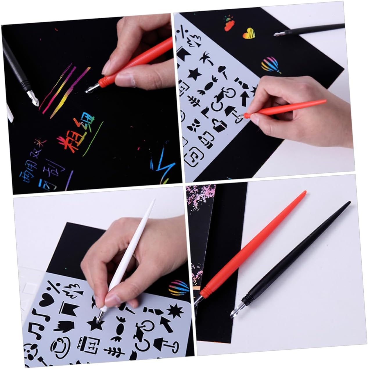 Penne per graffiare: fantastiche penne per graffiare la pittura. sviluppa la tua immaginazione e le tue capacità motorie. Penna per graffiare: quantità sufficiente, così puoi condividere queste penne per graffiare con i tuoi amici e familiari. Accessori fai da te: la sua forma e l'impugnatura morbida, che miglioreranno la tua esperienza con le immagini da grattare. Bastoncino per pittura antigraffio: con quantità sufficienti per gli amici che lo usano contemporaneamente, possono raschiare grandi aree. Penne per gratta e vinci: meravigliosi e sufficienti strumenti per grattare con la carta, ti consentono di creare bellissimi motivi in modo rapido e conveniente.