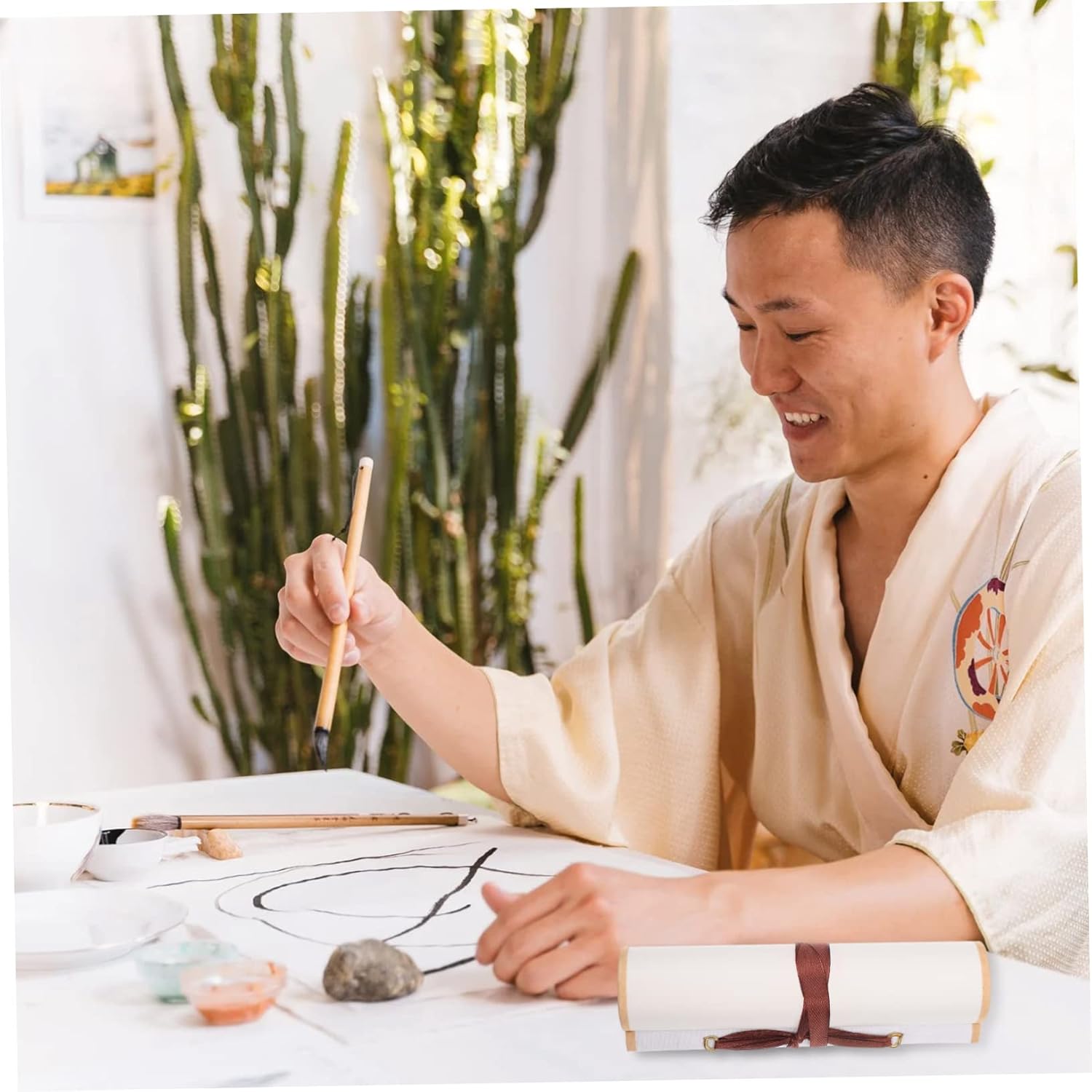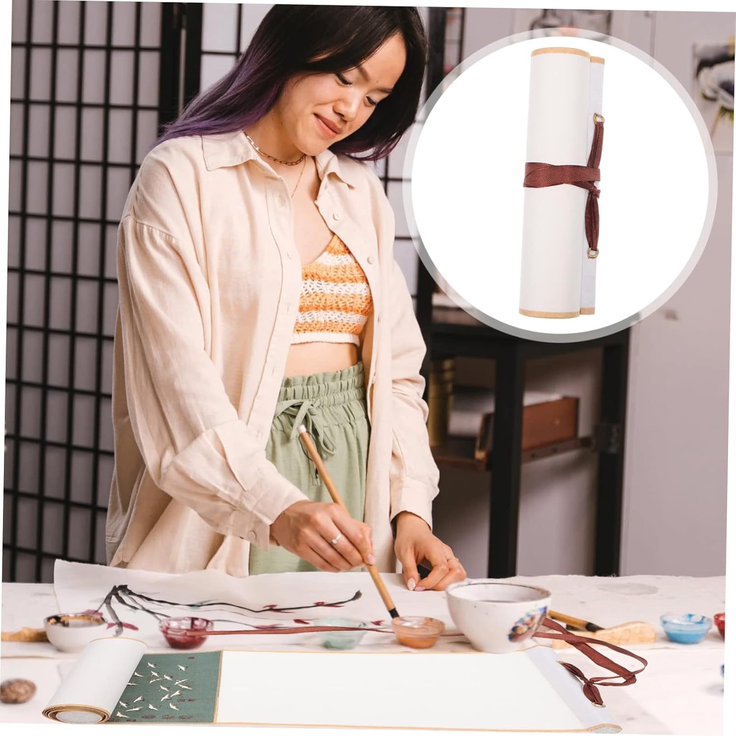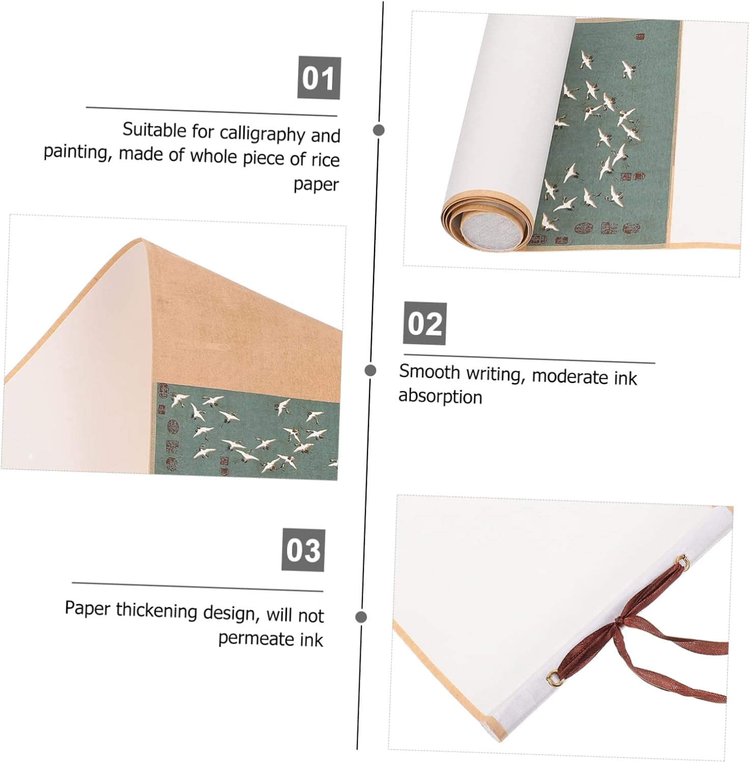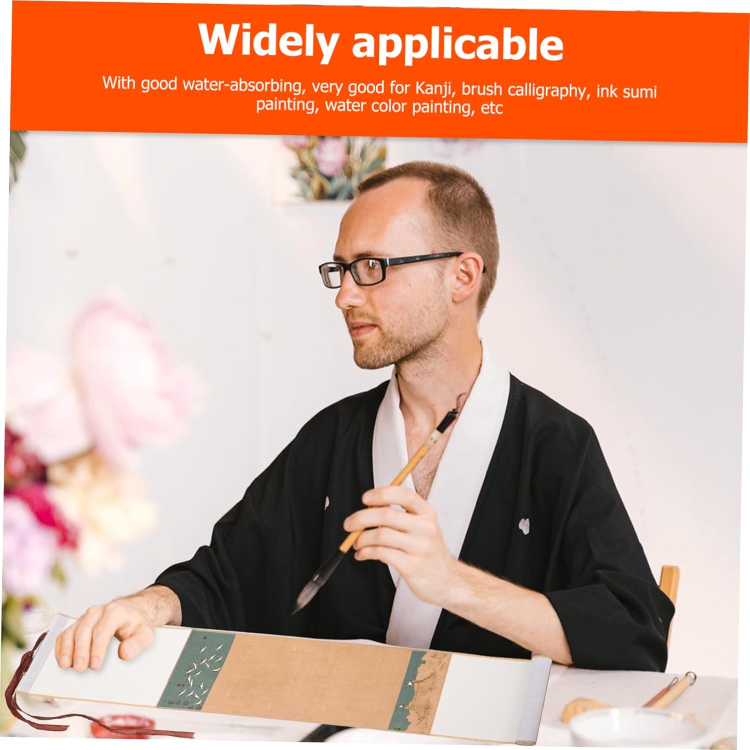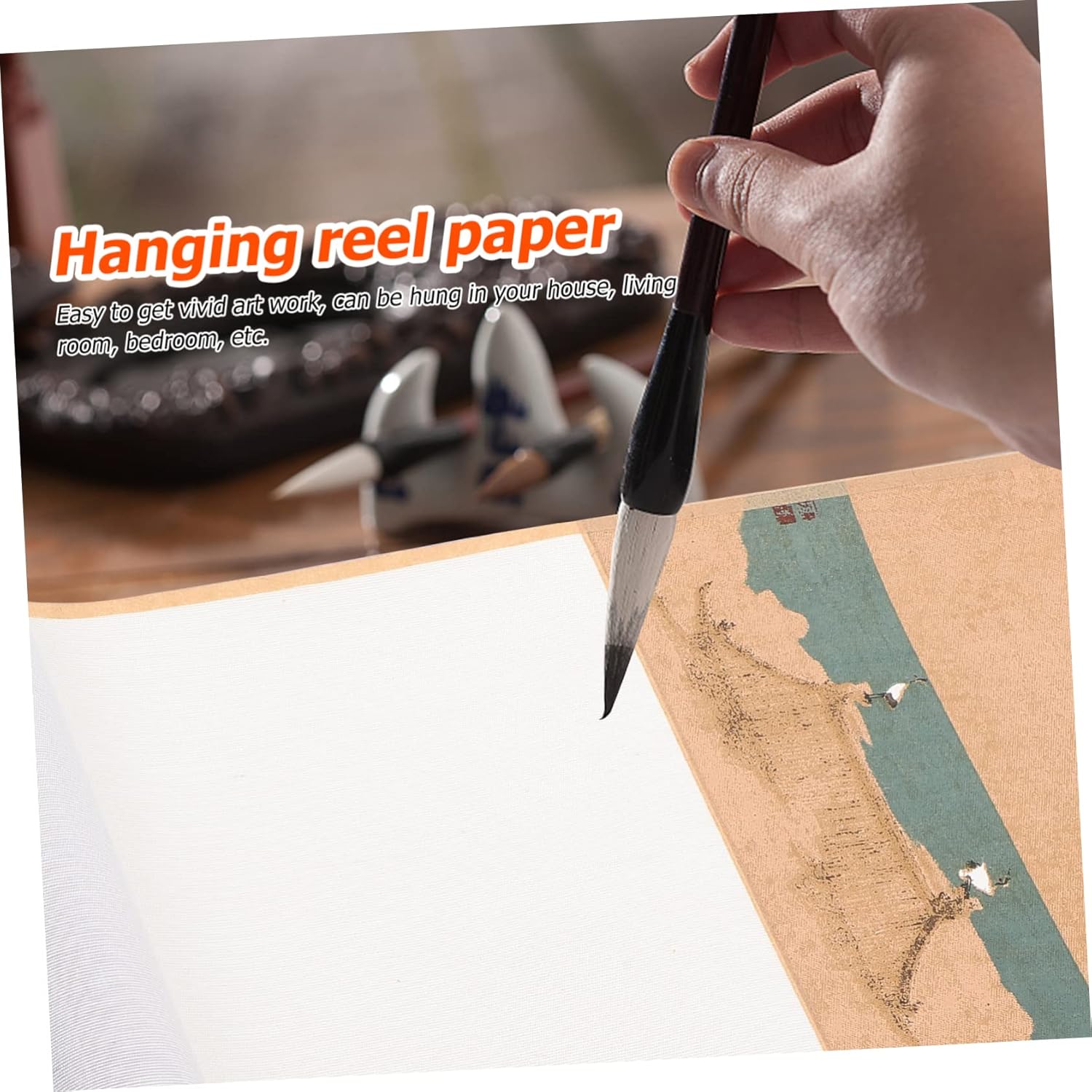 Fornitura di pittura-- con buon assorbimento dell'acqua, ottimo per kanji, calligrafia a pennello, pittura con inchiostro sumi, pittura ad acquerello, ecc. Rotolo da parete artistico: compatto e piccolo, facile da riporre, non occupa spazio. Carta per esercitazioni di calligrafia: perfetta per dipingere e scrivere calligrafia cinese, mostra le tue opere d'arte su di essa. Rotolo sospeso vuoto: realizzato in materiale di carta di riso, che è durevole da usare. Carta per per calligrafia: adatta per la creazione di calligrafia come il pennello per scrivere in stampatello minuscolo e la calligrafia corrente.